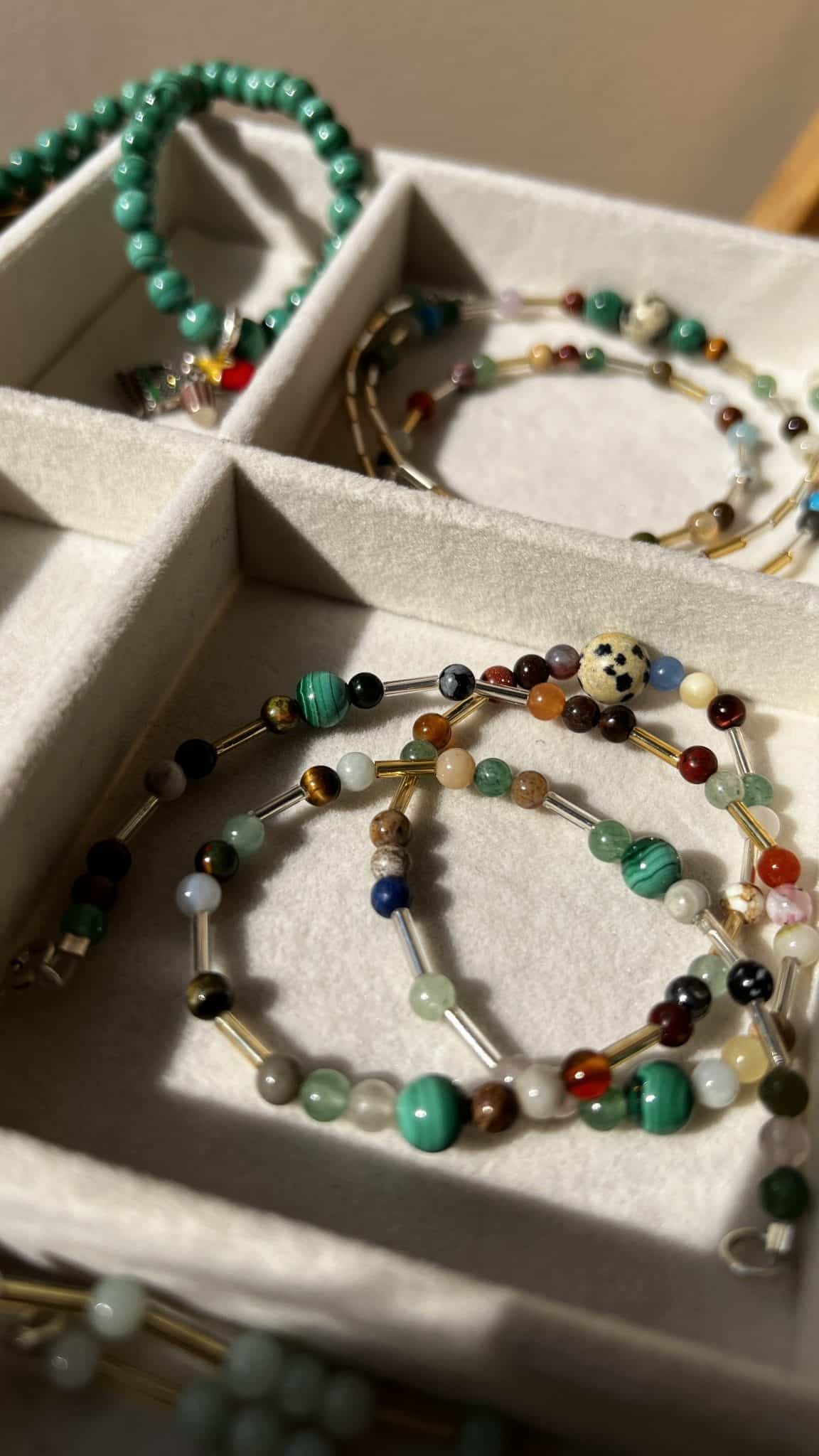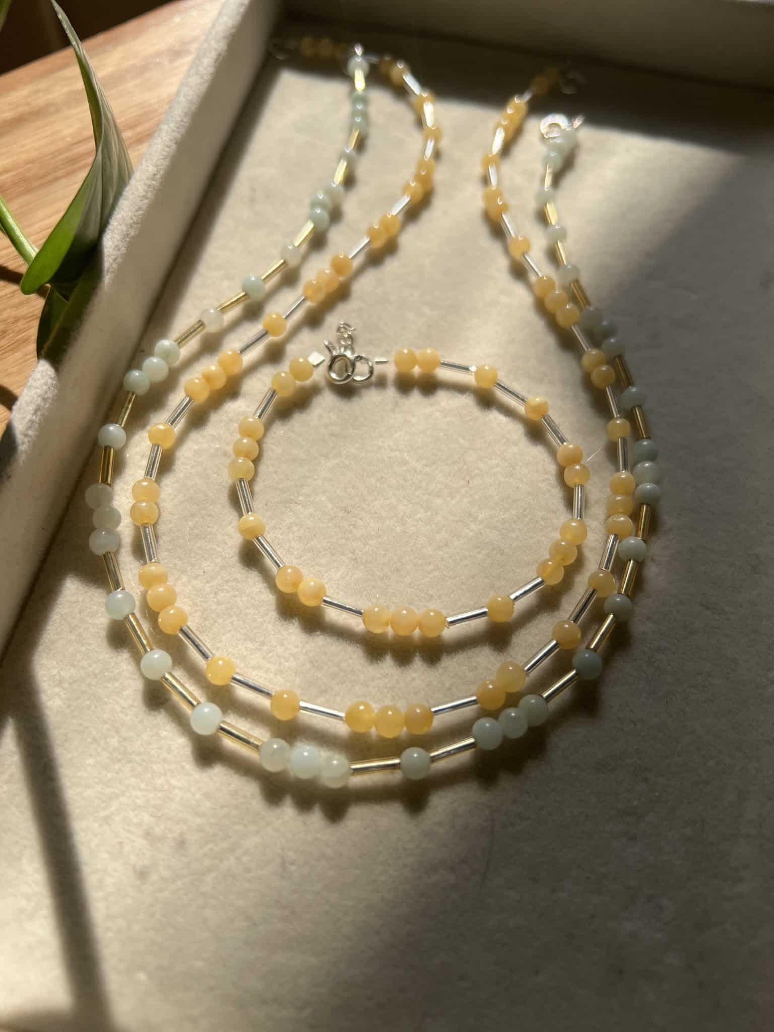 Dainty simple beaded set of necklace and bracelet to add a pop of color for everyday wear