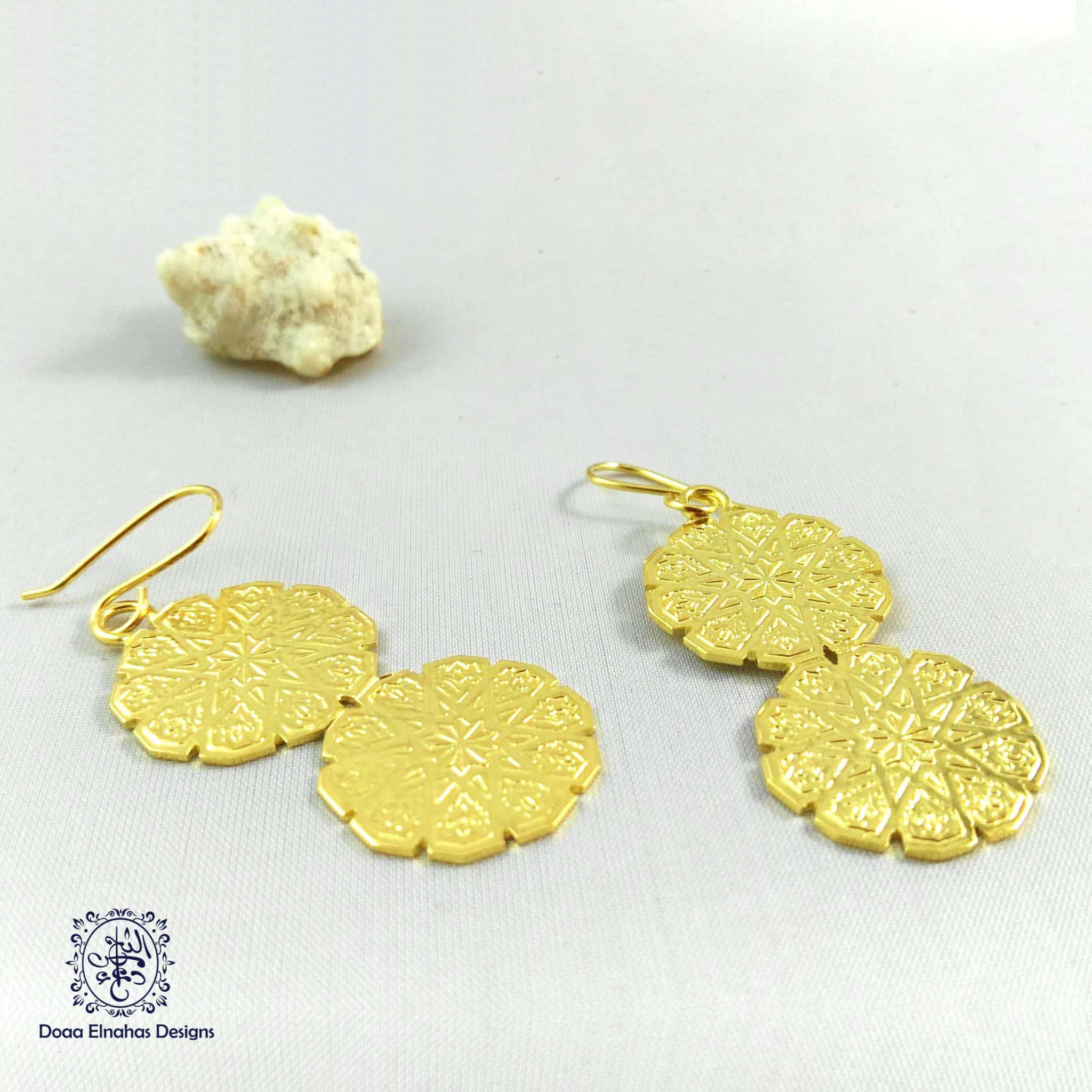 Gold-plated brass earrings with Islamic ornaments