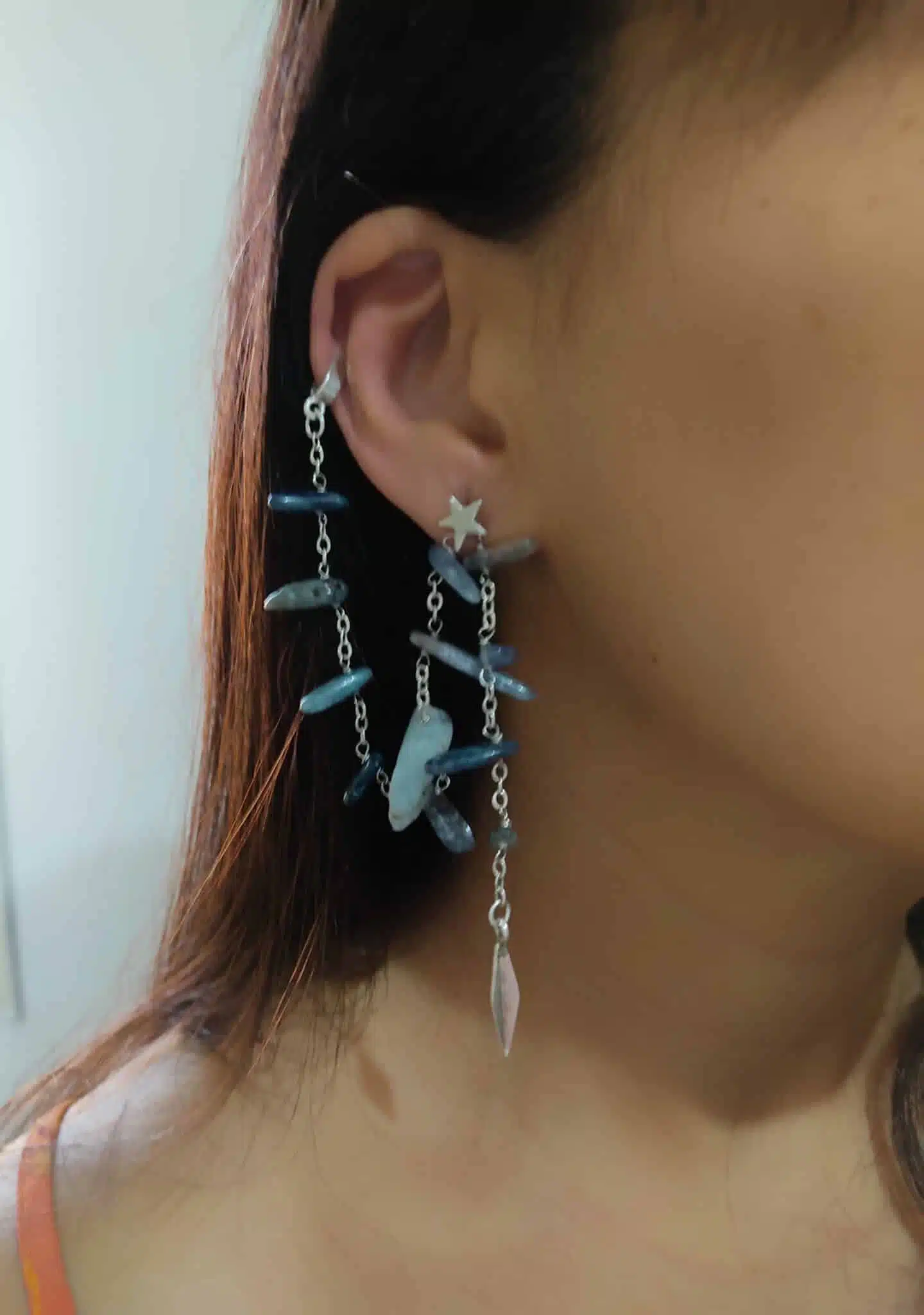 A one of A kind bajorns earrings with a Kynaite gesmtone