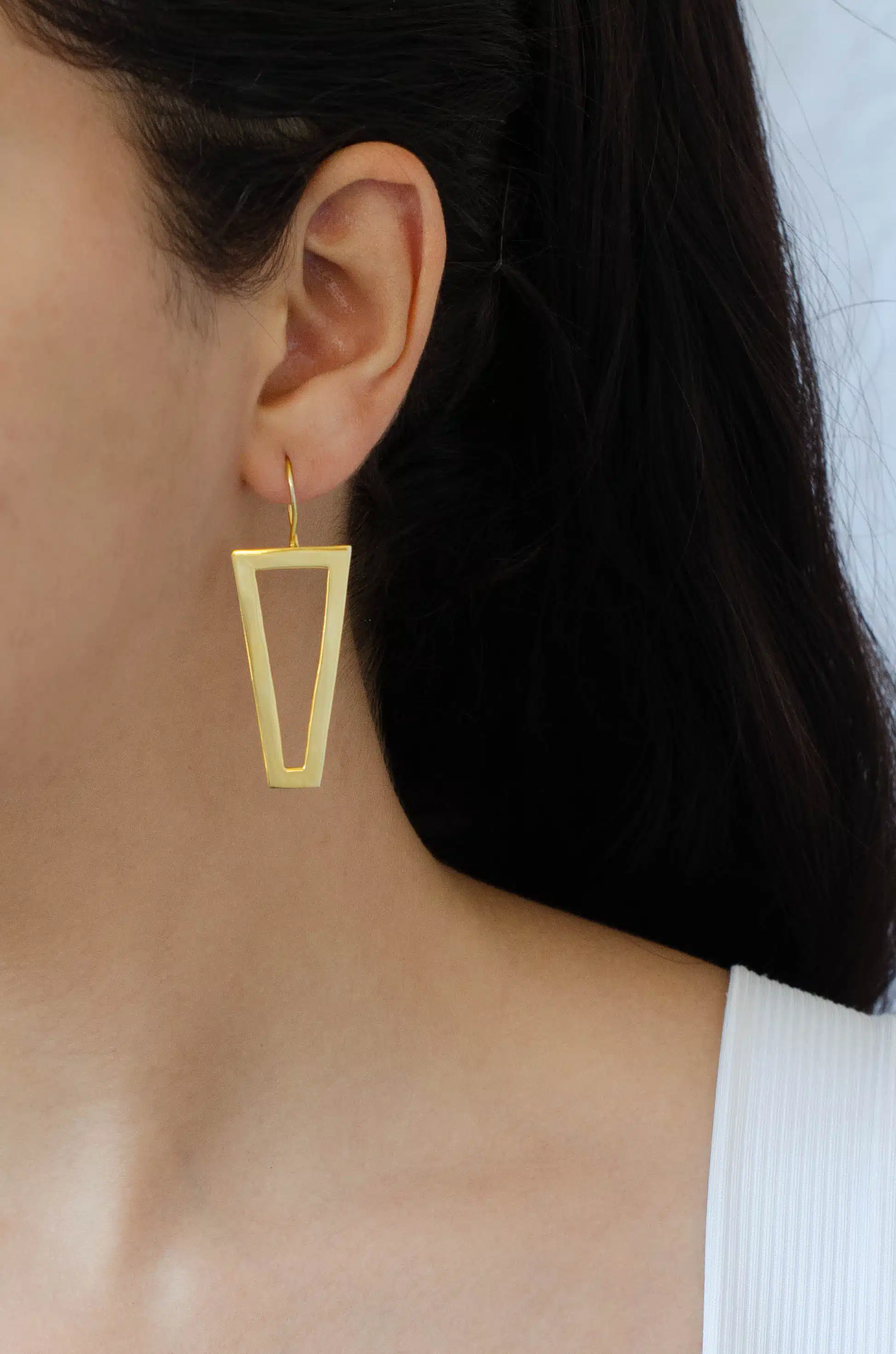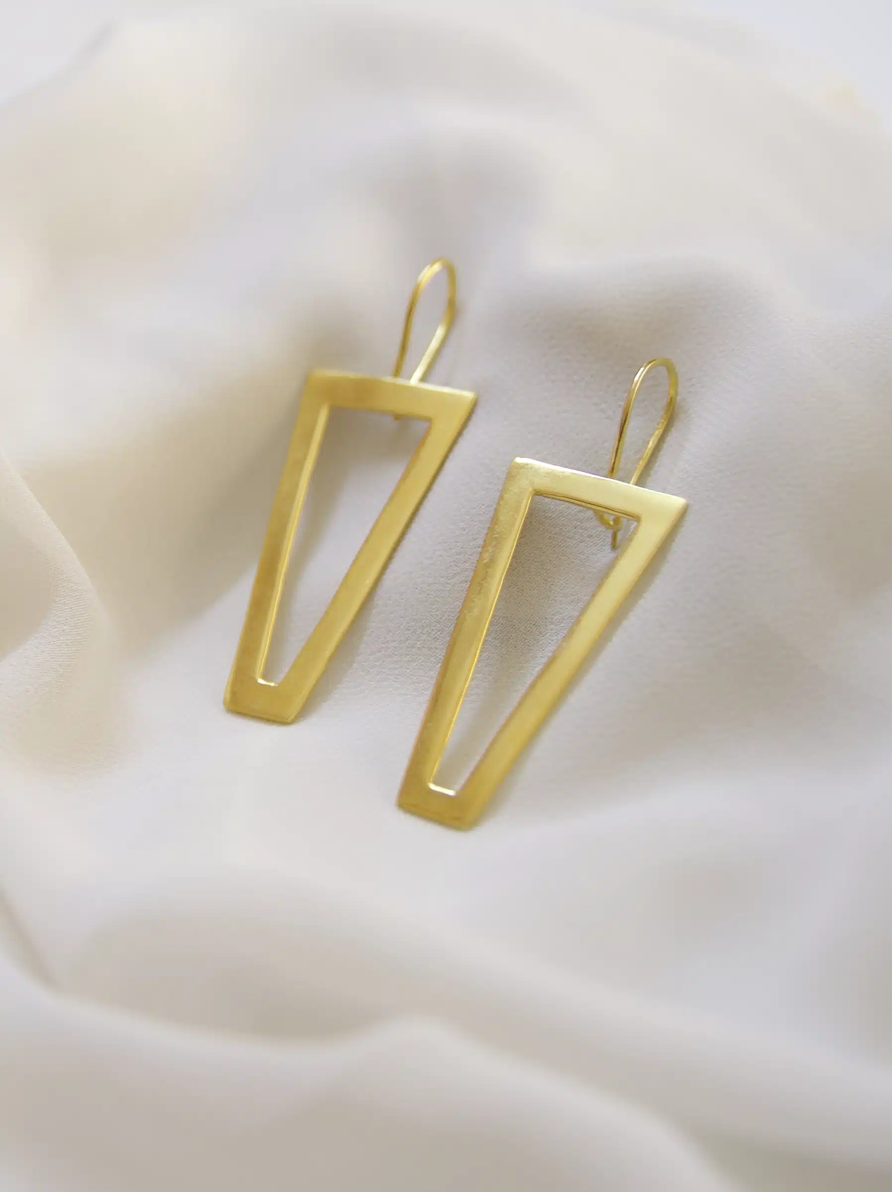 The Dune Earrings , Inspired by The Great Egyptian Pyramids Shape by the designer “Toka Nabil”. Material: Brass 21K Gold plated with a very high quality, hand made. Pre order will Take from 3-8 Days. No REFUND or EXCHANGE.
