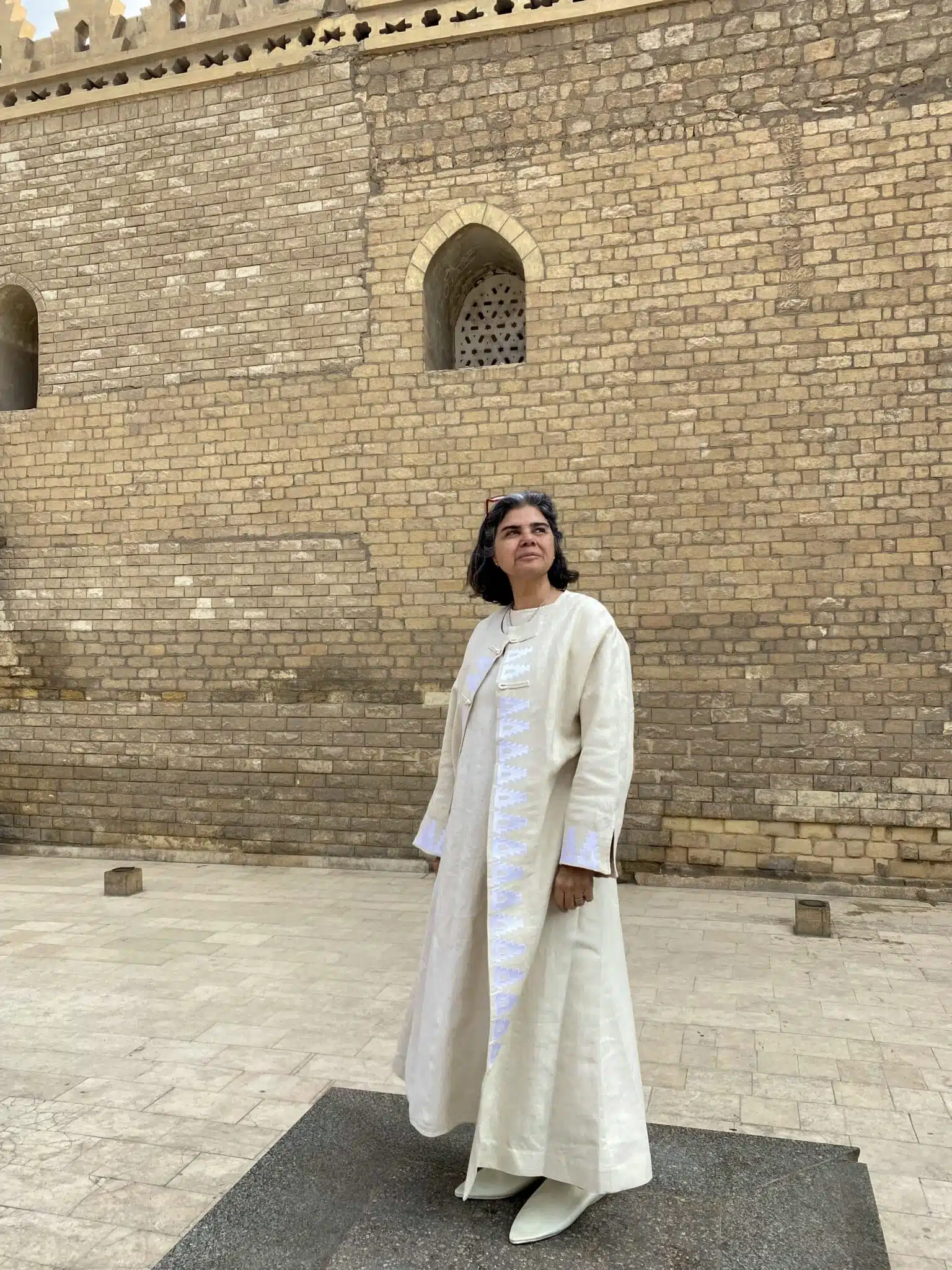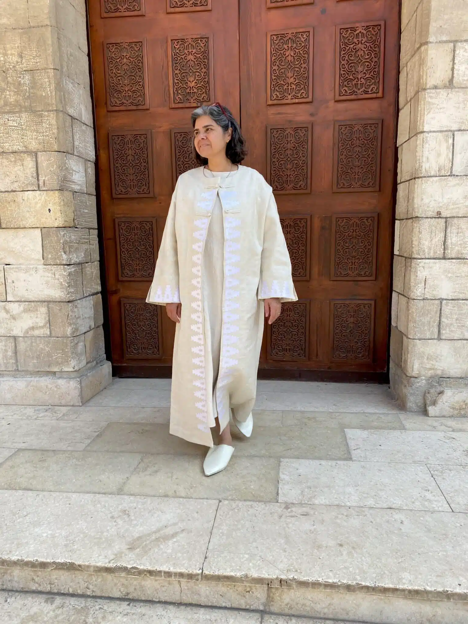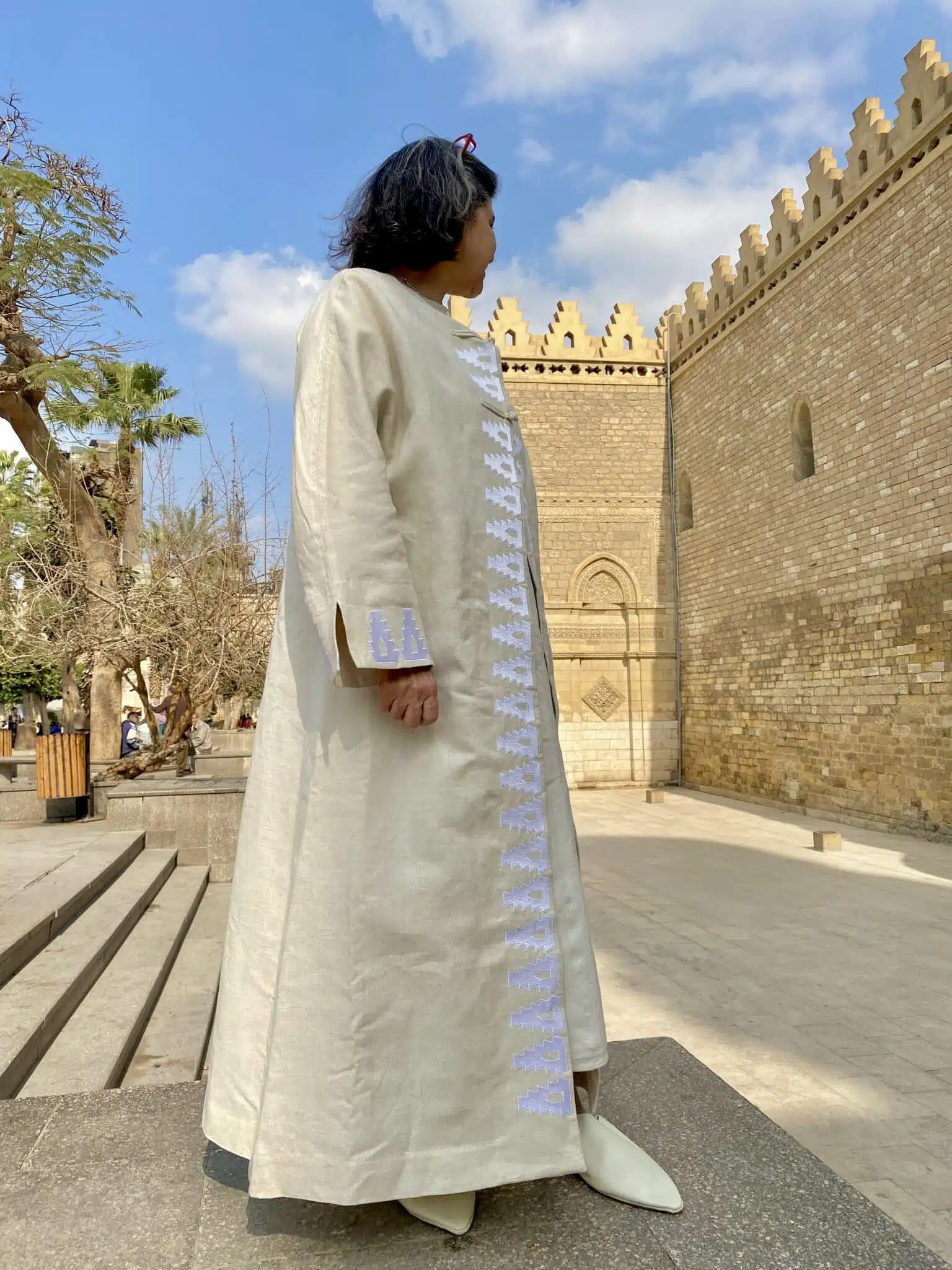 El Hakim Kaftan is made of pure linen with Maschine embroidery inspired by the architect details of EL HAKIM Mosque