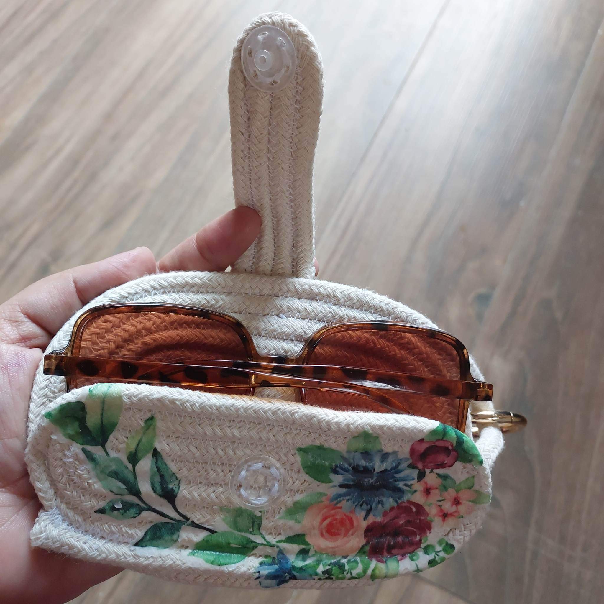 جراب نضارة مع حلقة معدنية تسمح بالتعليق في الشنطة