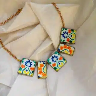 كوليه عصري من خامة الصلصال الحراري خفيف الوزن ولا يتغير لونه مصنوع يدويا بموتيفات خاصه يمكن ارتداءه في الصباح والسهرات