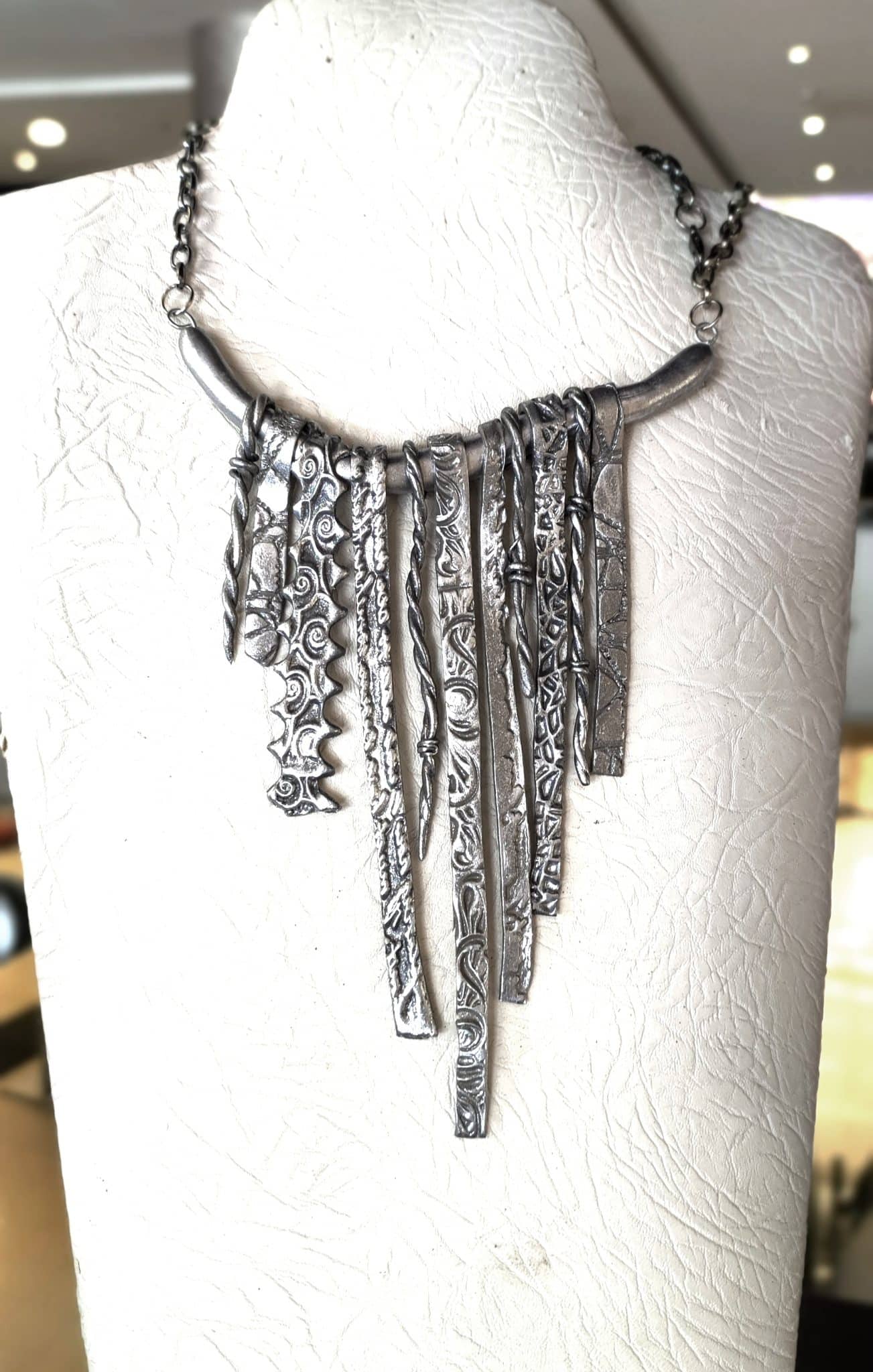 كوليه عصري من خامة الصلصال الحراري خفيف الوزن ولا يتغير لونه مصنوع يدويا بموتيفات خاصه يمكن ارتداءه في الصباح والسهرات