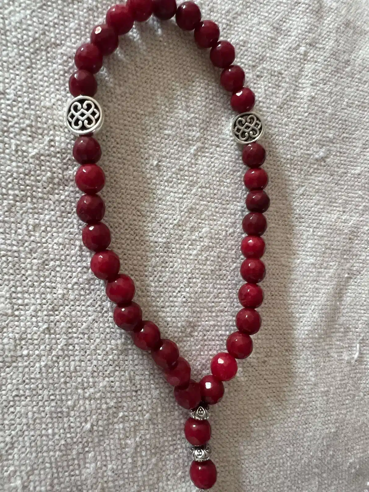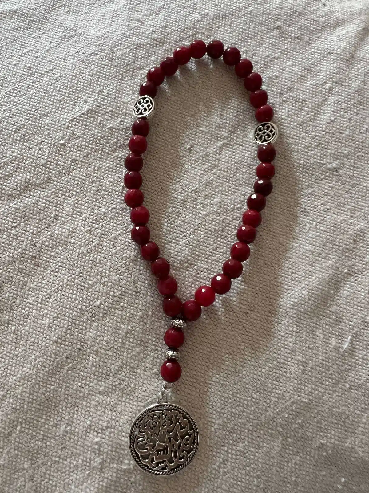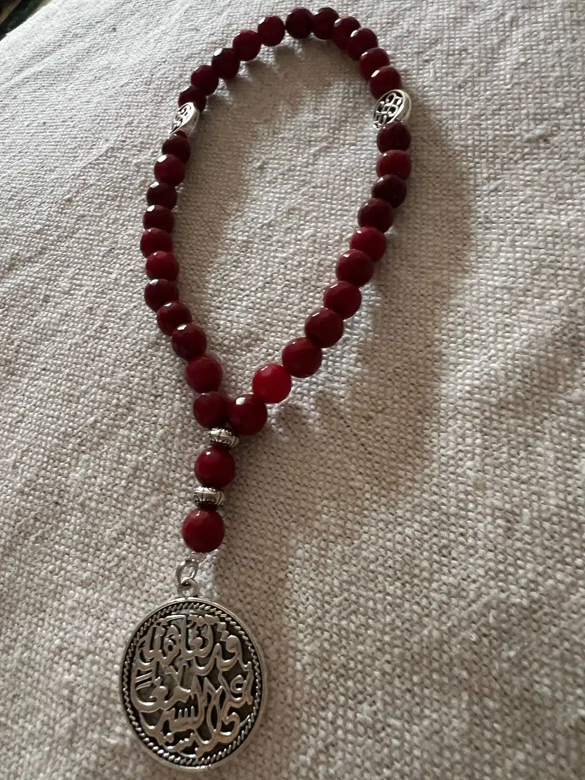 Sebha 33 red stones with silver charm