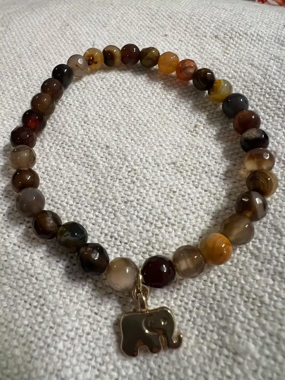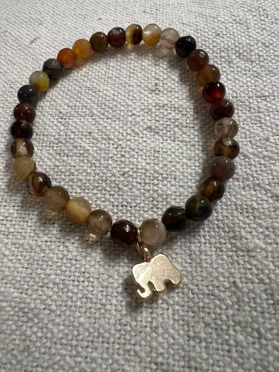 Elephant Grace Bracelet in brown shades stones and dangling golden elephant
