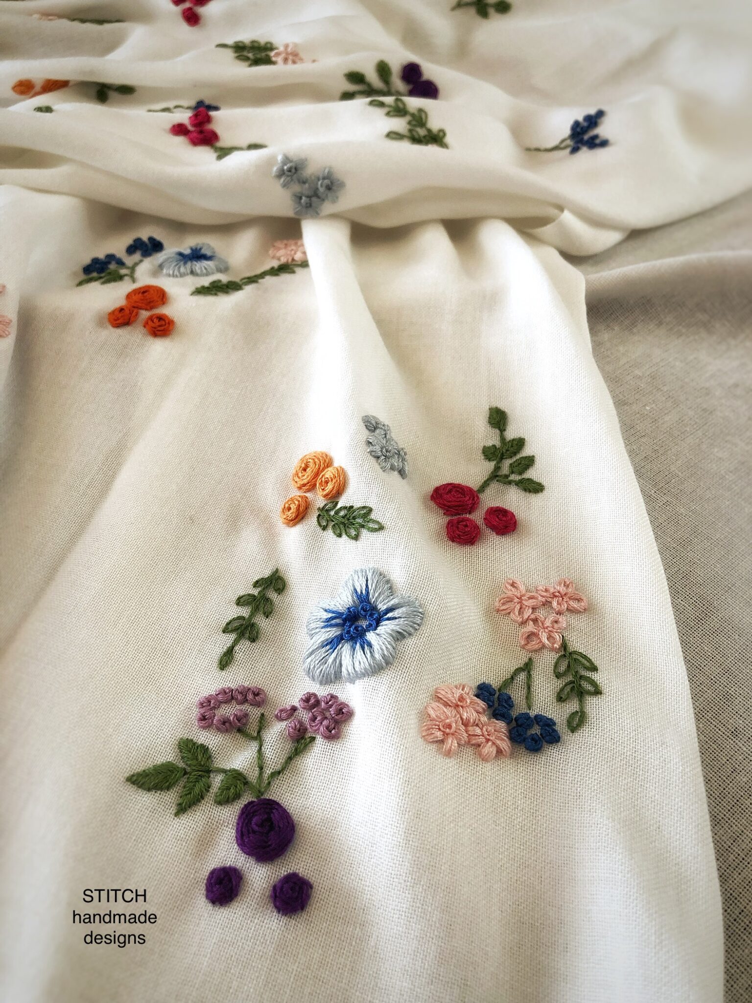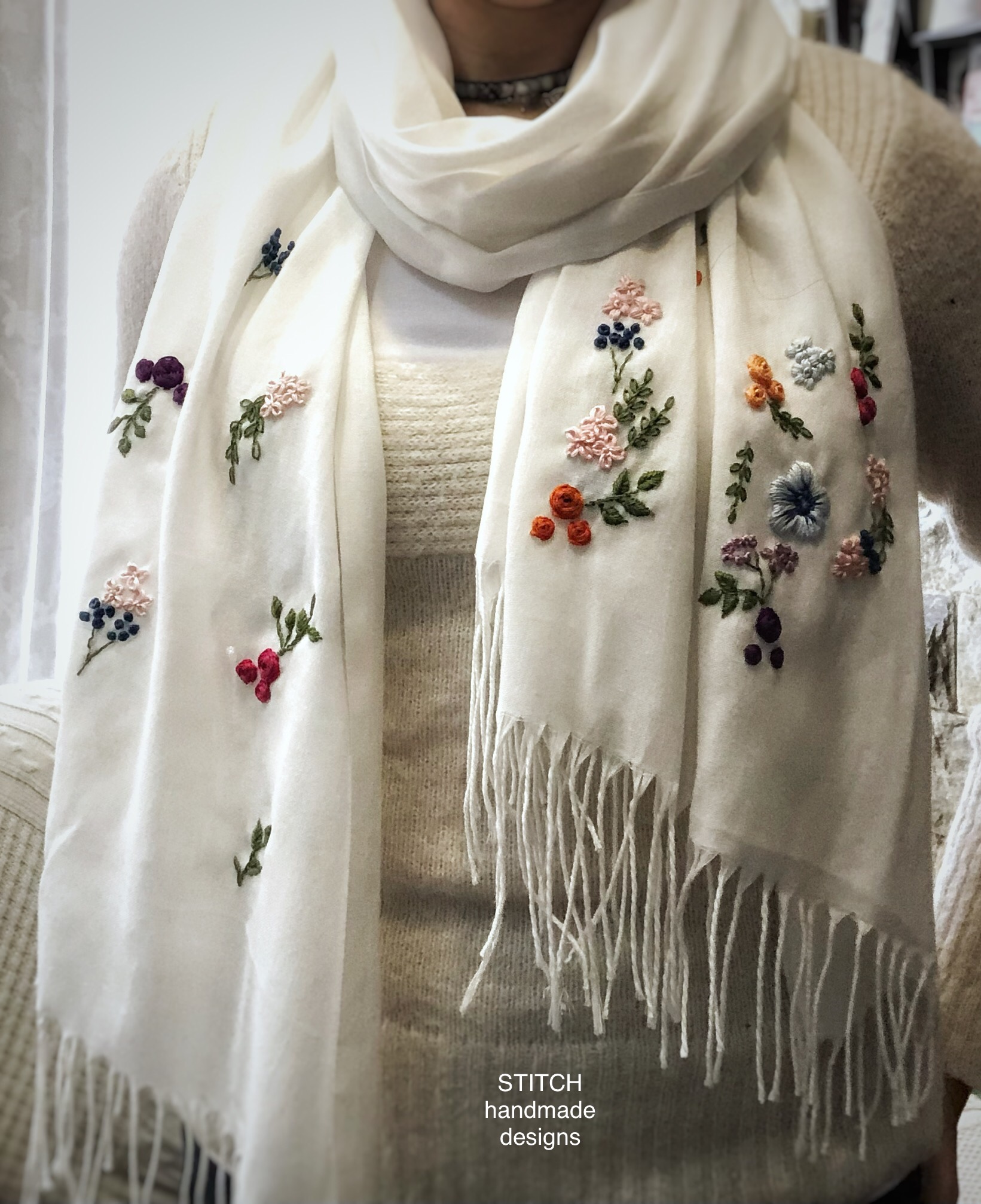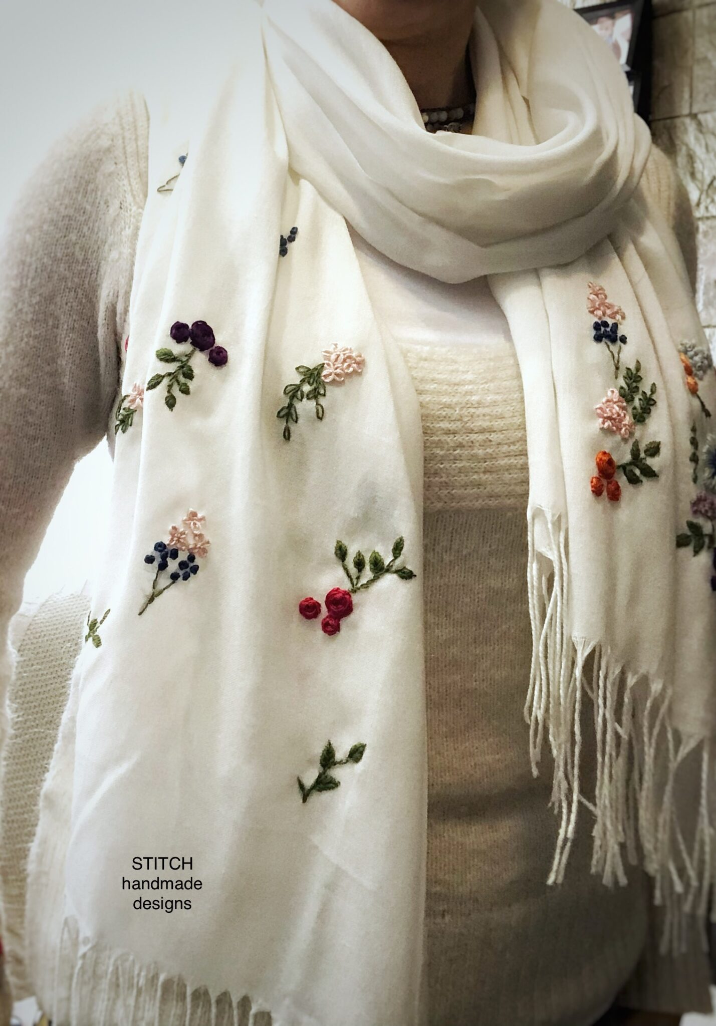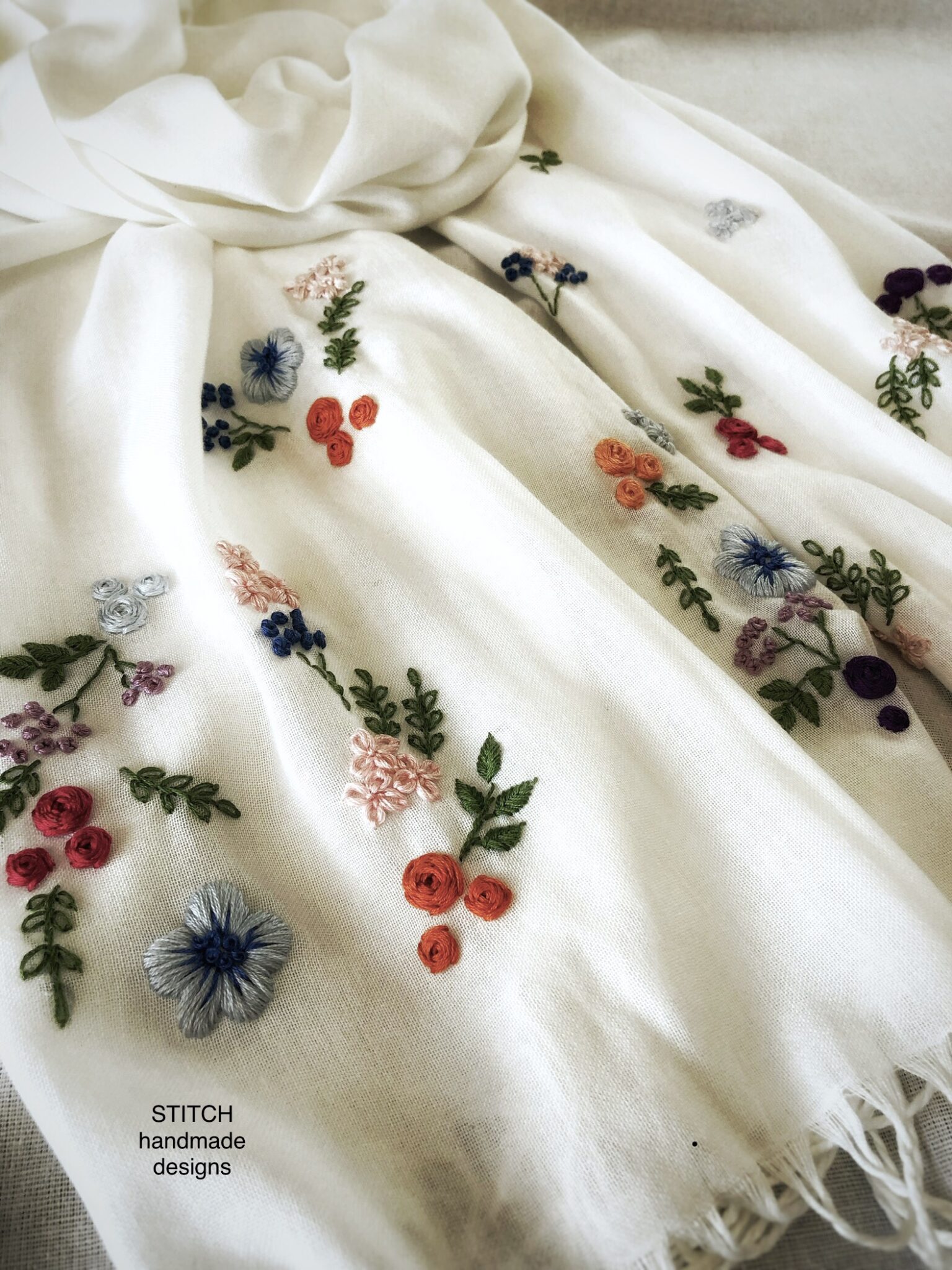 This exquisite white scarf is adorned with delicate hand-embroidered flowers, making it the perfect accessory for any occasion.The Blossom Pashmina Shawl combines elegance and craftsmanship, adding a touch of sophistication to your ensemble.
