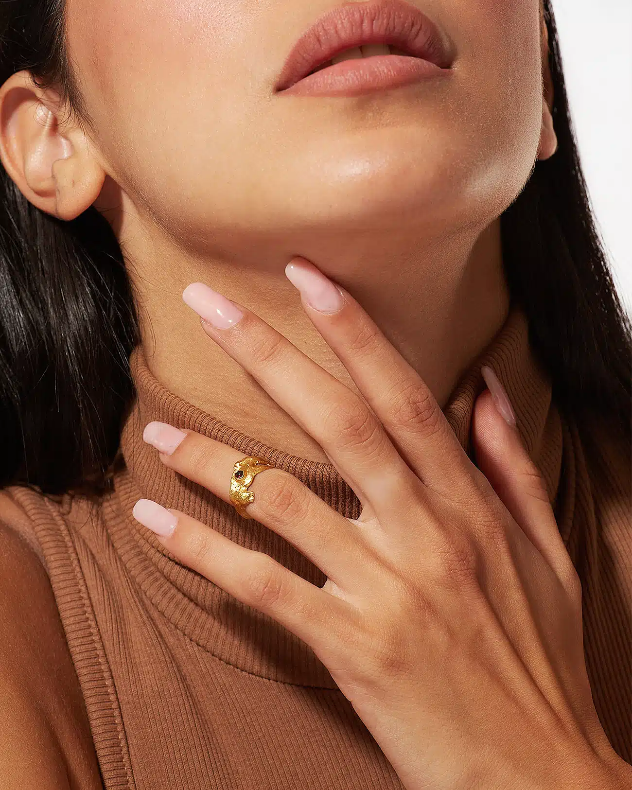 Essential Collection , Organic Knuckle Ring with Garnet Stone