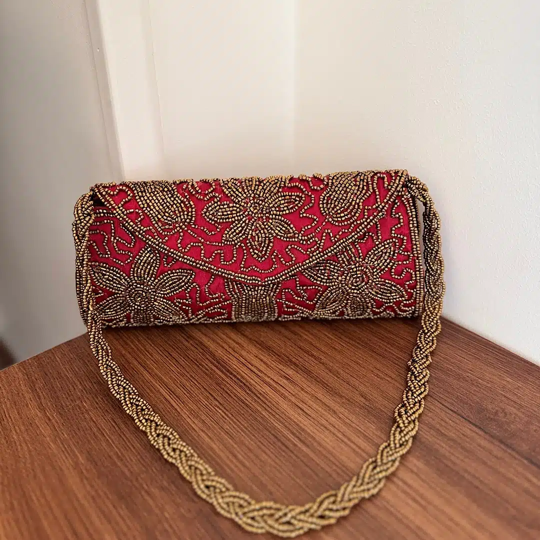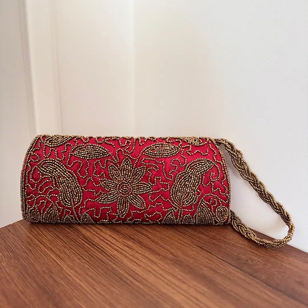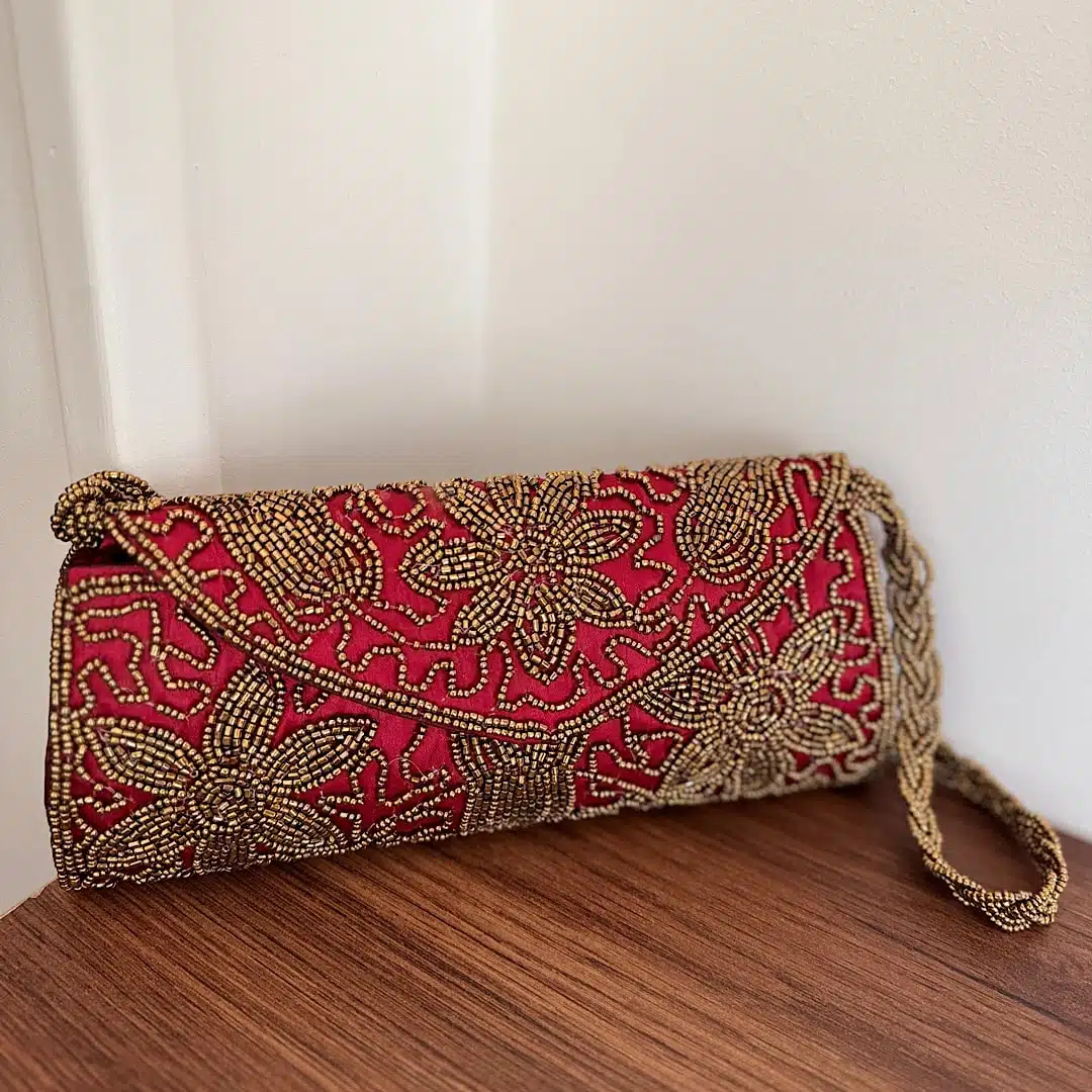Red beaded clutch