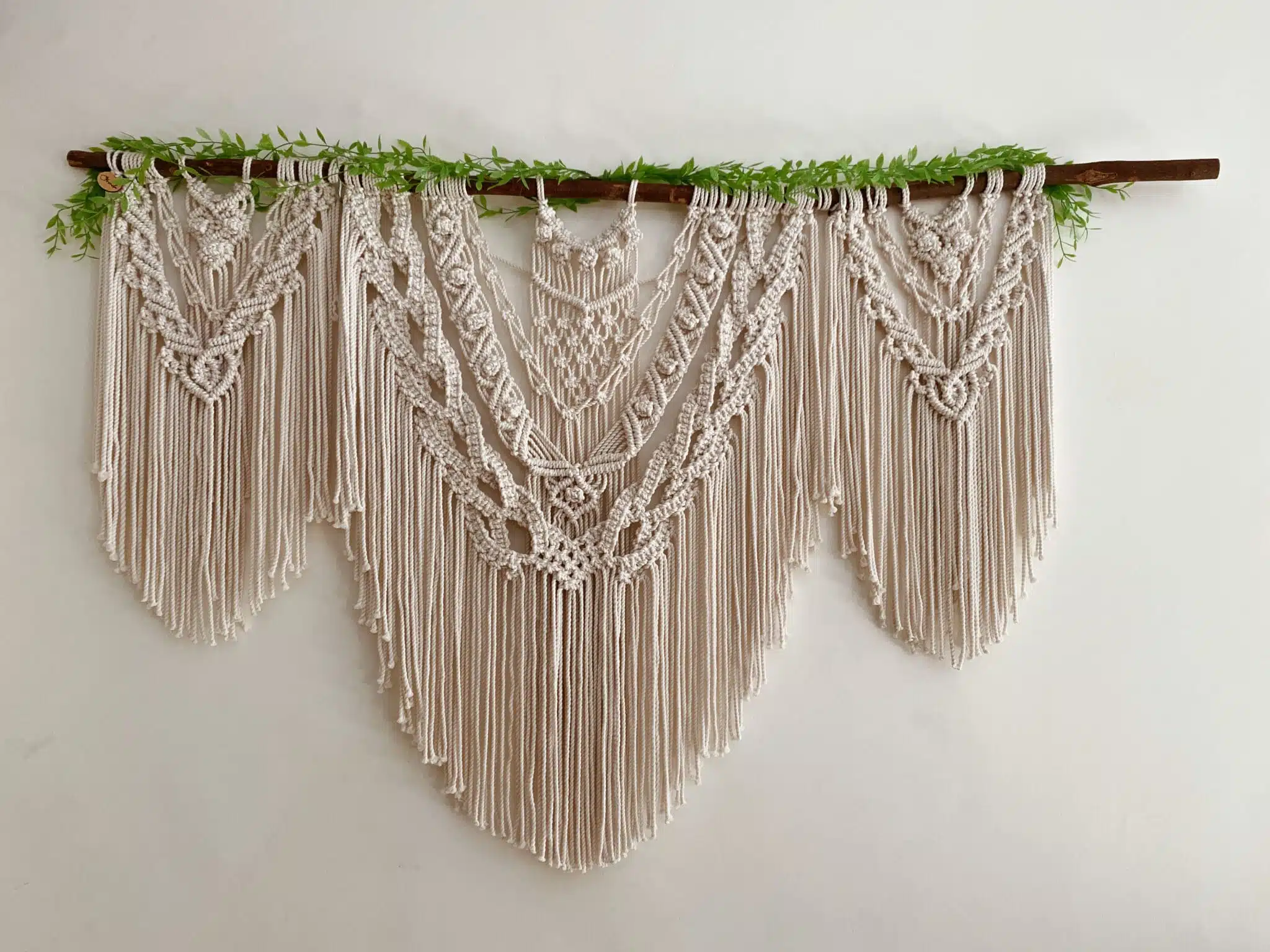 Large handmade macrame which is three in one! Made with careful attention to detail that will look good decorating any home. This large design features a big macrame in the middle and two smaller ones on the outside, forming one giant macrame