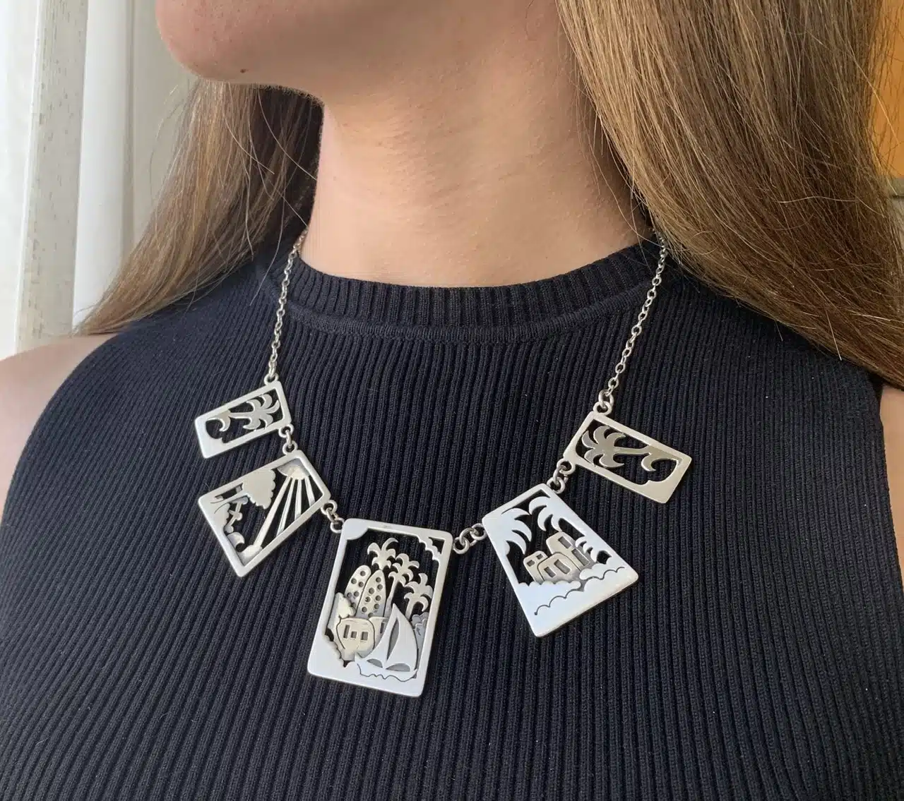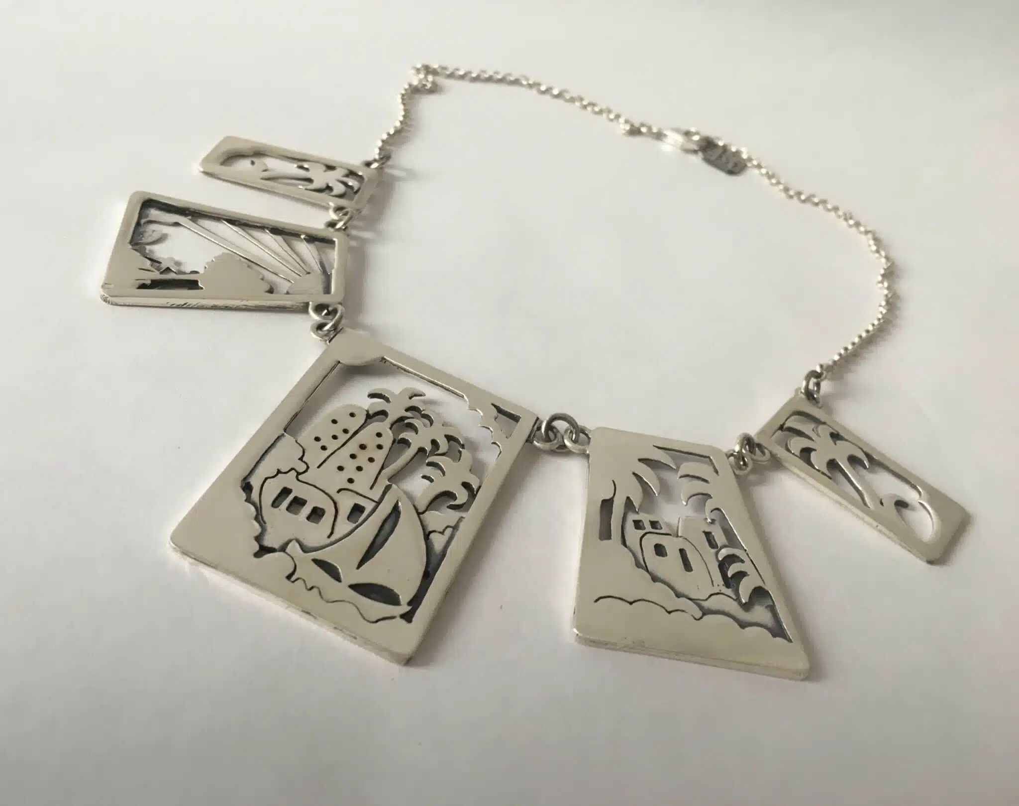 Exclusively designed hand made sterling silver necklace 925 featuring the Falahy village life in Egypt