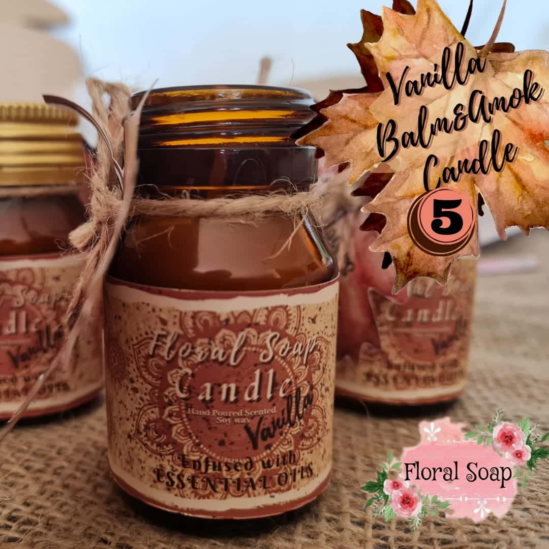 This candle crafted to gives you the fall vibes, scented with Vanilla Essential Oil and is a blend of Balm and Amok Wax.