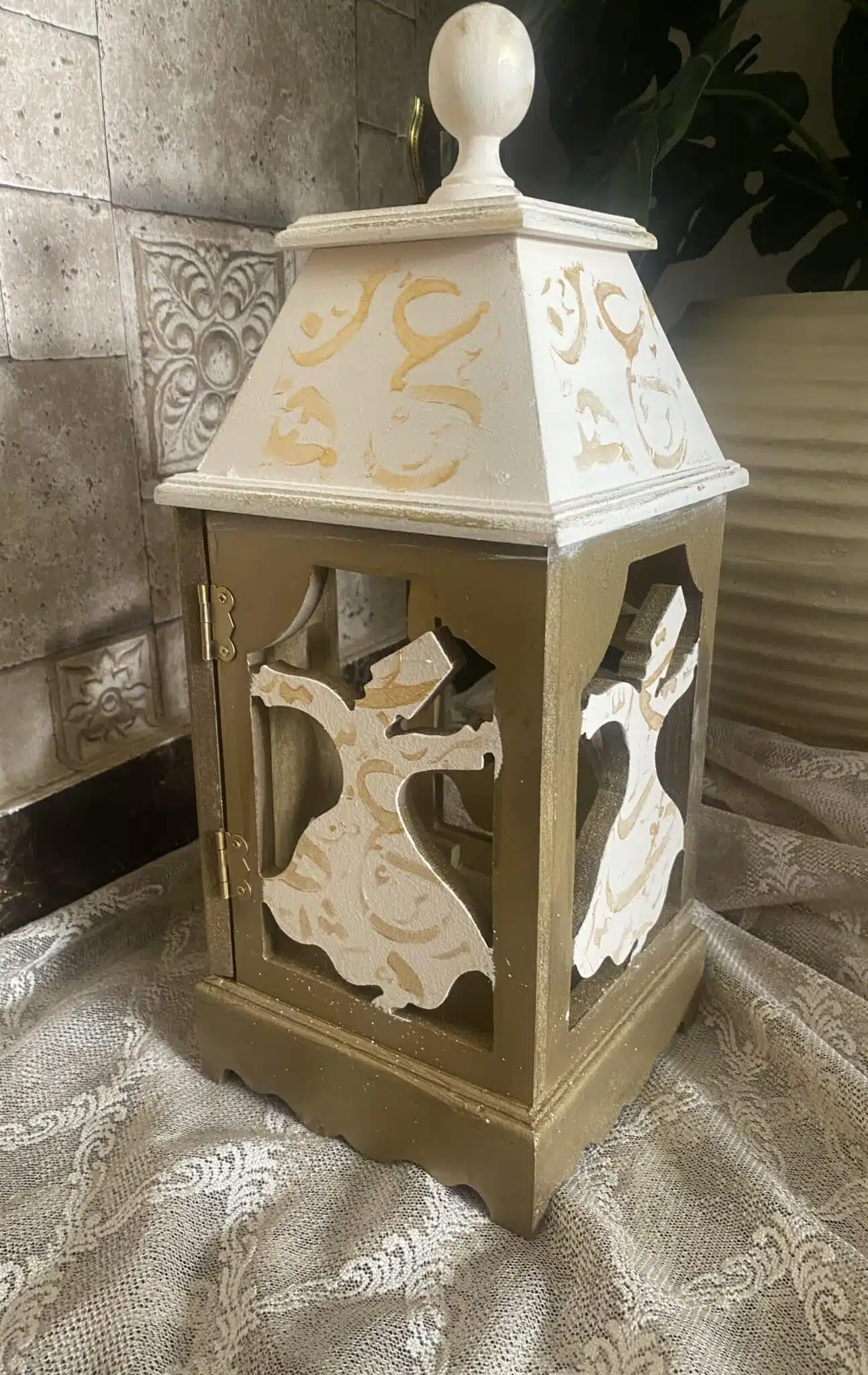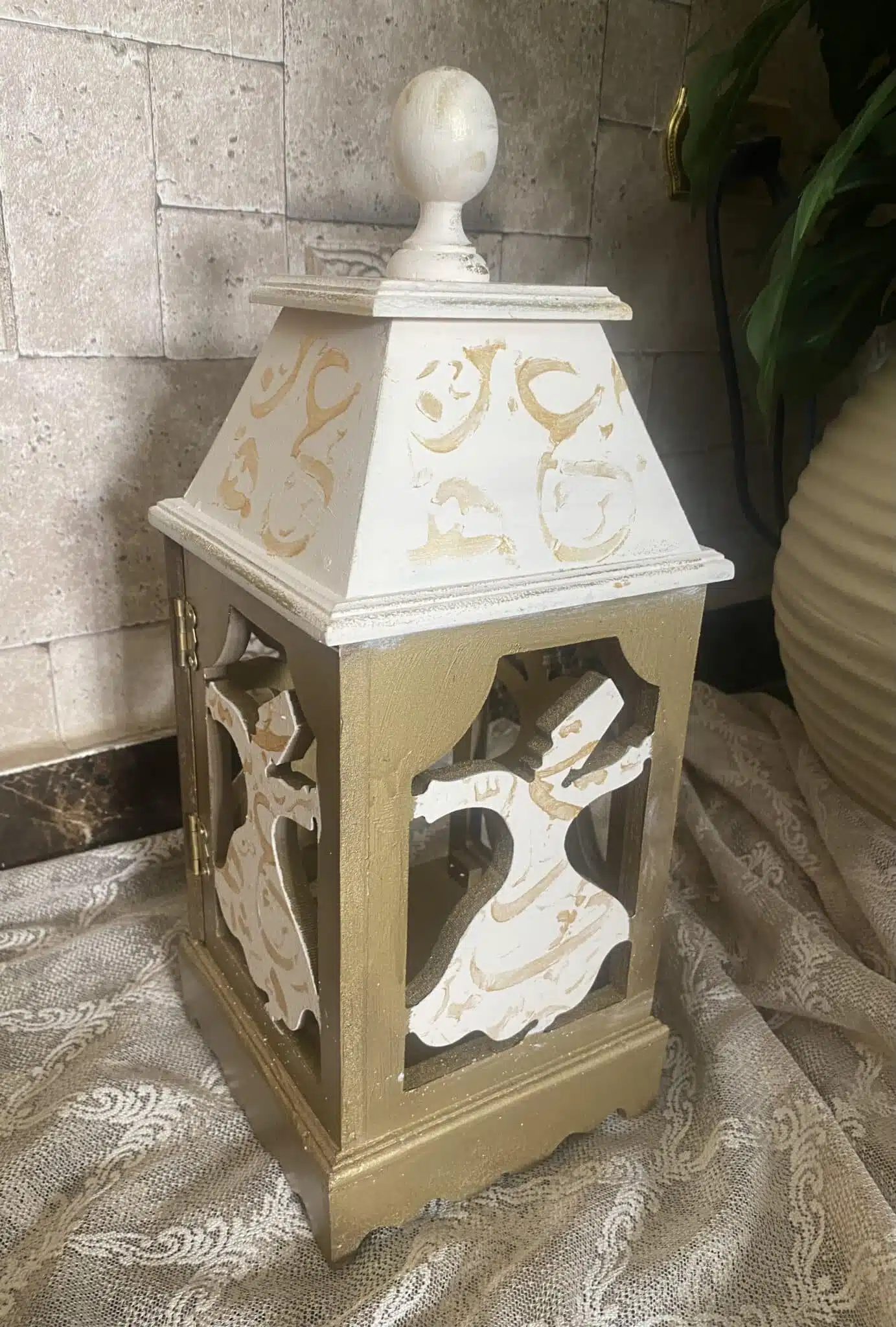 Wooden Fanous (lantern) dervish Design beige x gold