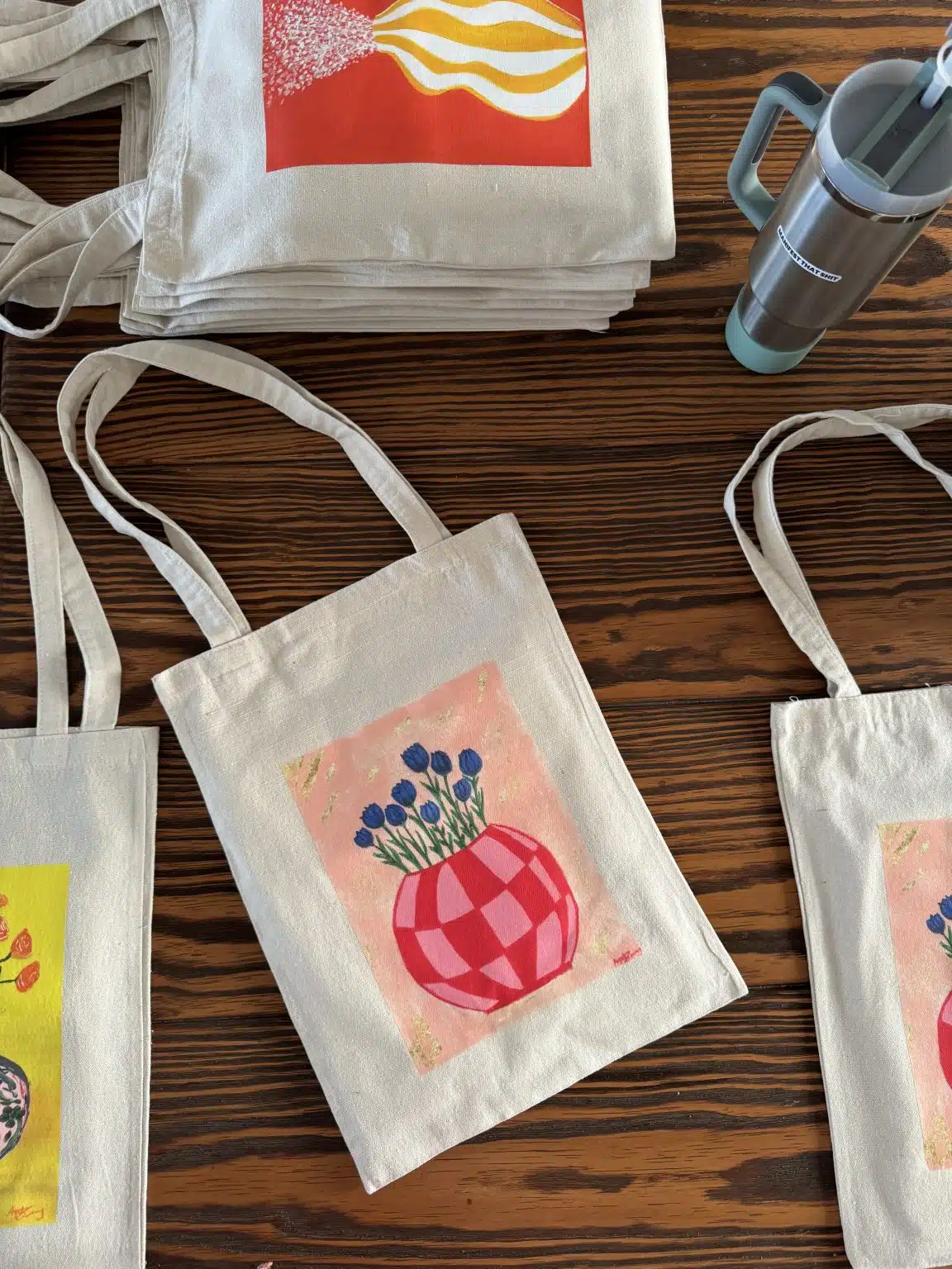 Original artwork print on beige canvas tote bag