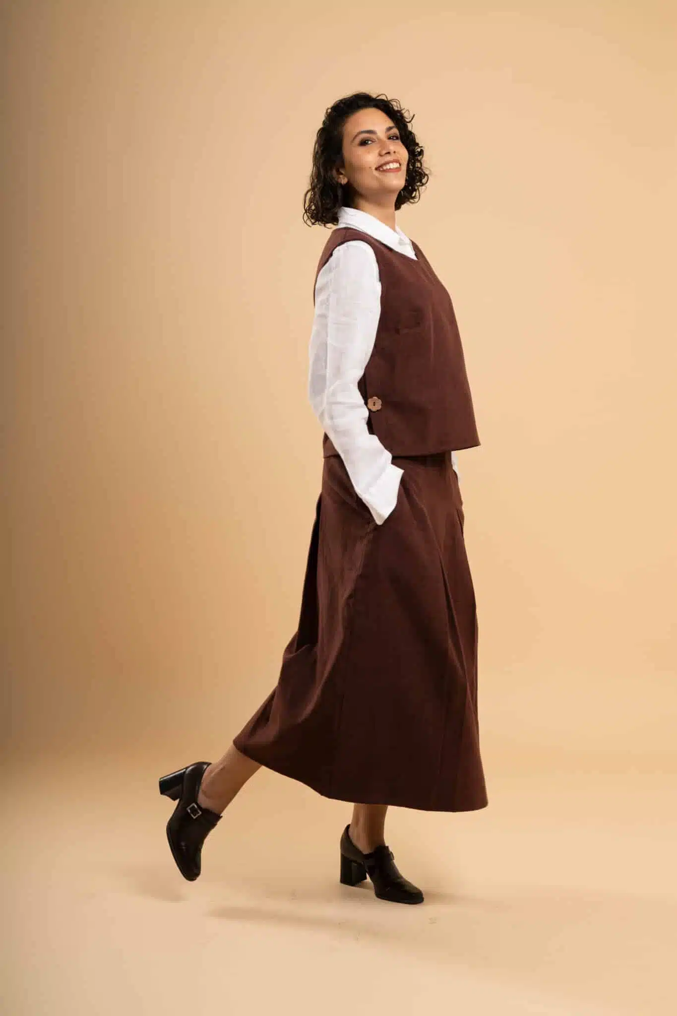 The Fleurette Brown Set seamlessly transitions from office elegance to refined casual wear- simply adjust your accessories to match the occasion. Embrace a distinctive style.