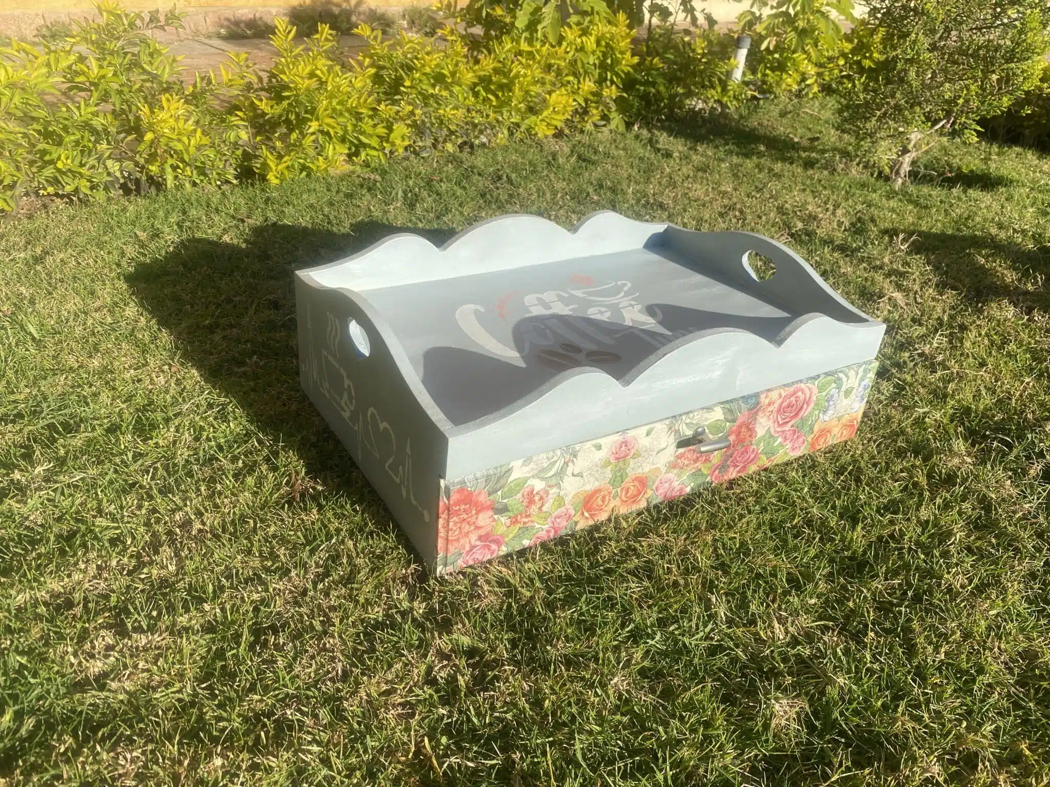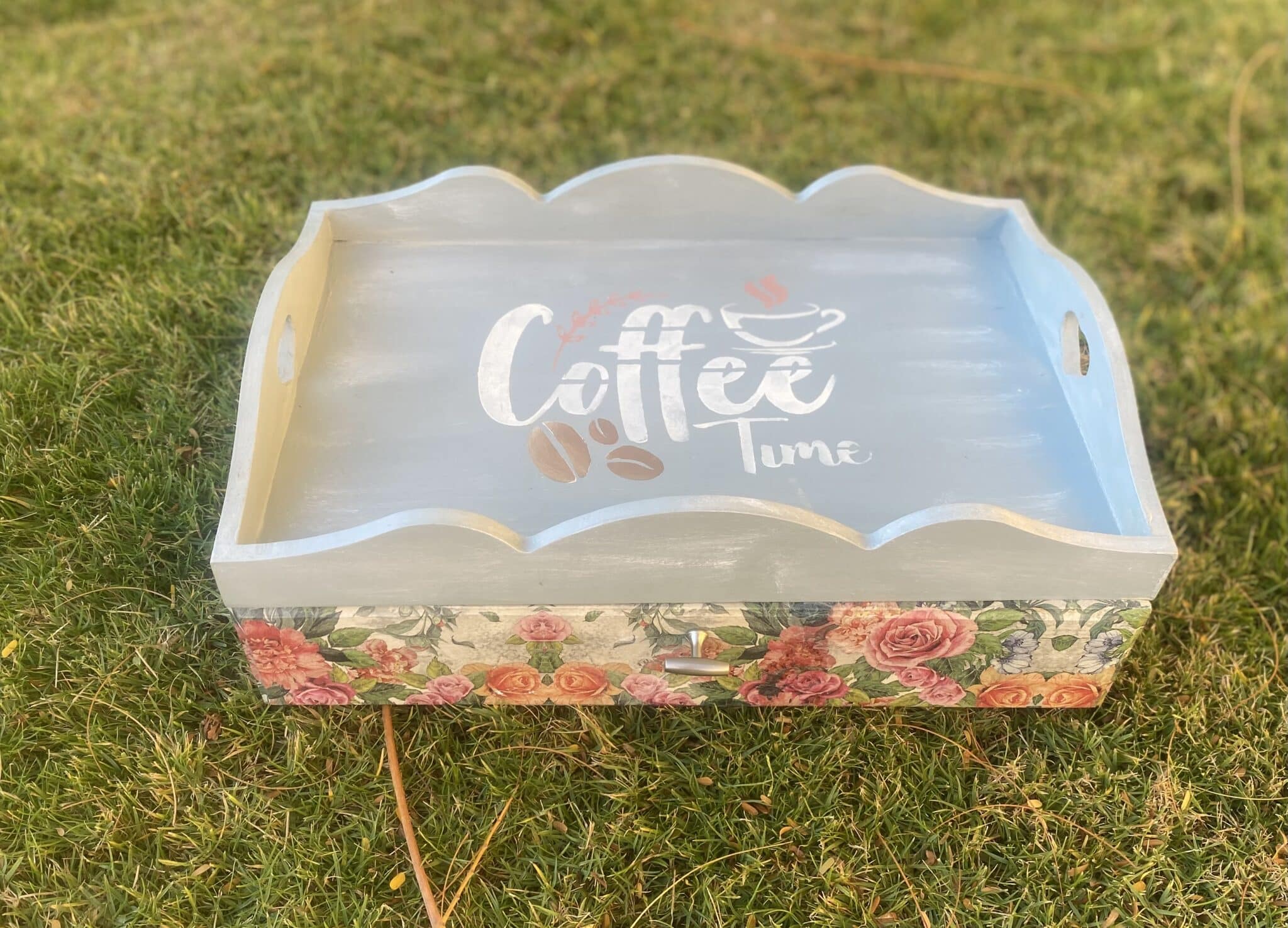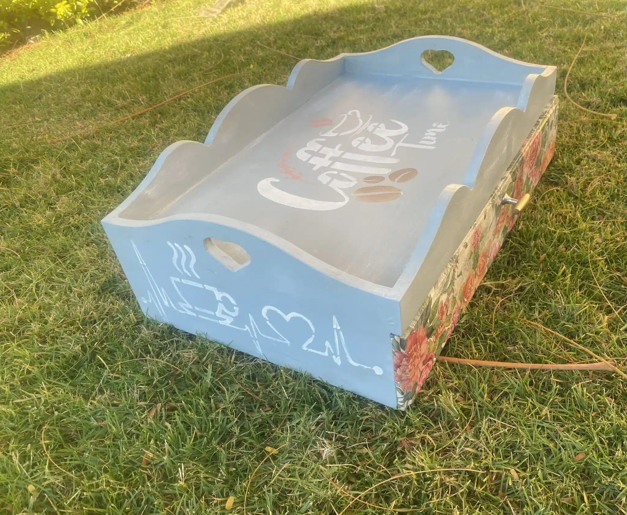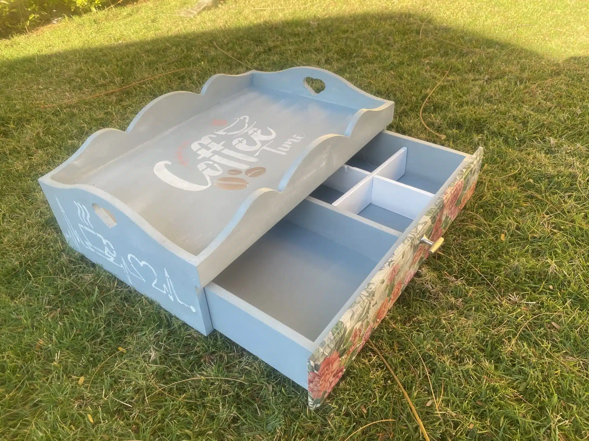 Wooden mini coffee corner with drawer in fleuri vintage blue design