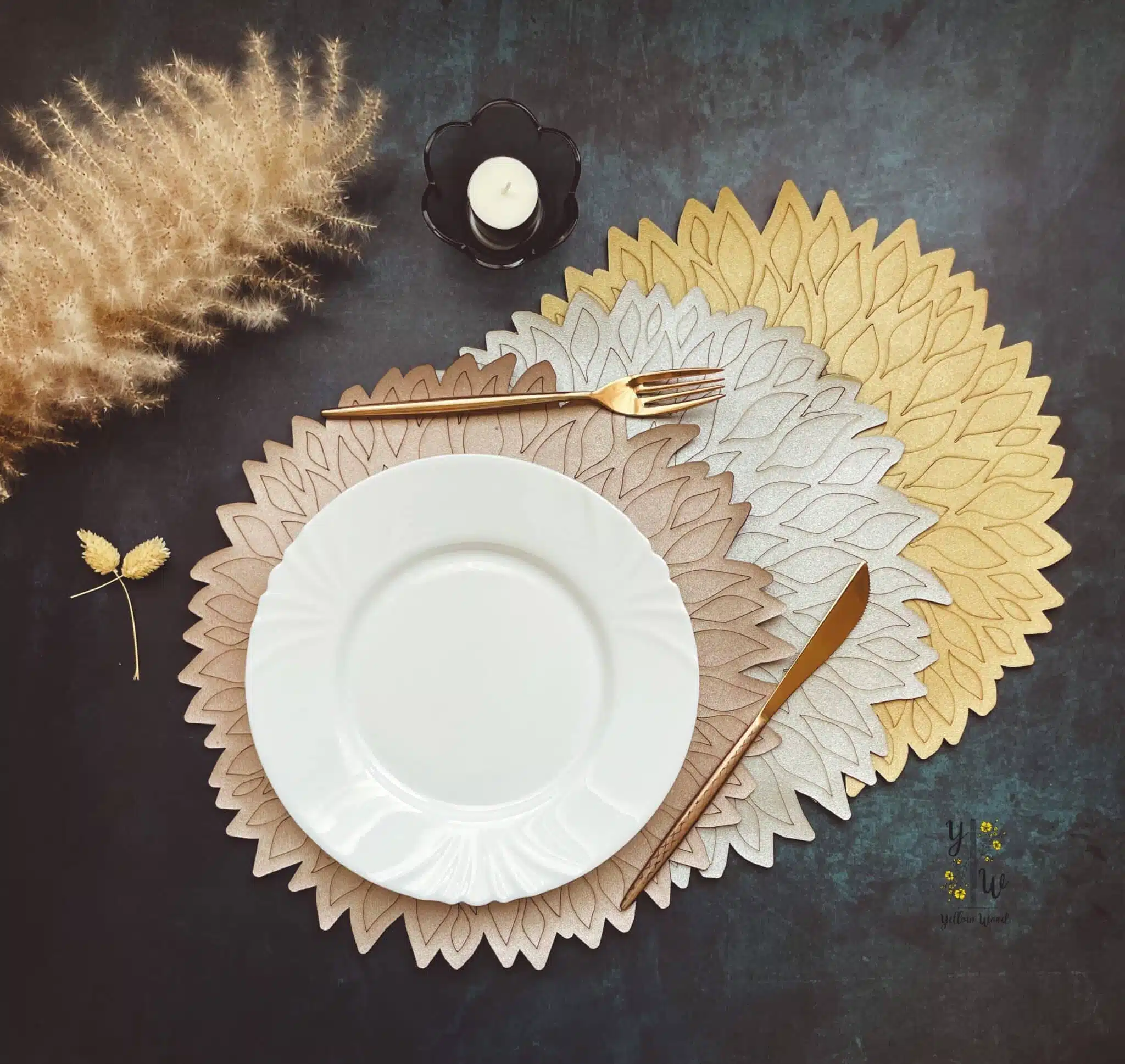 | Set | Silver Napkin Holder, Gold Napkin Holder, Rose Gold Napkin holder, Silver Placemat, Gold Placemat, Rose Gold Placemat, Silver Coaster, Gold Coaster, Rose Gold Coaster |