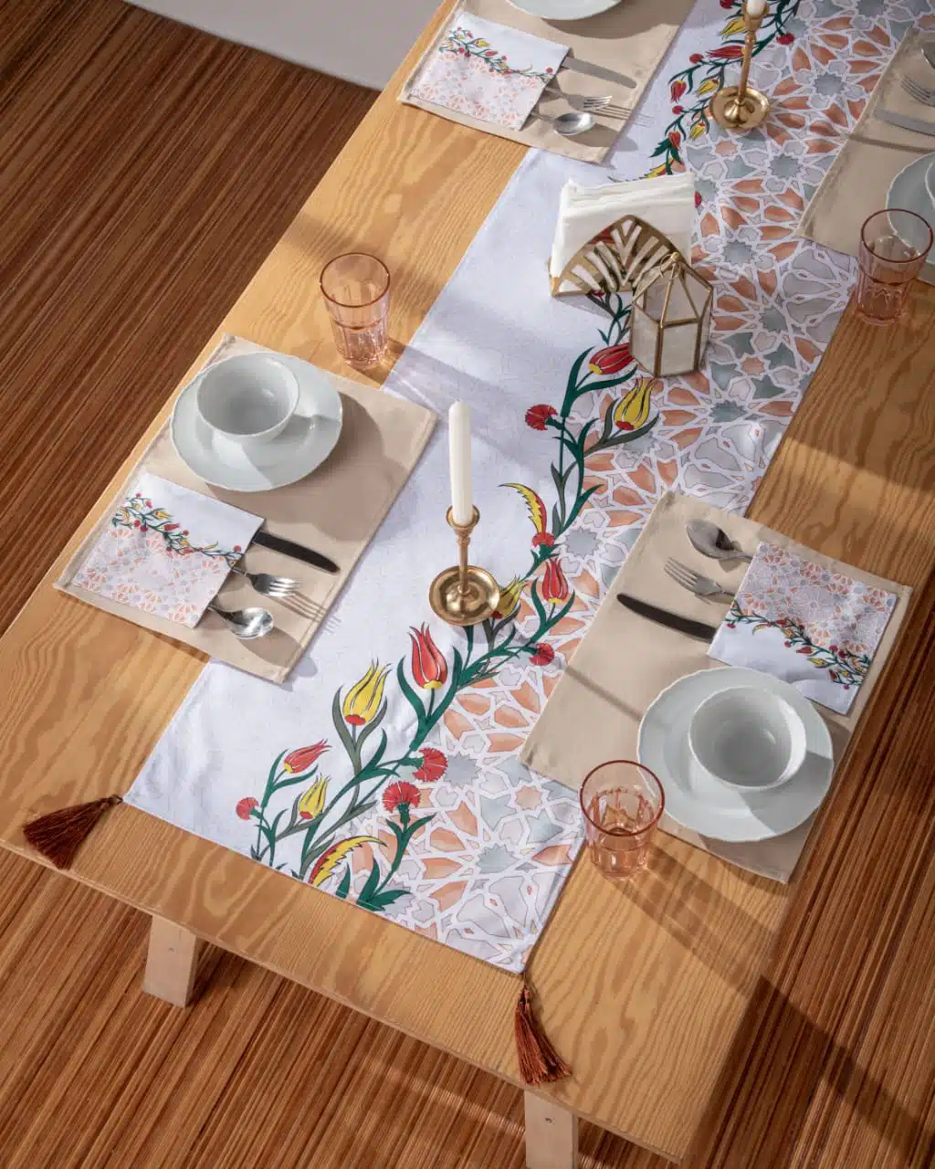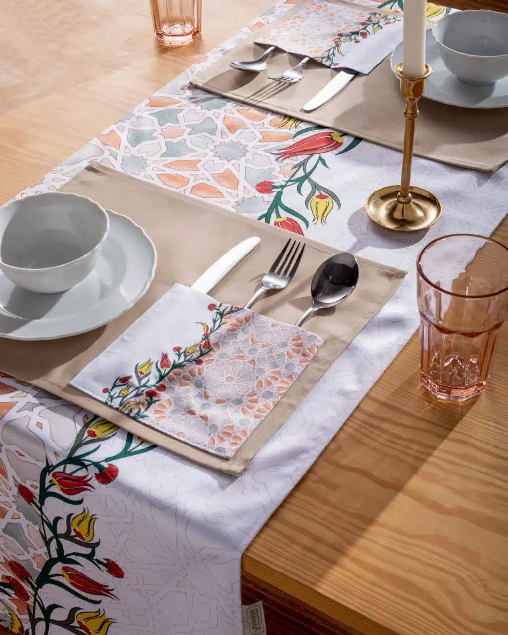 Floral Arabesque placemat Size: 35cm*45cm Fabric: waterproof fabric* printed pocket Washing tips: Dry Clean or washing machine with cold water.