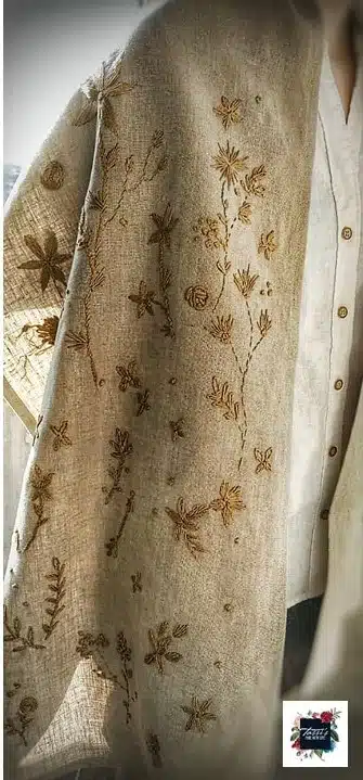 Material: Pure Linen Shawl, hand embroidered with cotton threads.