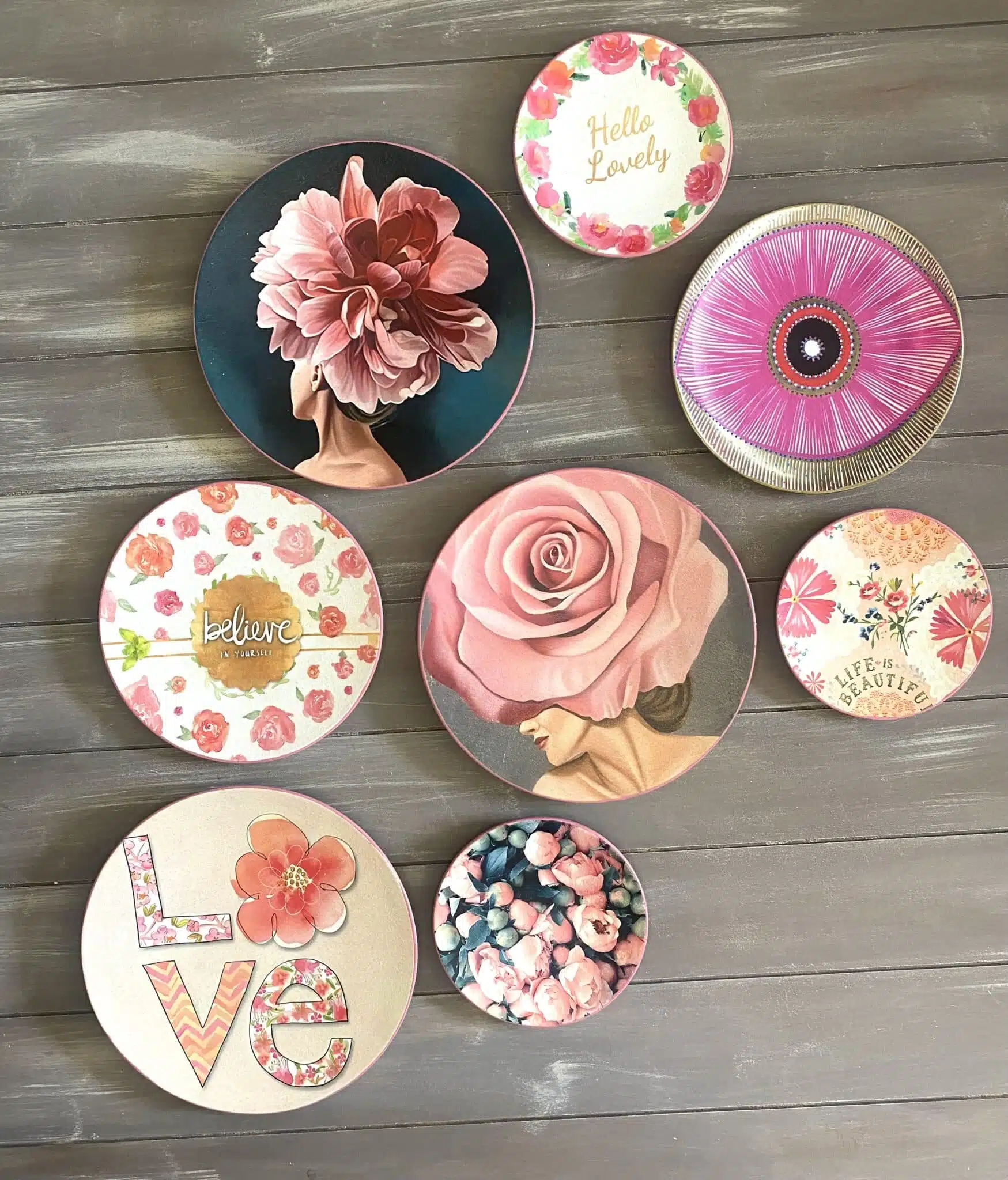 Decoupaged wall plates collection