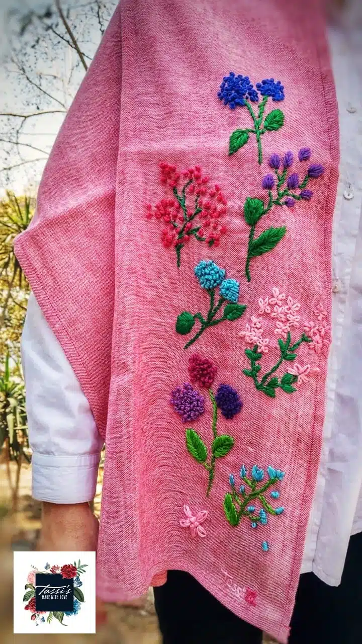 Material: Linen Shawl, embroidered with cotton threads.