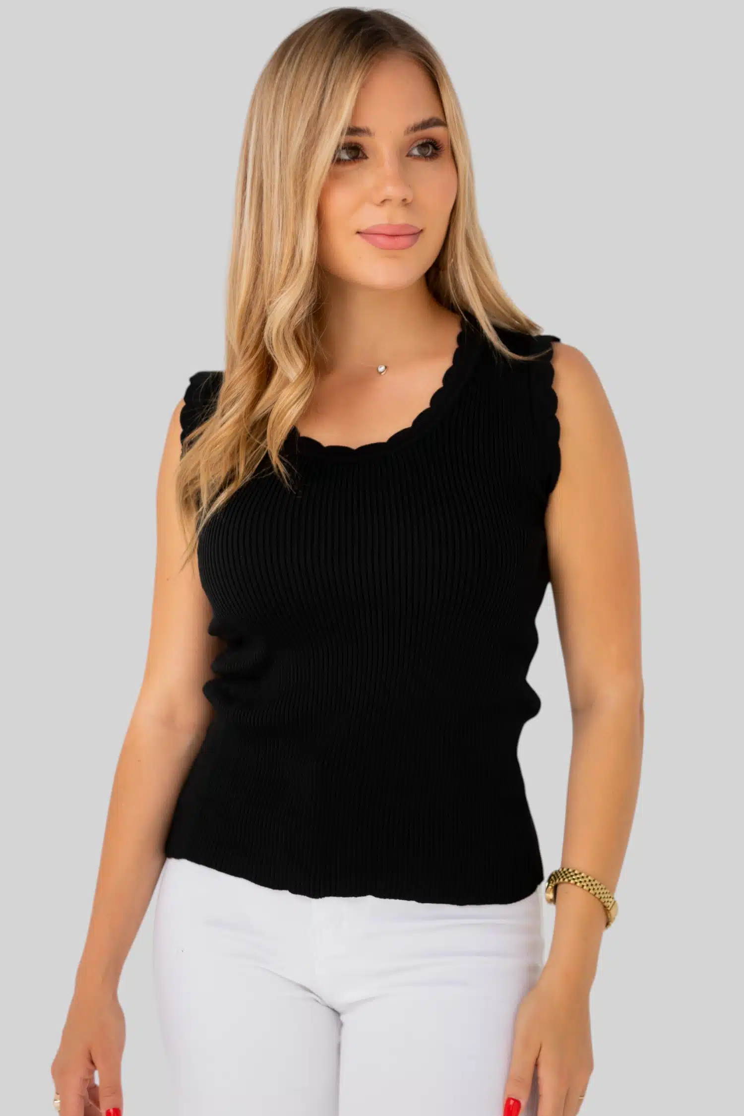 flowered rims knit top black