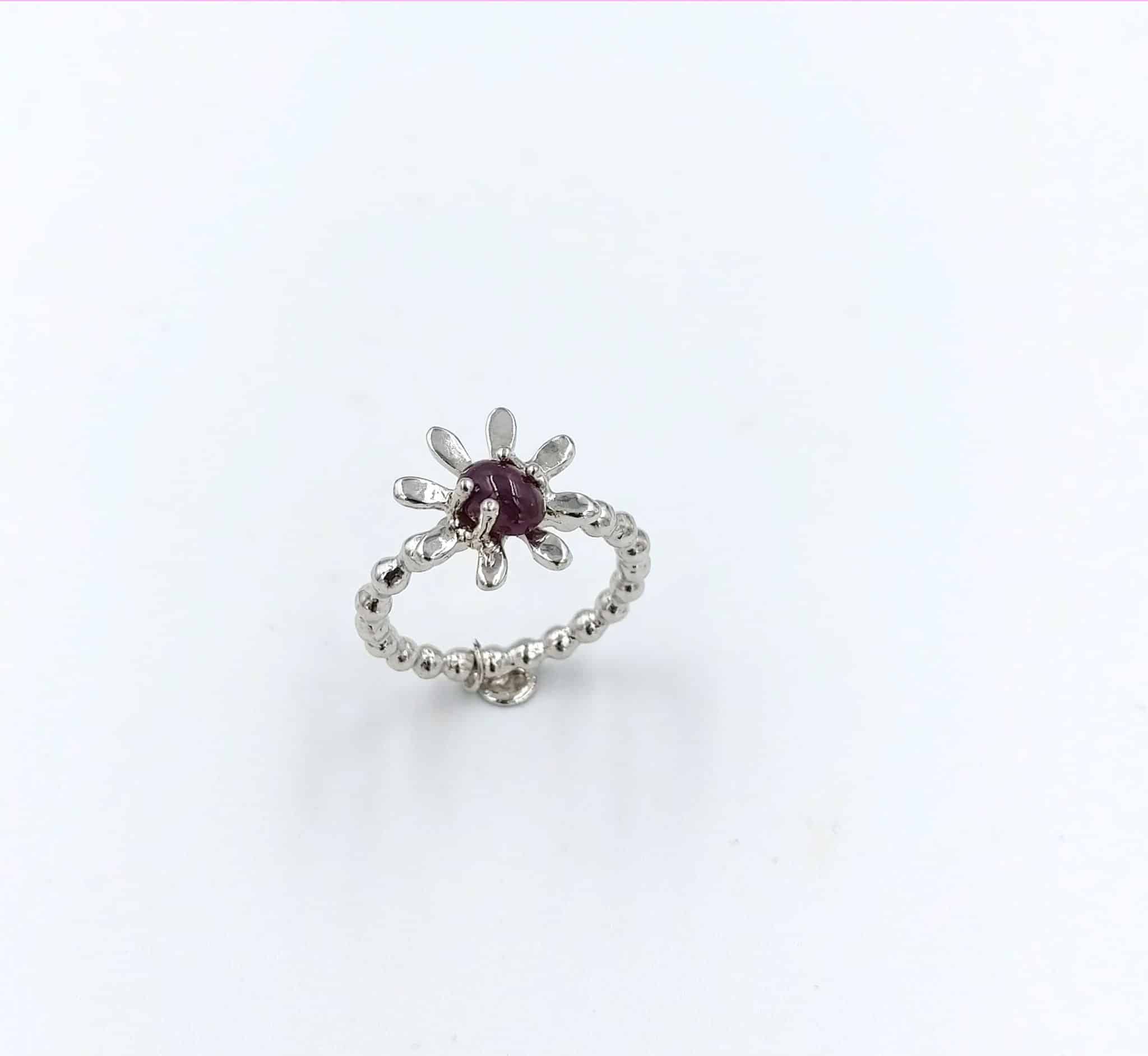Flowery Collection- Silver Ball Ring With Red Ruby
