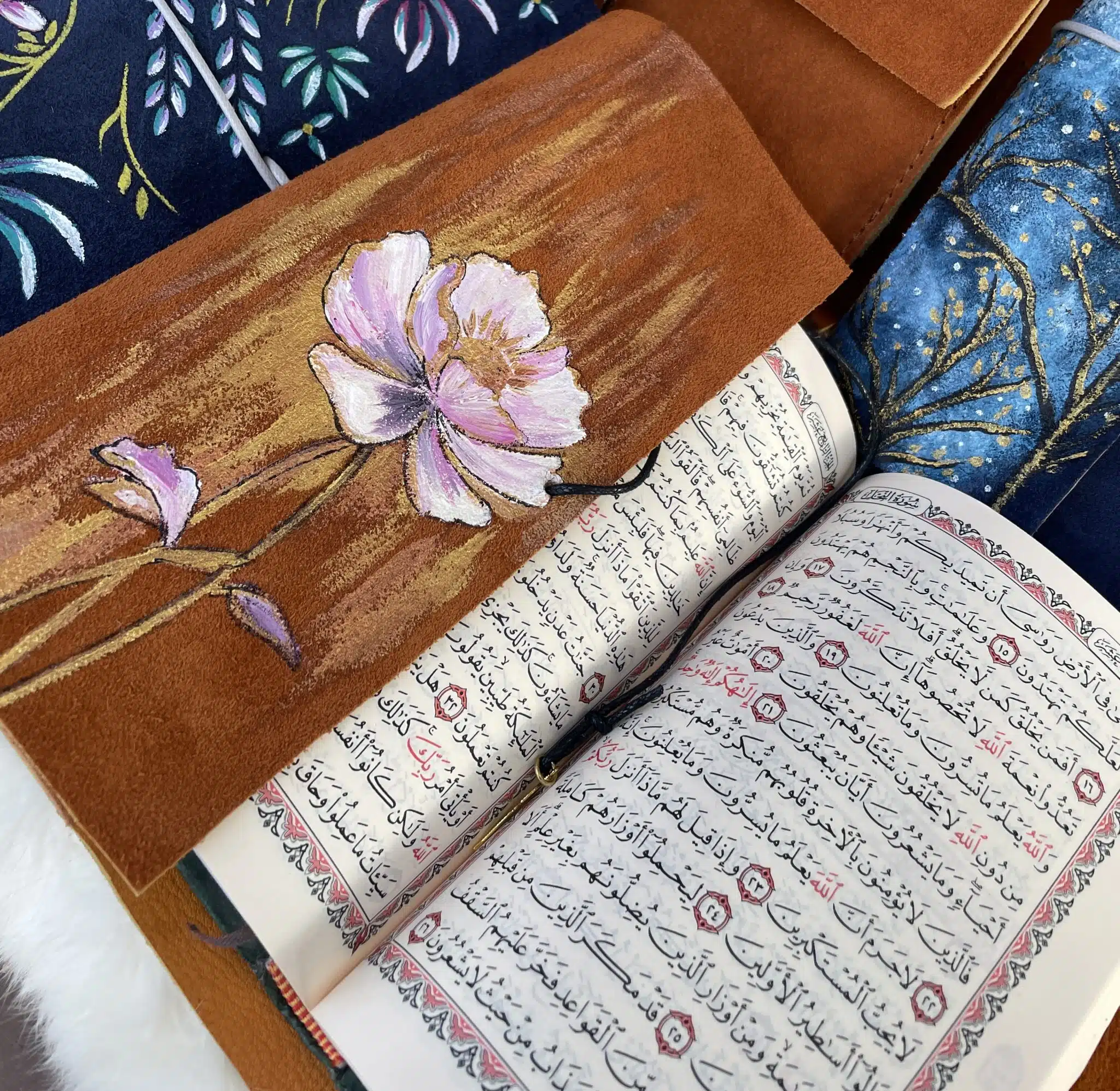 Flowery leather quraan cover