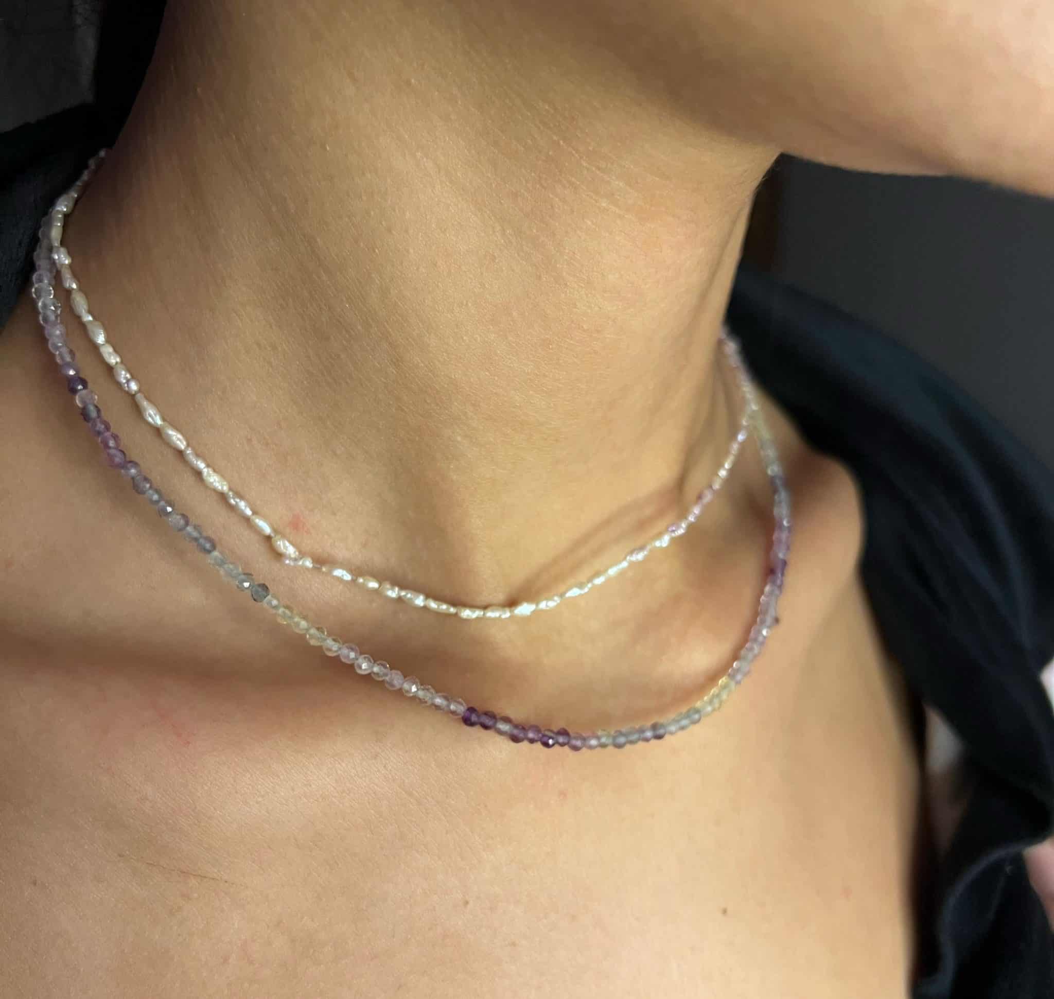 fluorite stone chocker approximately 40 cm with 2 cm extension metel plated finishing