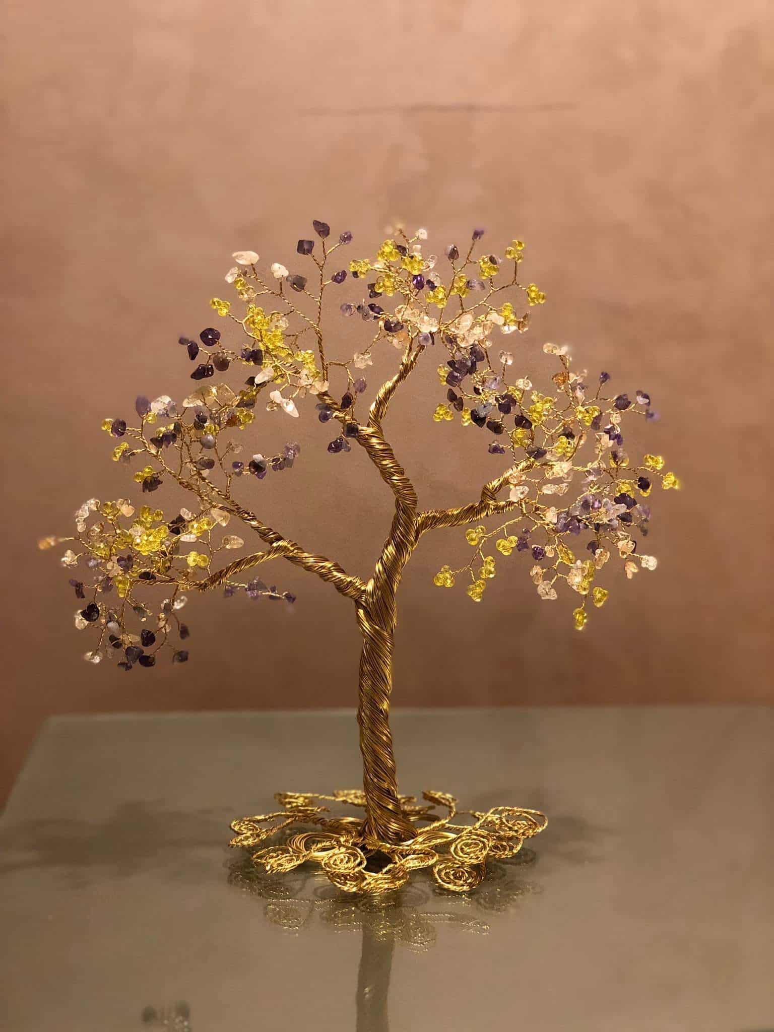 copper wire with citrine, amatist and crystal tree
