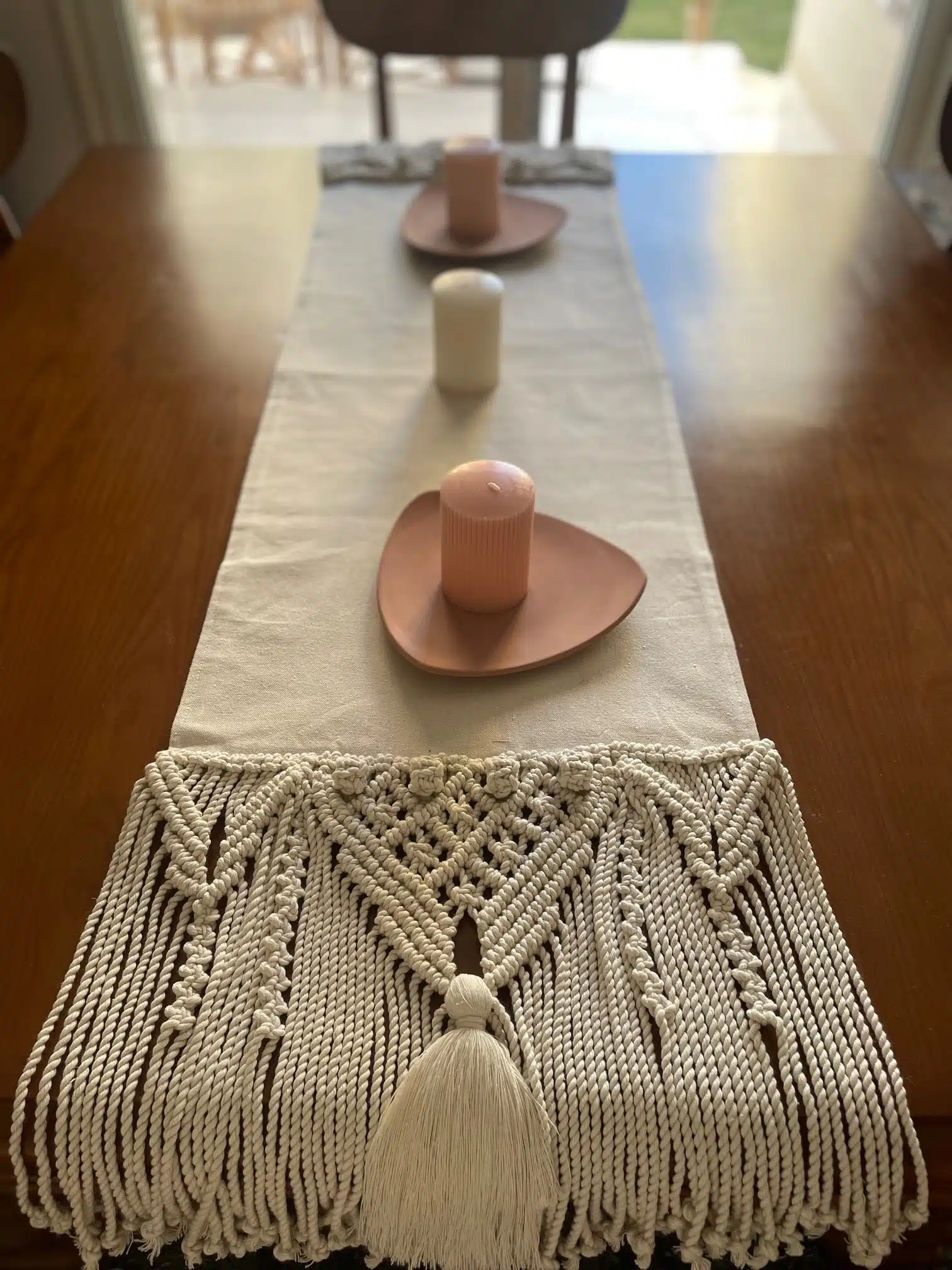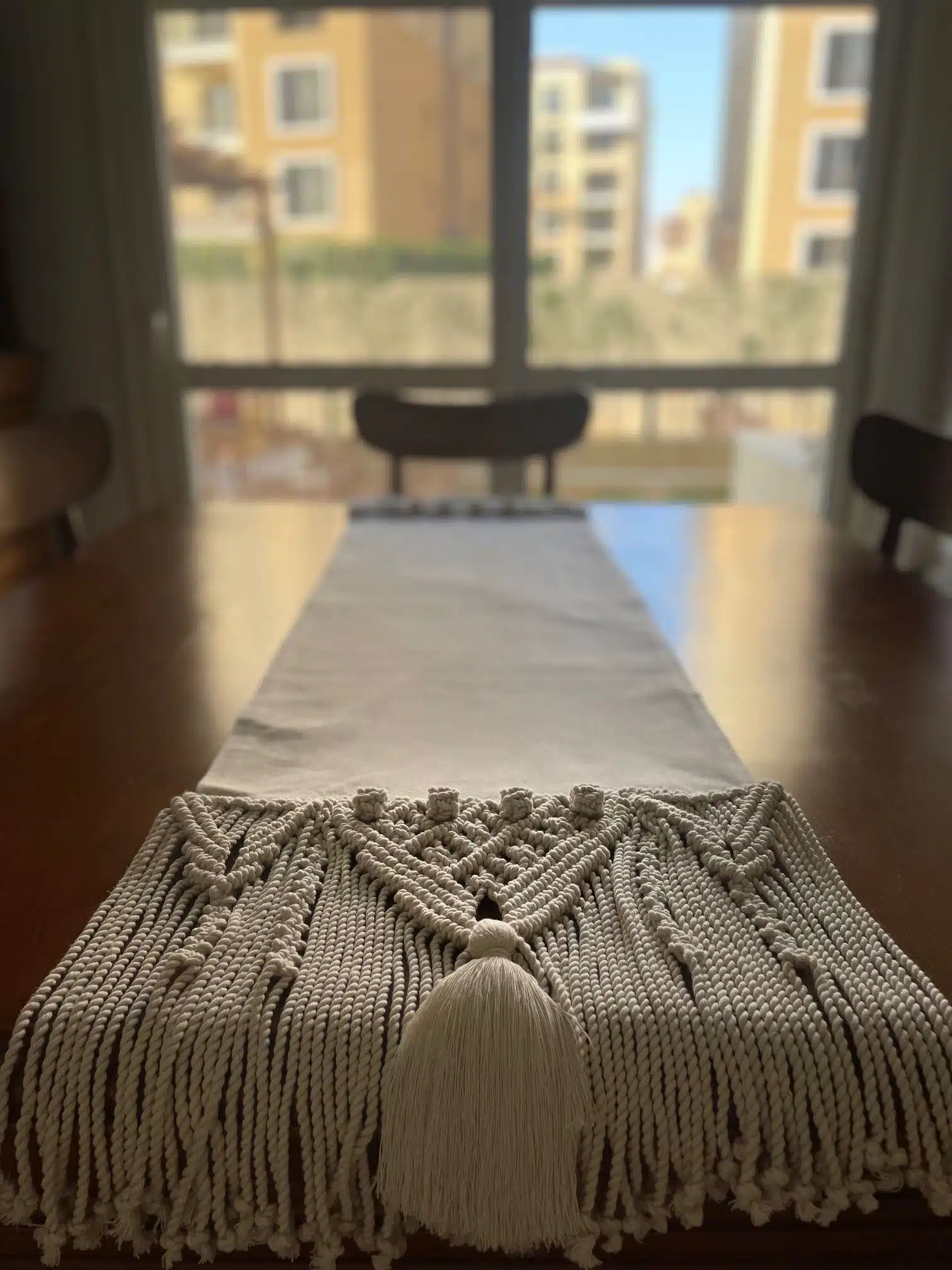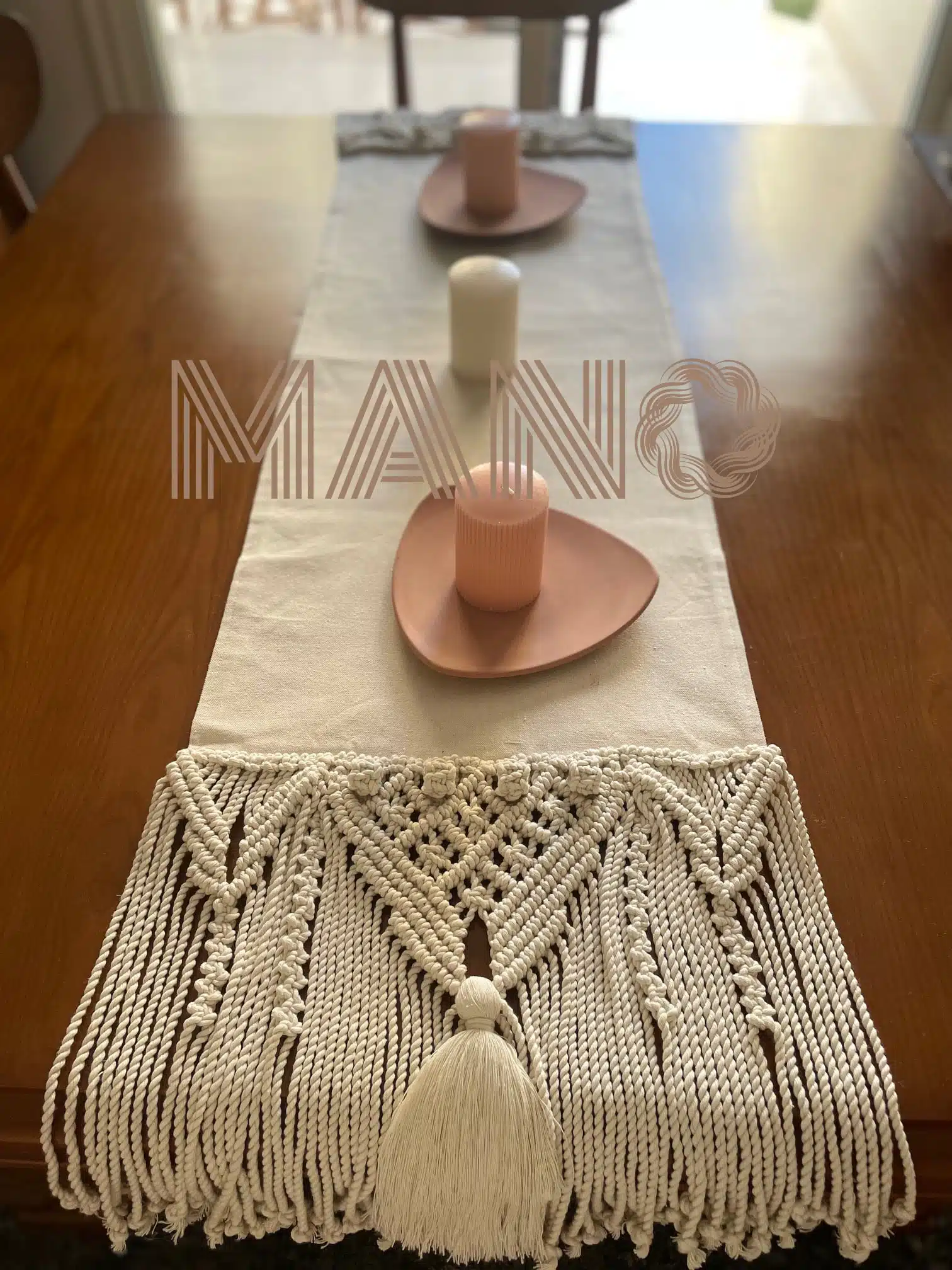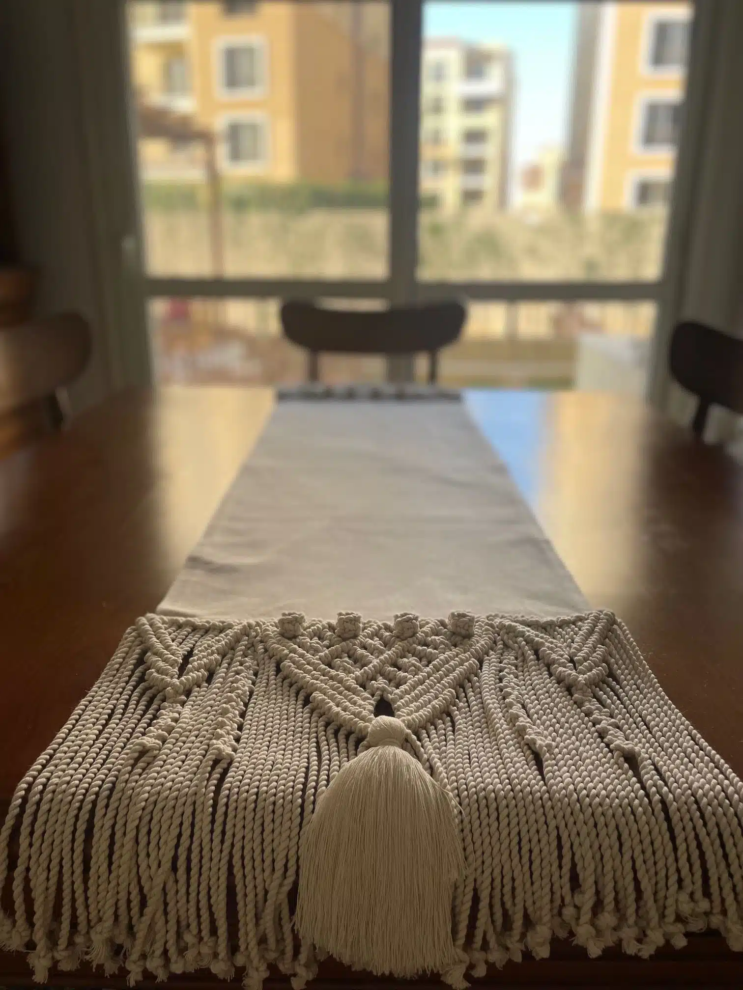 Pure Cotton Macrame Table Runner, pure cotton fabric, size 40cm*160 cm. Handwash with cold water only.