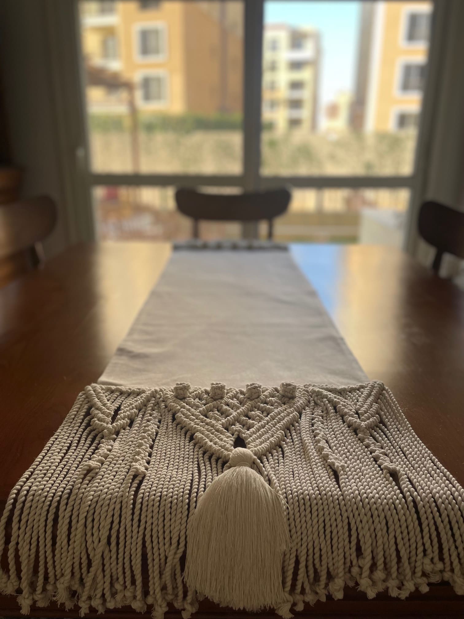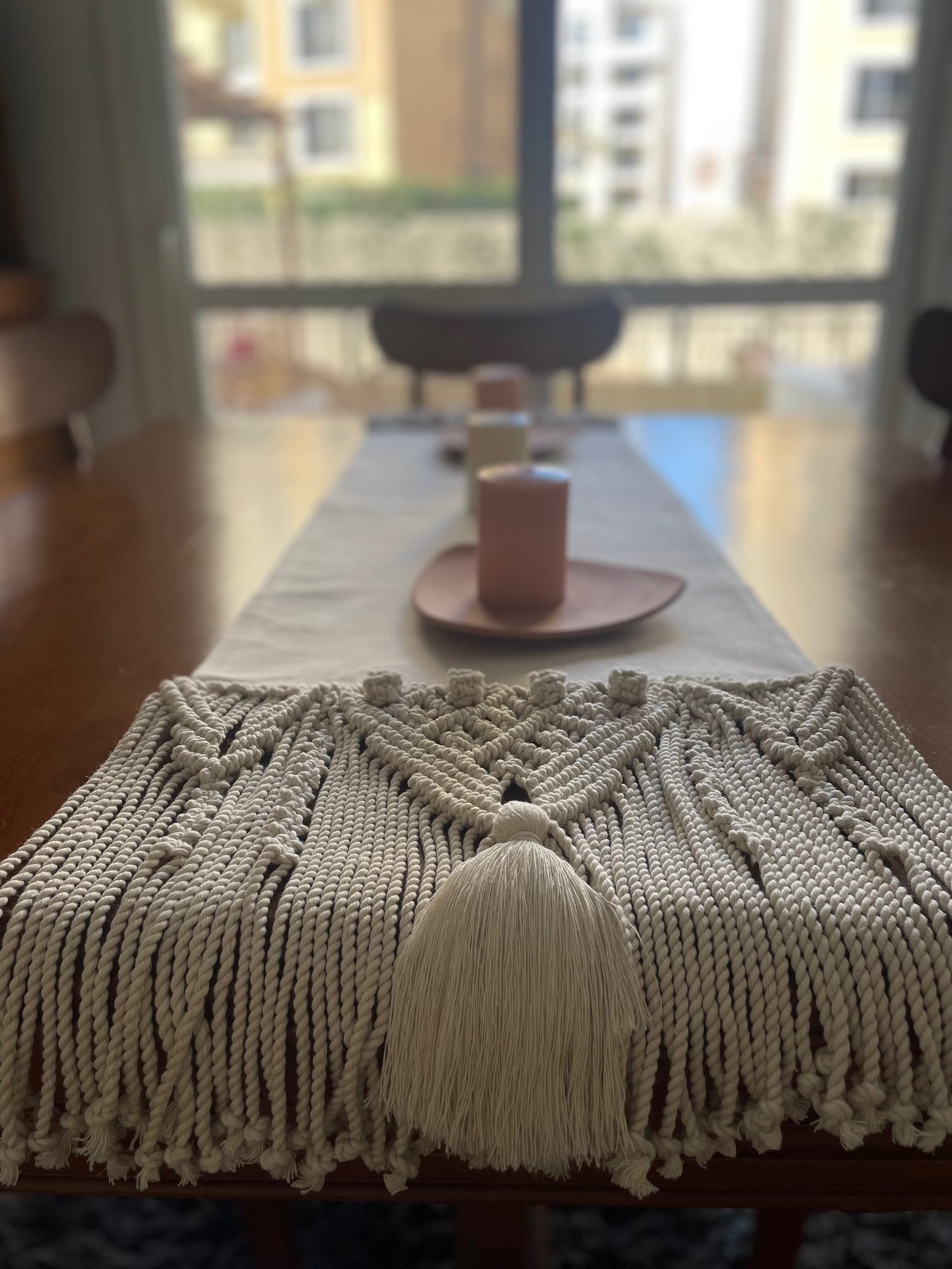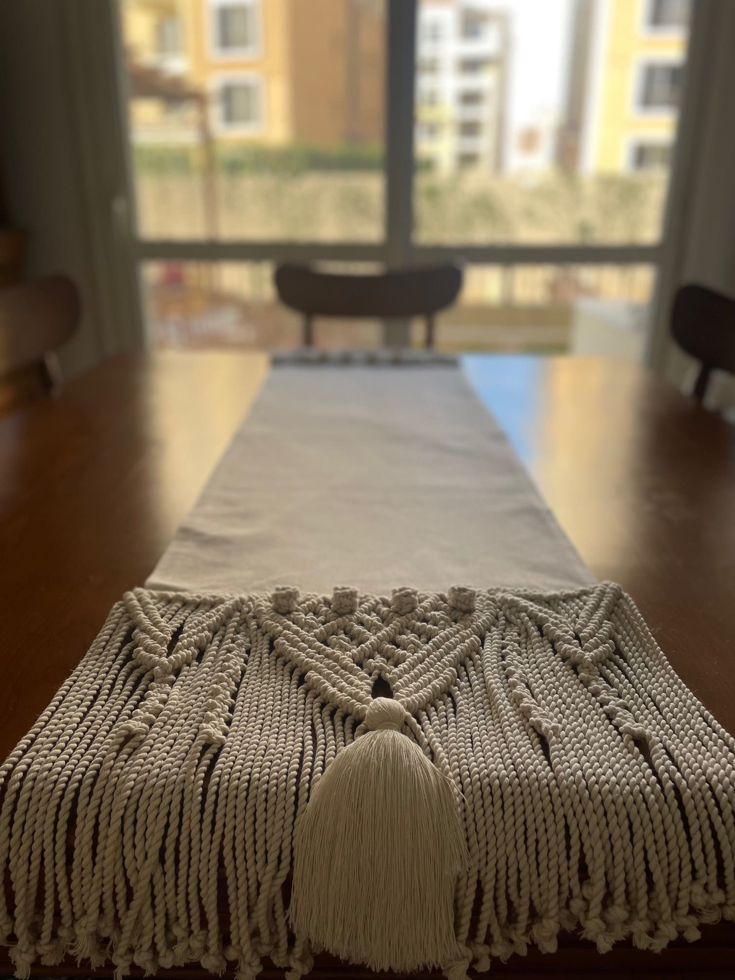 Pure Cotton Macrame Table Runner, pure cotton fabric, size 40cm*160 cm. Handwash with cold water only.