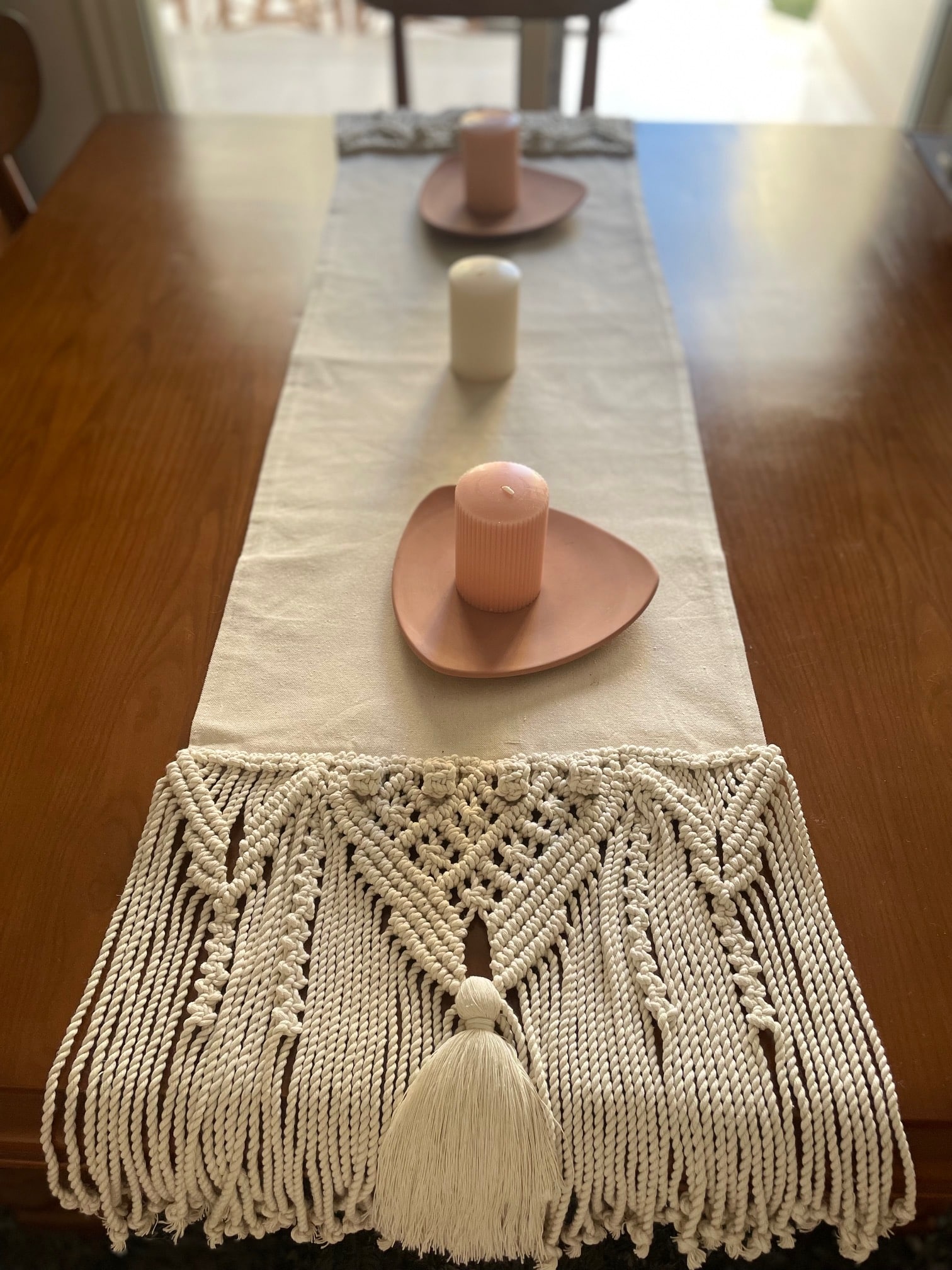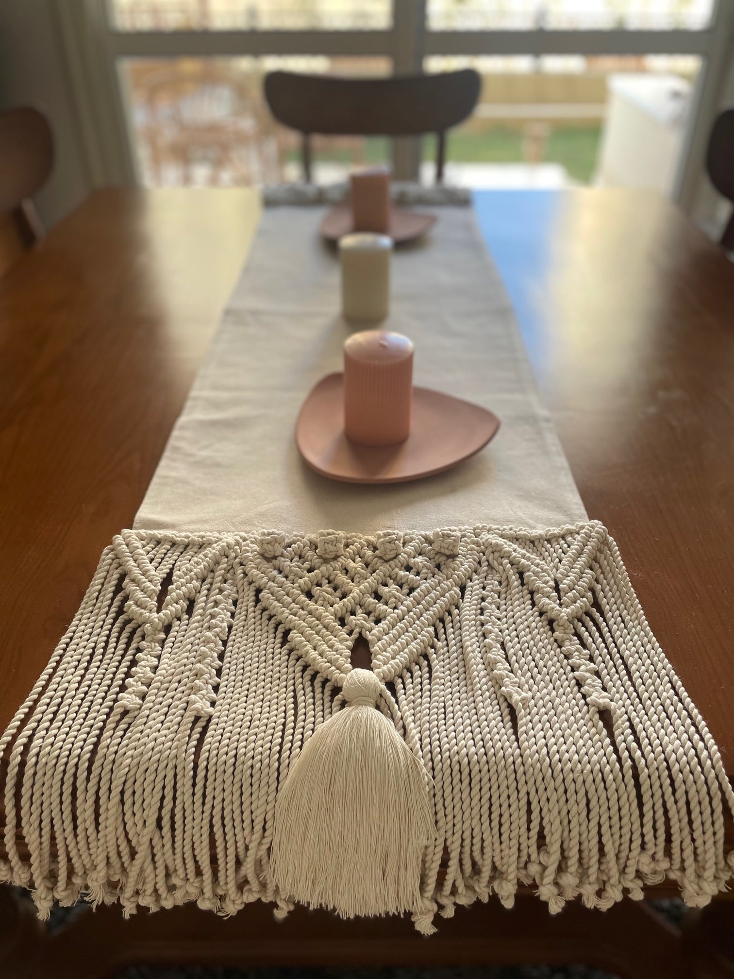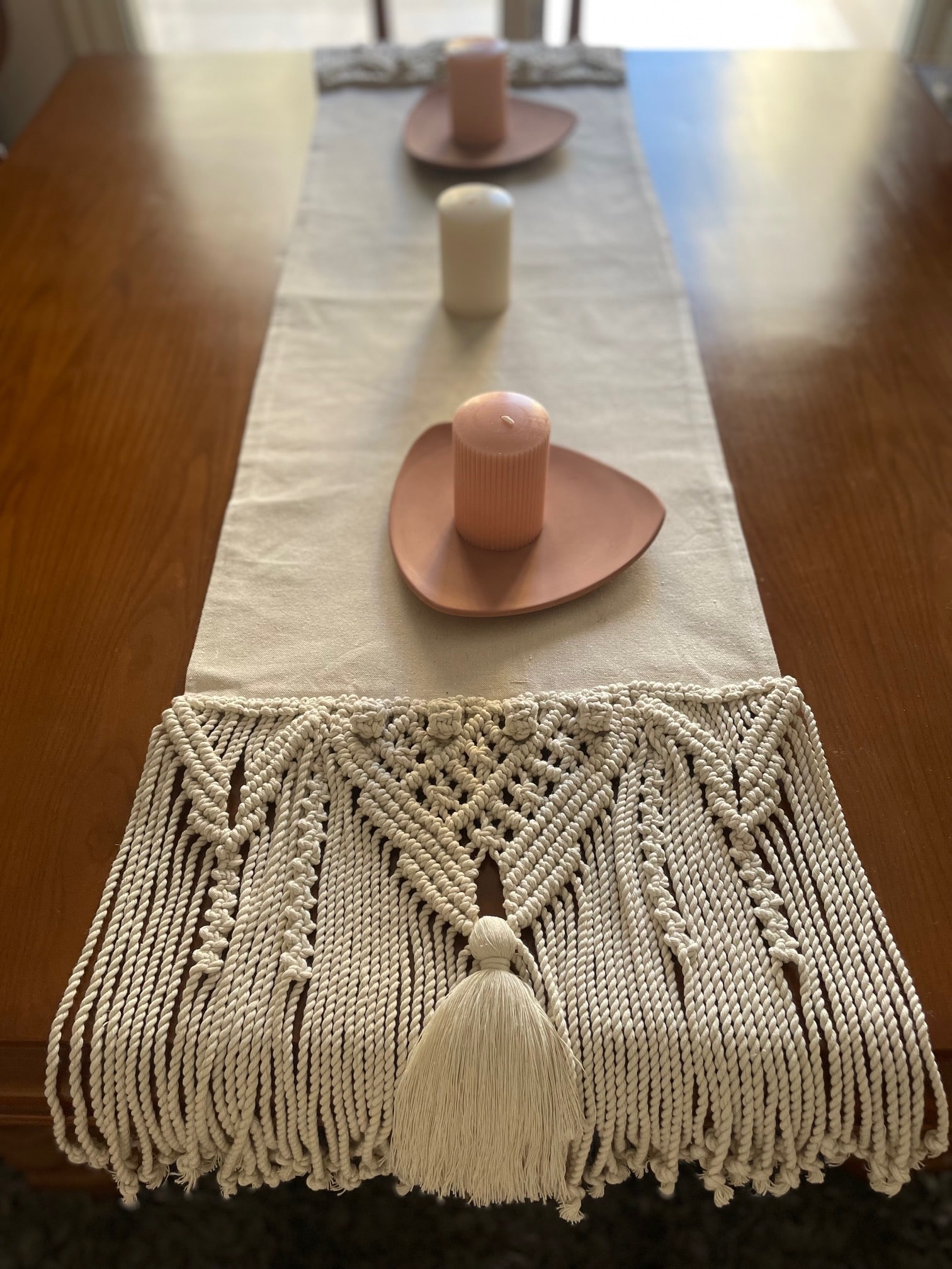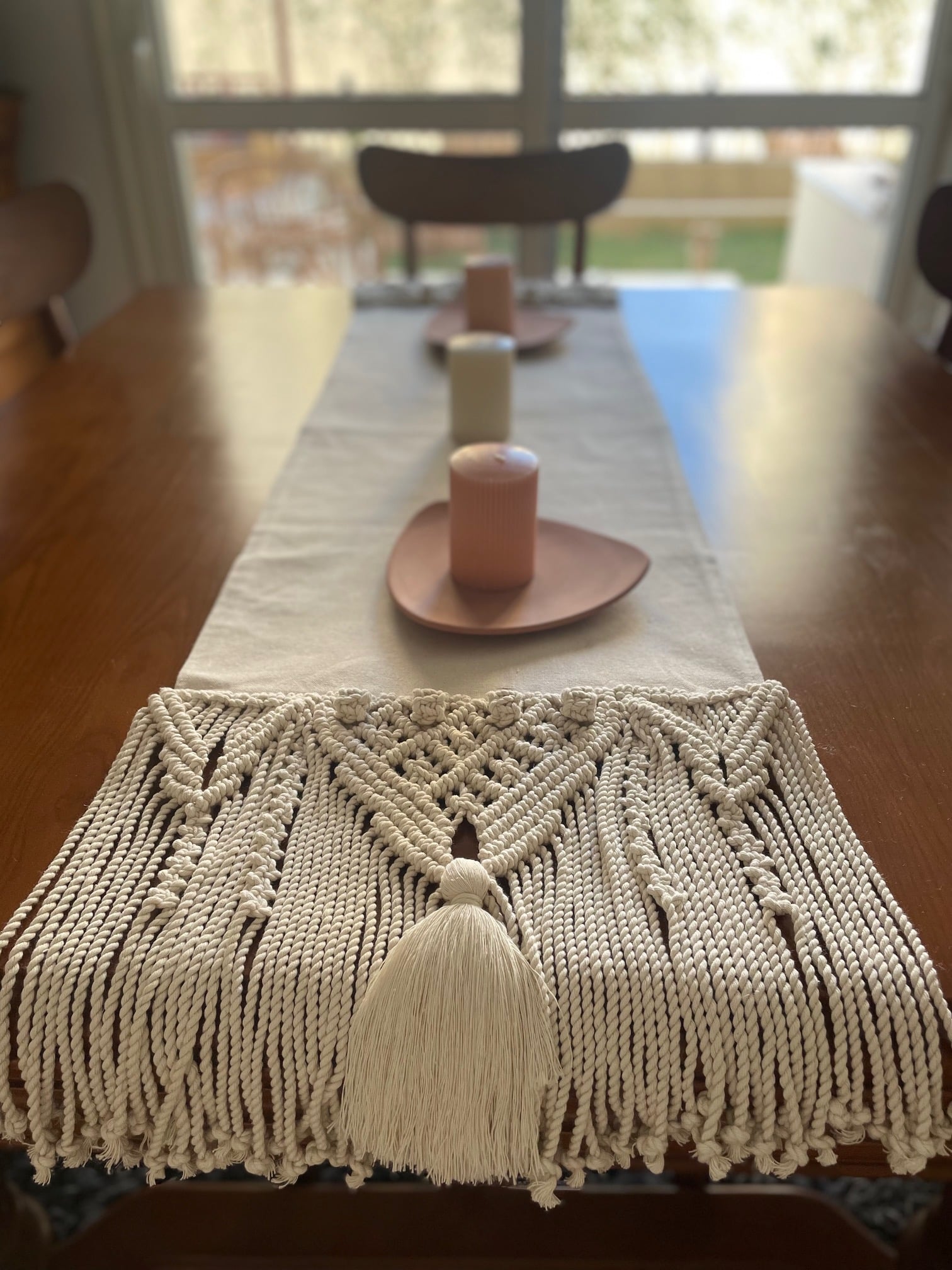 Pure Cotton Macrame Table Runner, pure cotton fabric, size 40cm*160 cm. Handwash with cold water only.