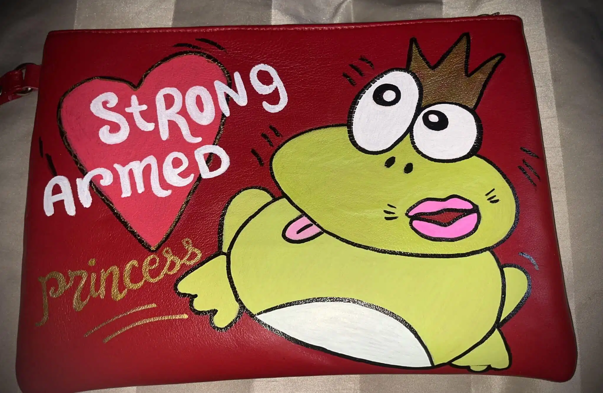 Simple and fashionable hand painted clutch bag. Easy to carry. Genuine leather. Color Red