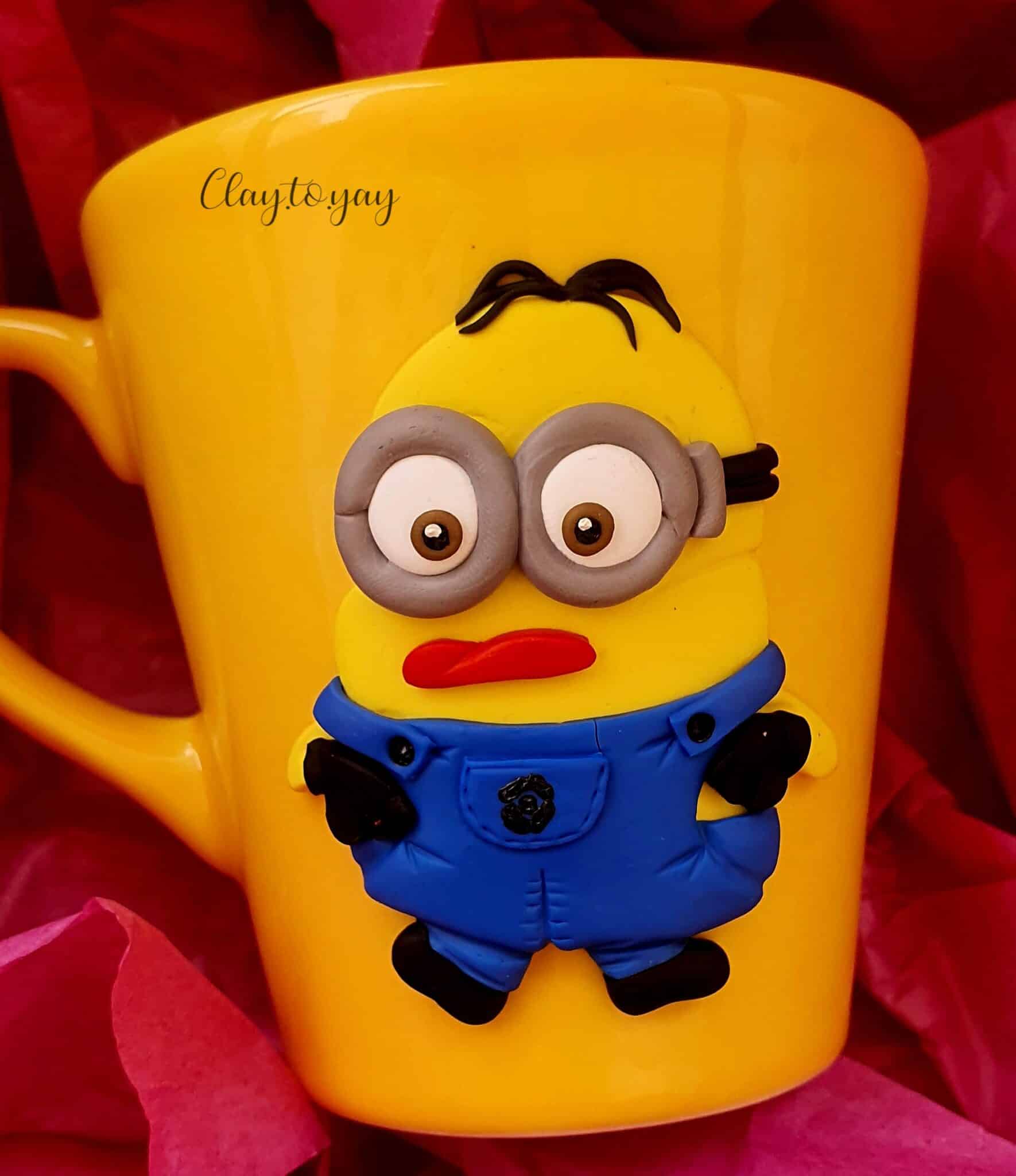Porcelain mug with a design made of polymerclay