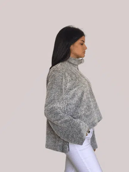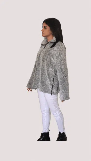 Furry Pullover, mixed wool, side and neck zippers, free size