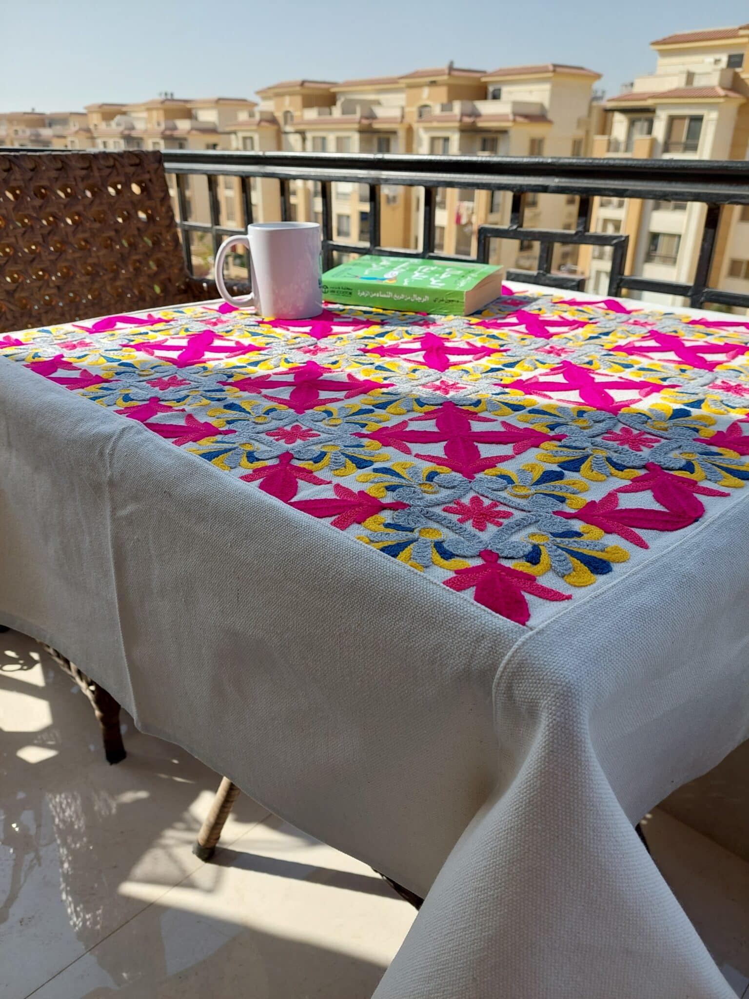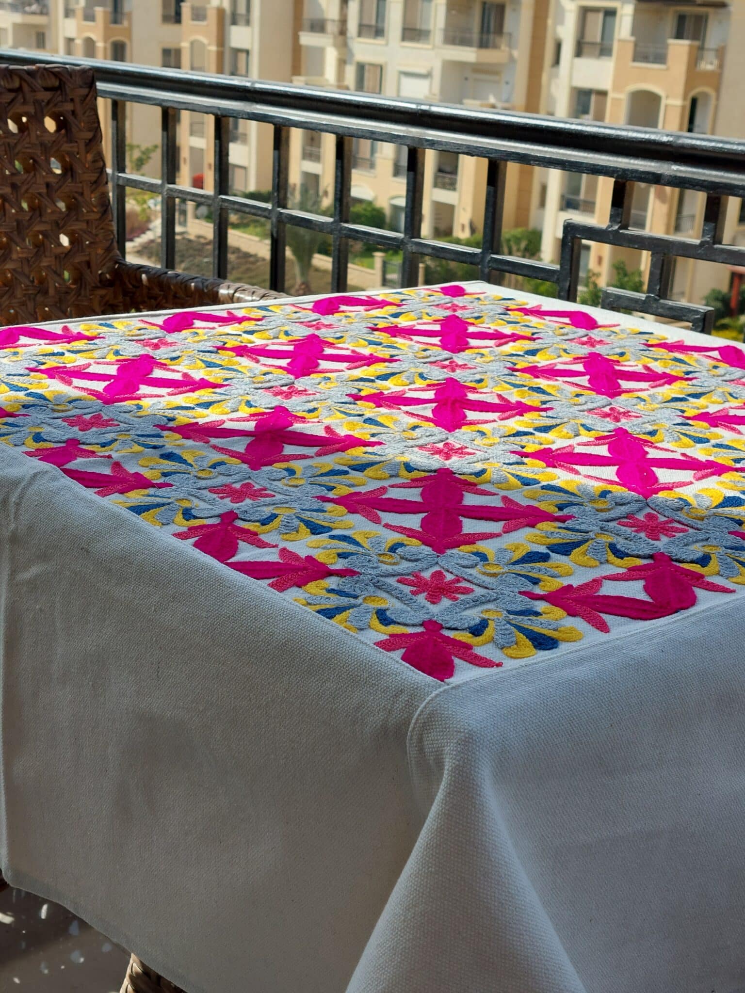 Machine-embroidery tablecloth.