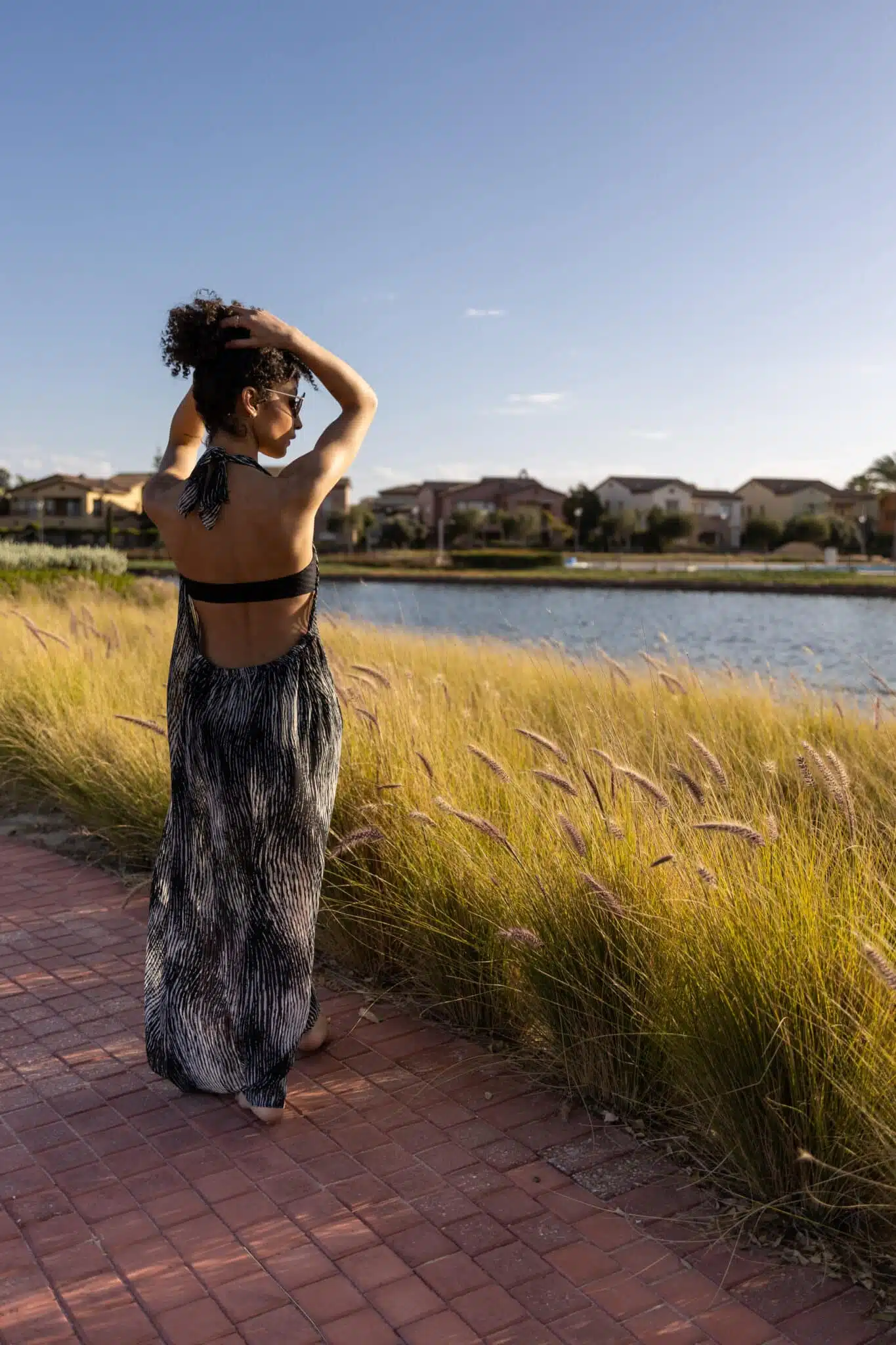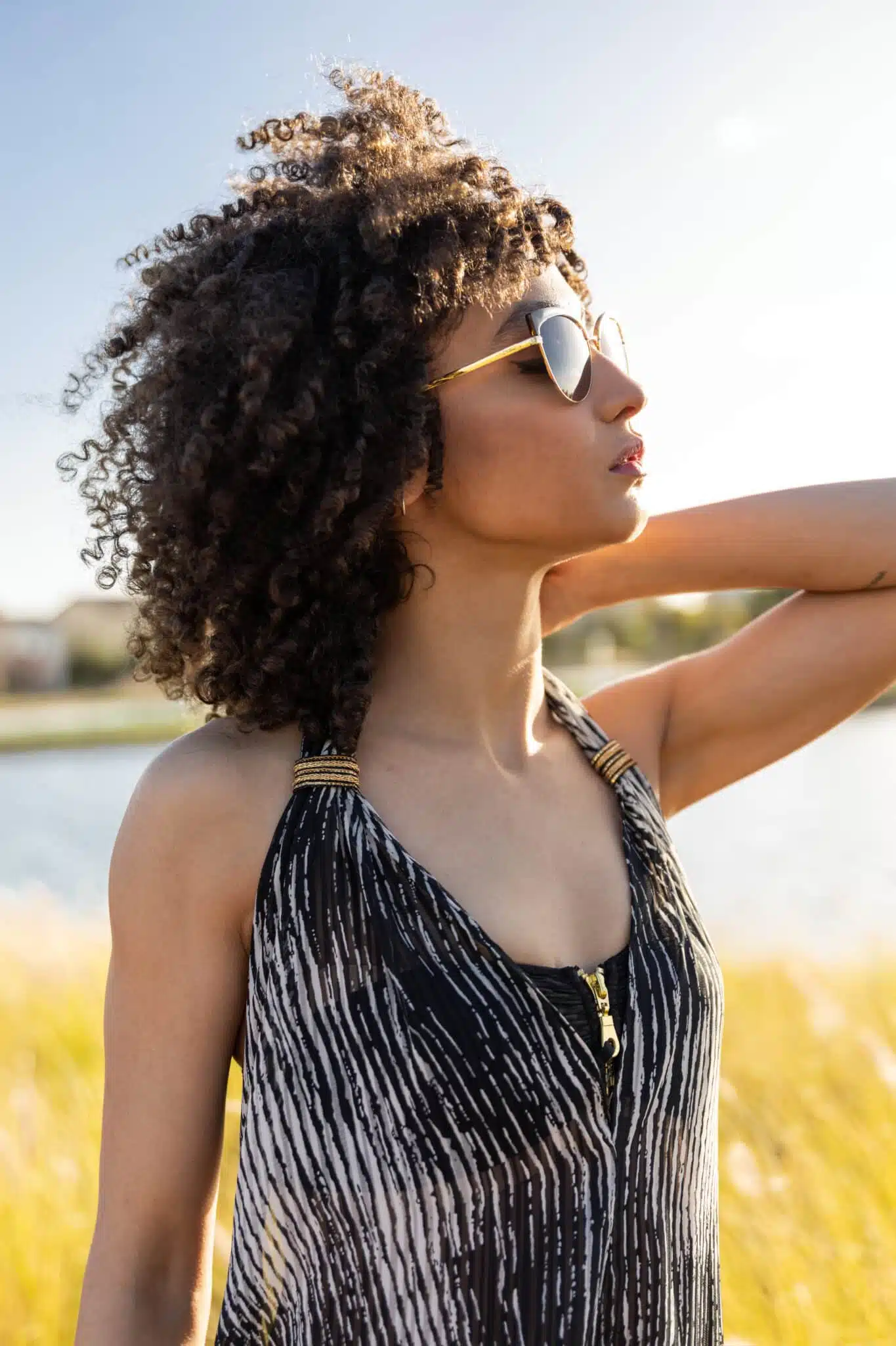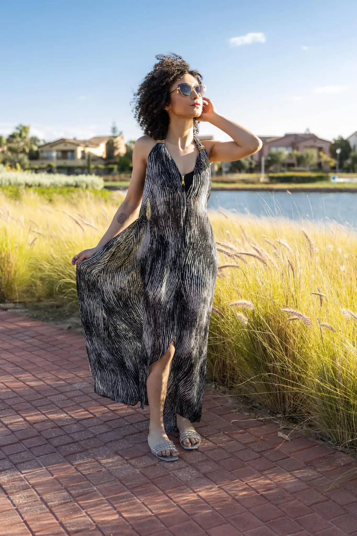 A chiffon, halter, beach coverup with embellishment detailing on the strap. Elastic back which makes it friendly to sizes S till XL.