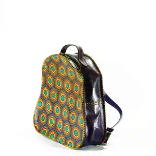 Genuine Leather Backpack, Hand Painted Leather, Geometric Pattern, Square Mandala, Boho Backpack
