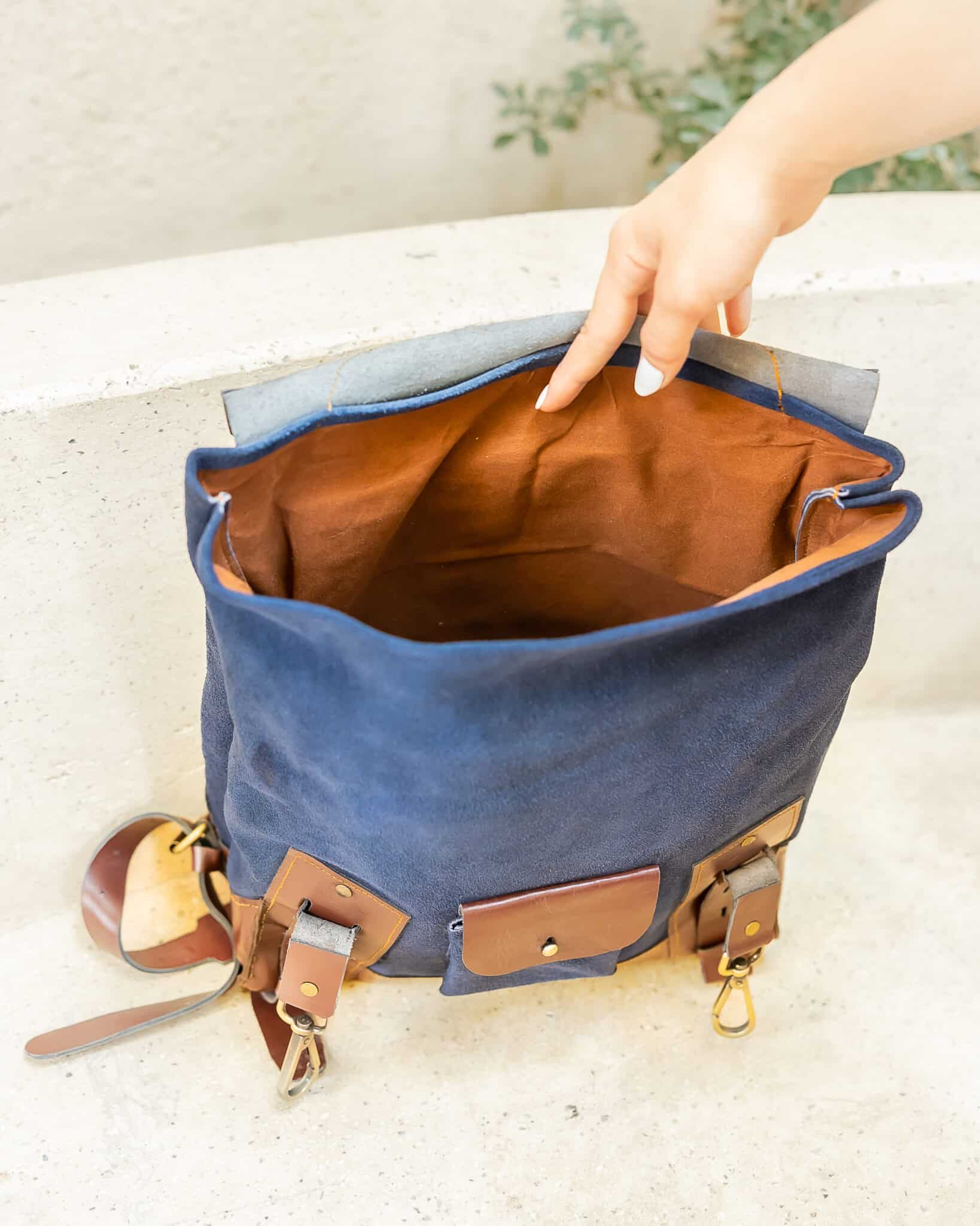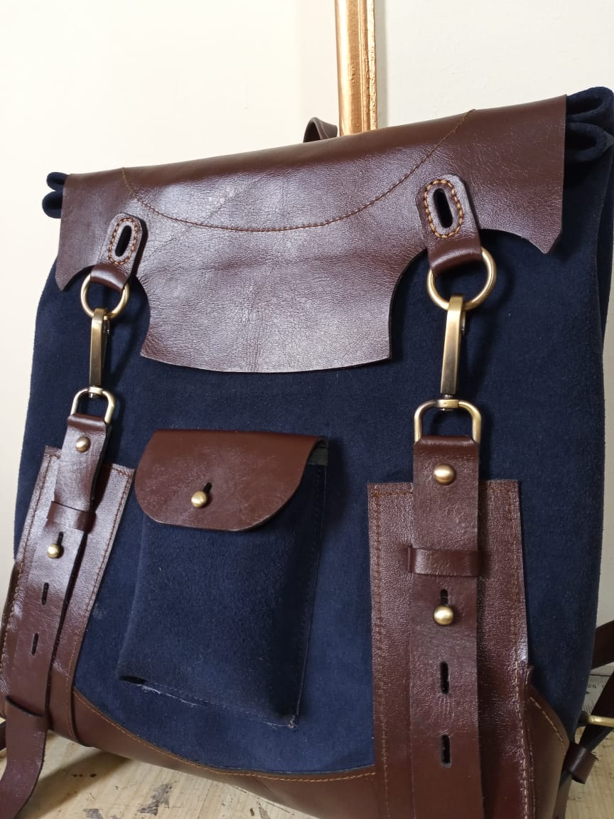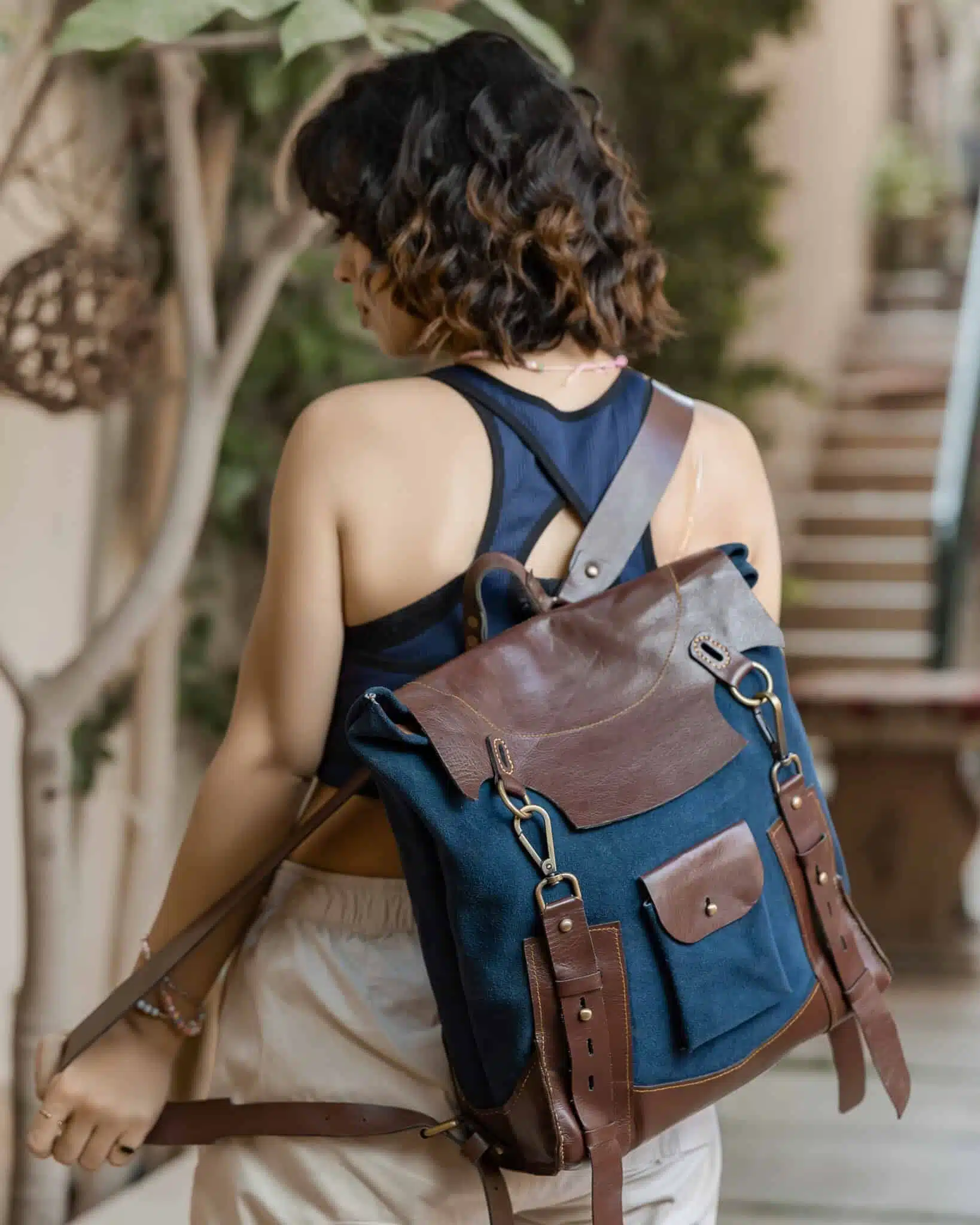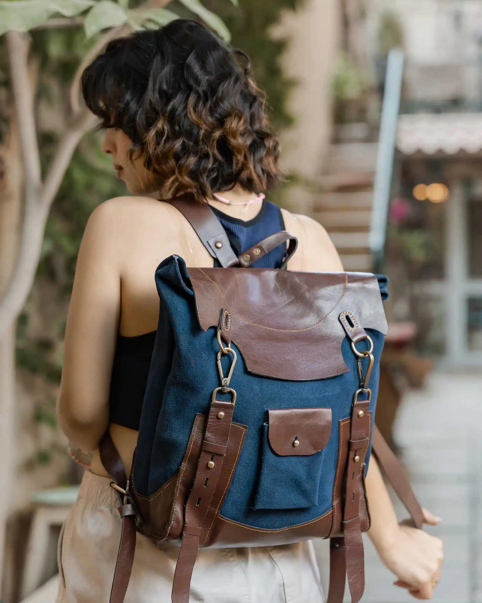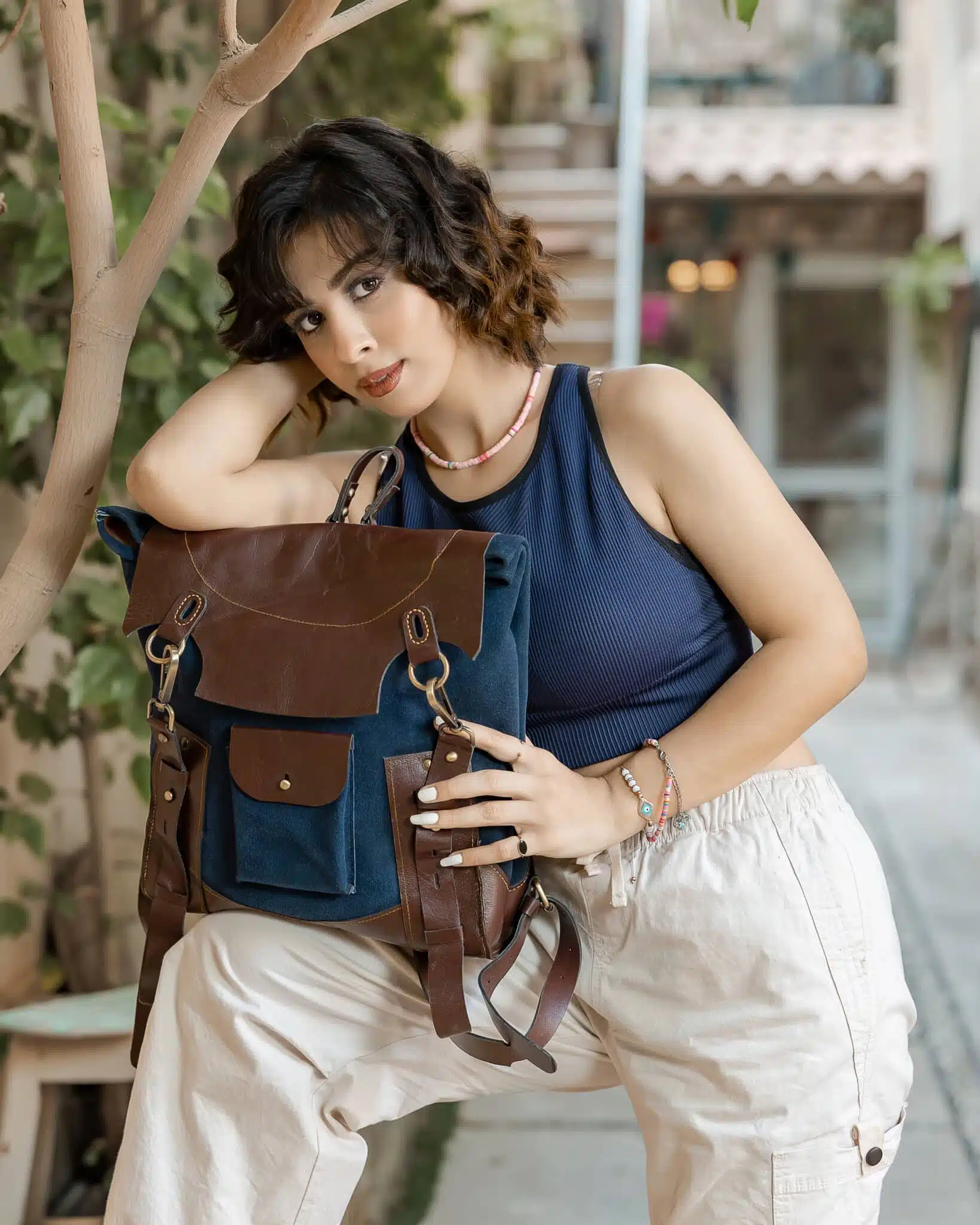 Brown and Blue large leather backpack for women. It is great solution for everyday use. Can serve as a gift to your family members or a dear friend.