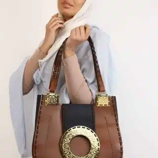 موديل زاد — حقيبة عملية بتصميم أنيق من الجلد الطبيعي، مطعّمة بالنحاس المطلي بأسلوب عربي فريد، تجمع بين الأصالة والعصرية لتمنحك إطلالة مميزة في كل وقت.