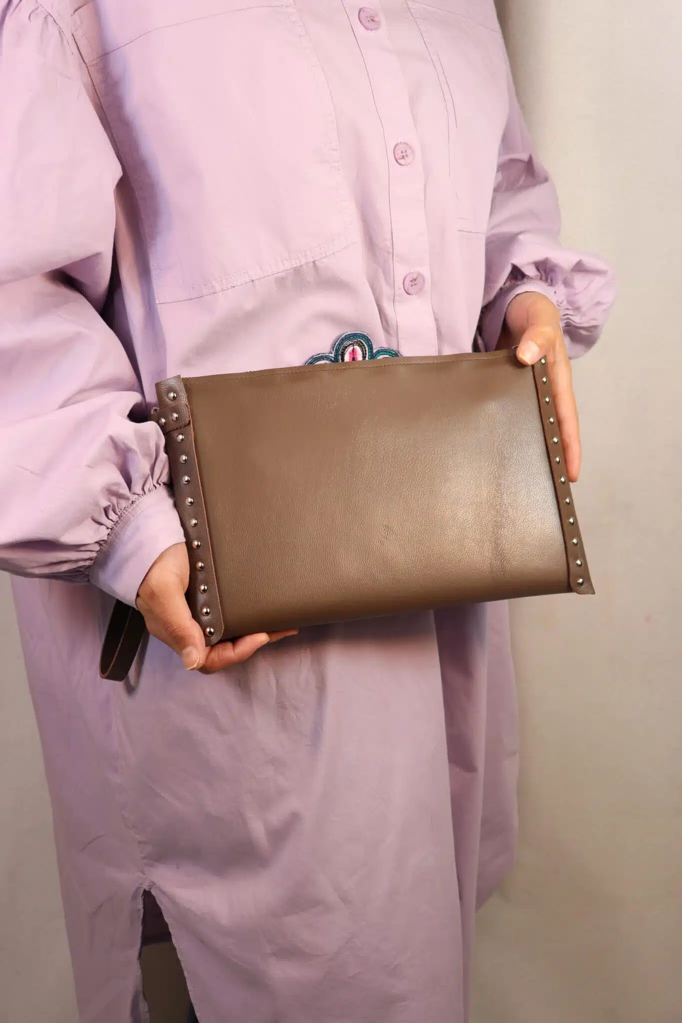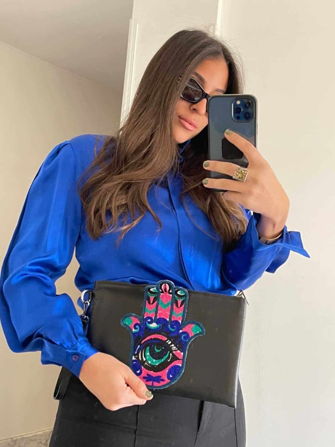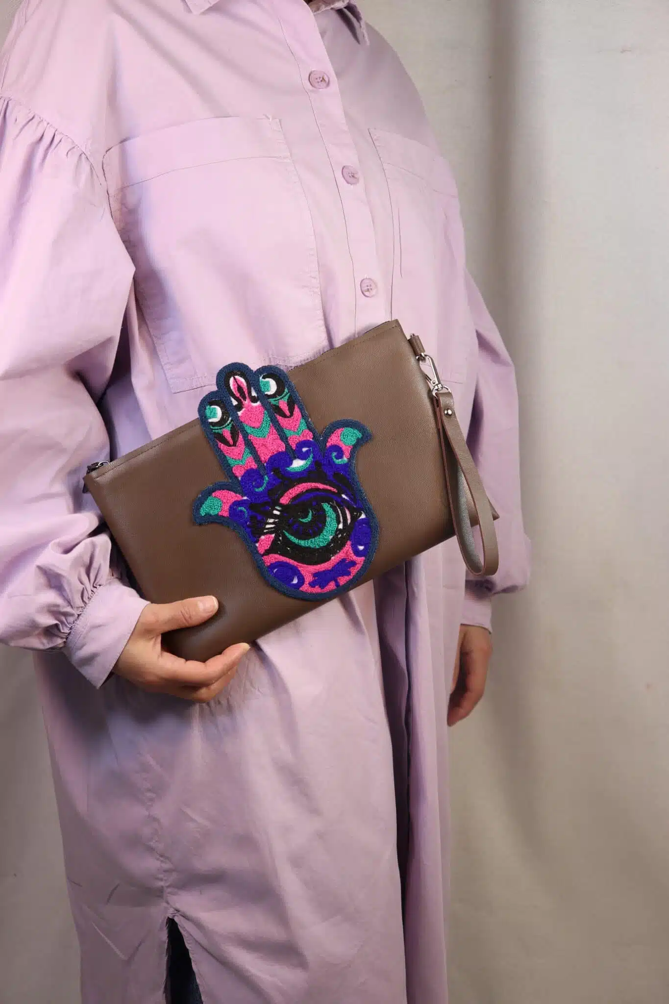 An excellent accessory iftar invitations, at sahour events. Genuine Leather clutch in combination with embroidered fabric in the shape of the palm of the hand.Excellent also as a gift during Ramadan.