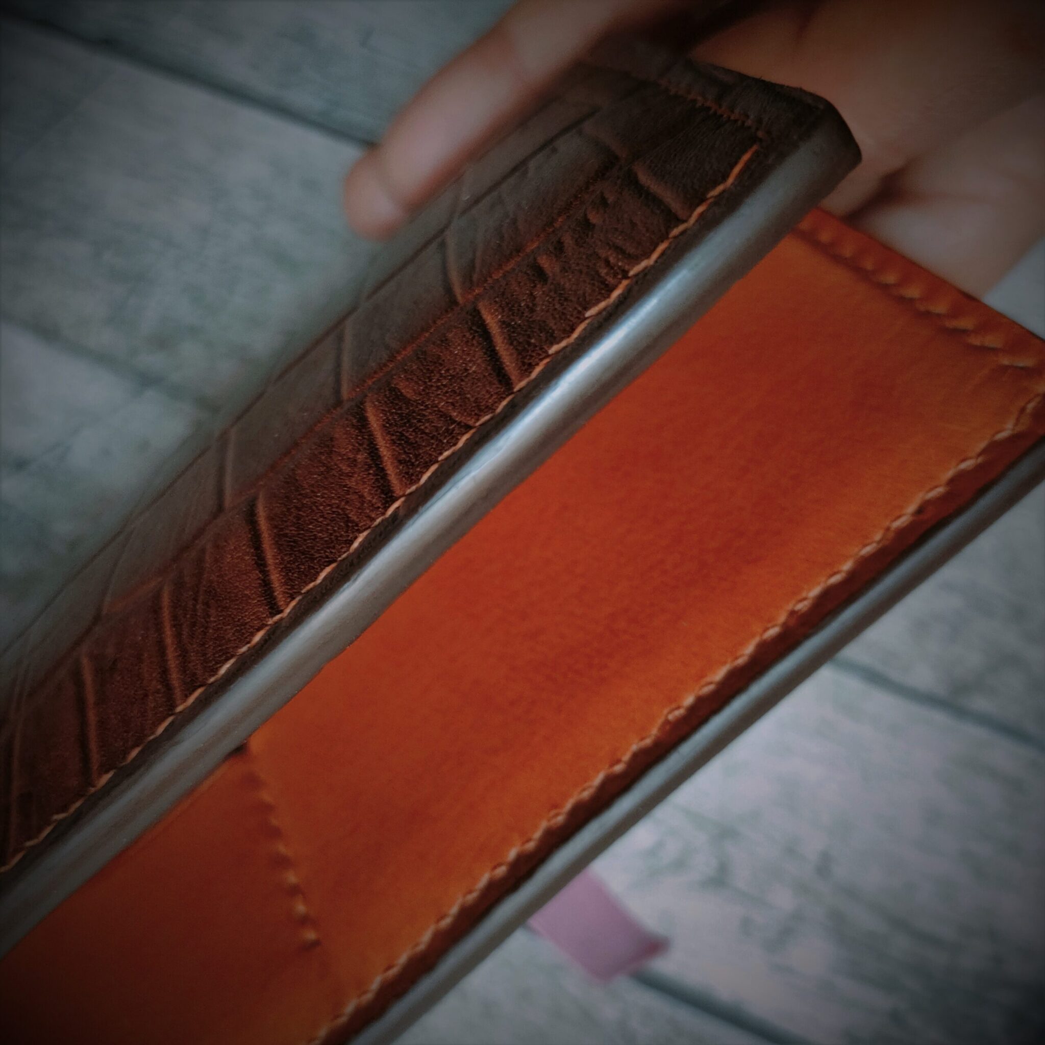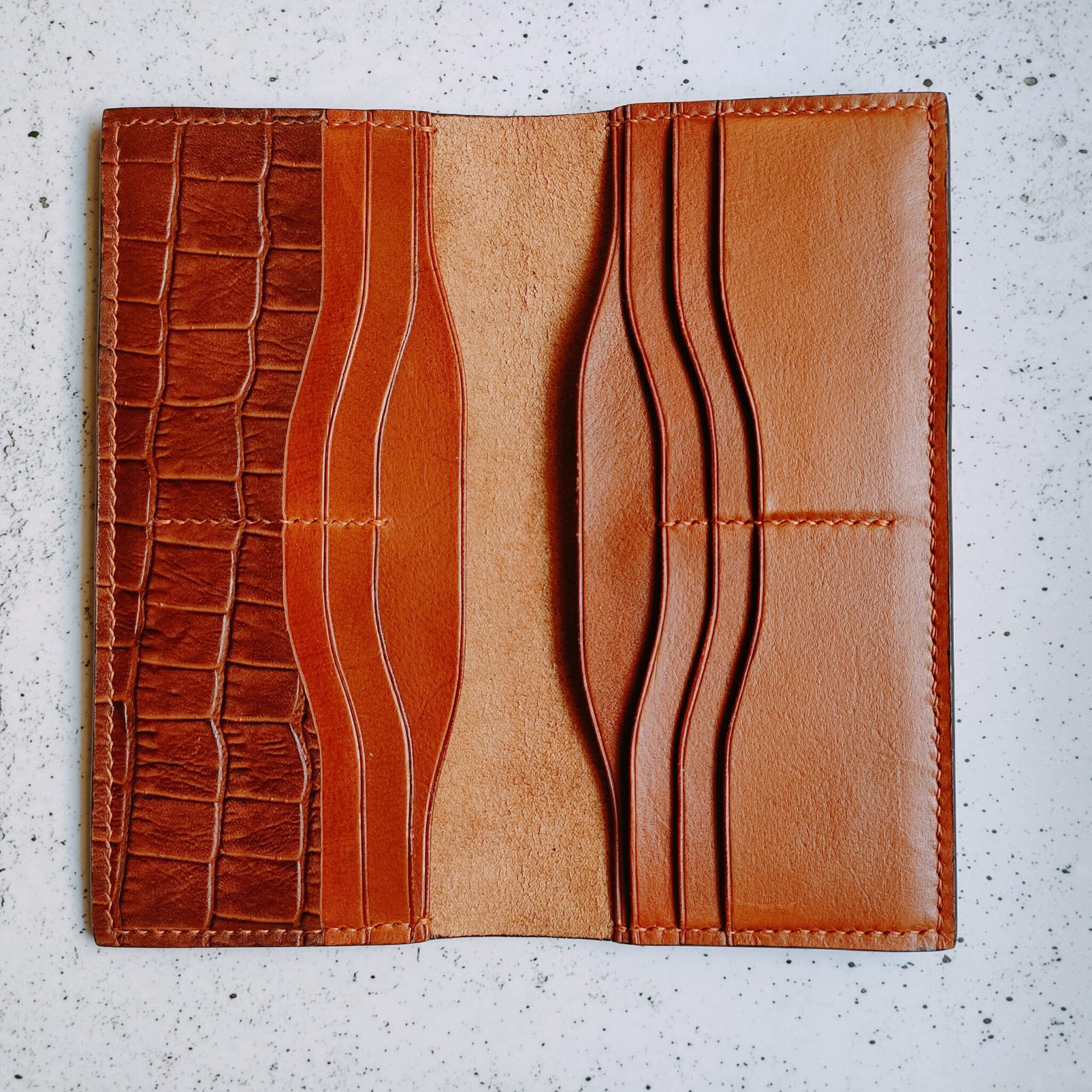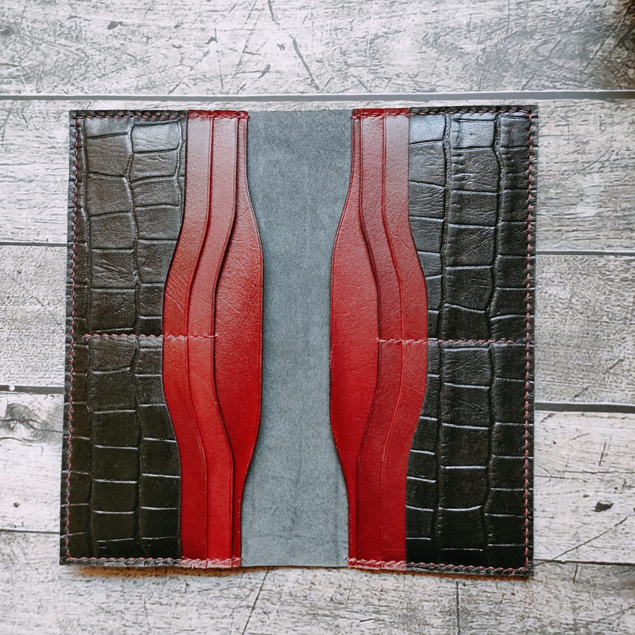 Handmade Genuine Leather Long Wallet with Velvet Bow.