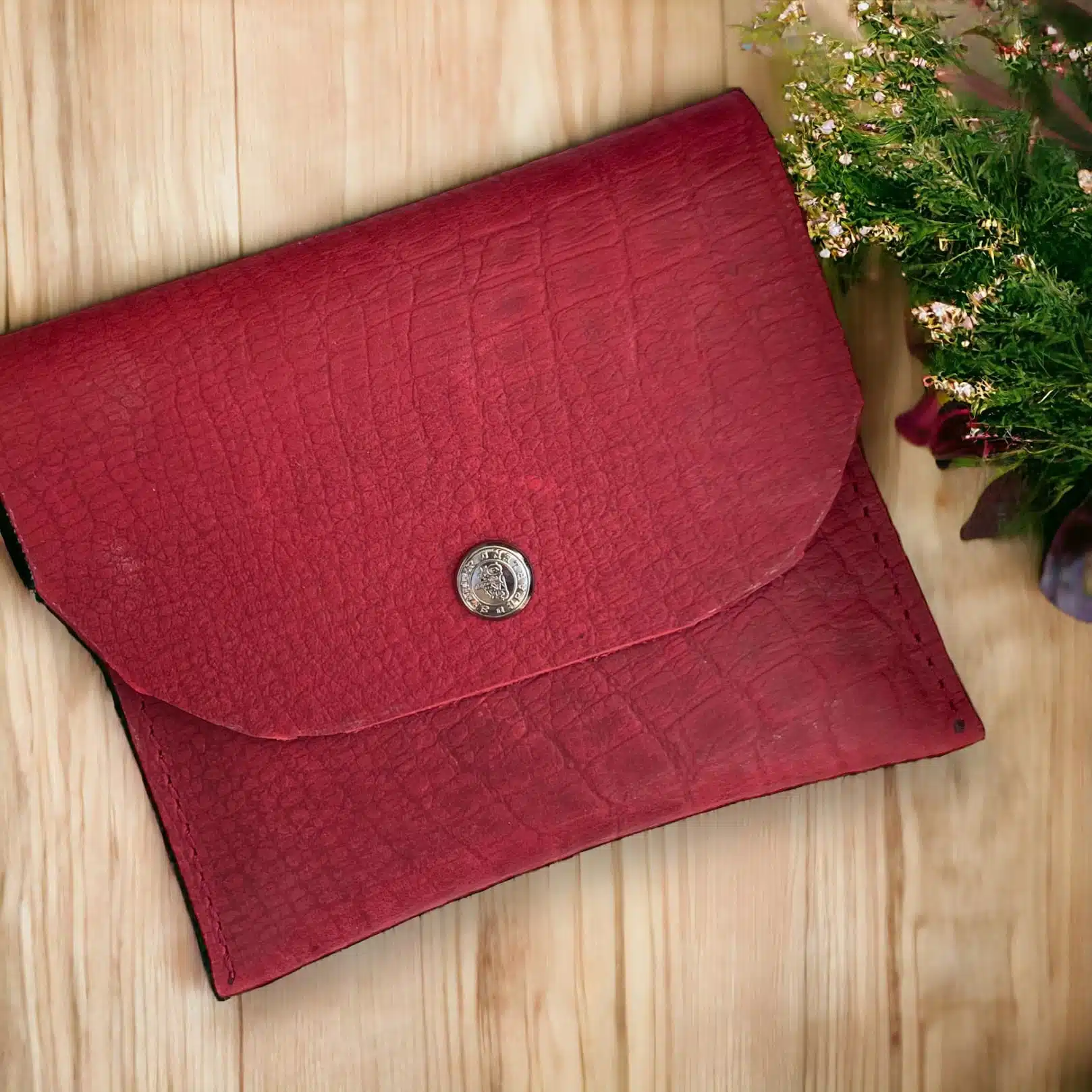 Be the first to review “Genuine leather maroon purse crocodile pattern”
