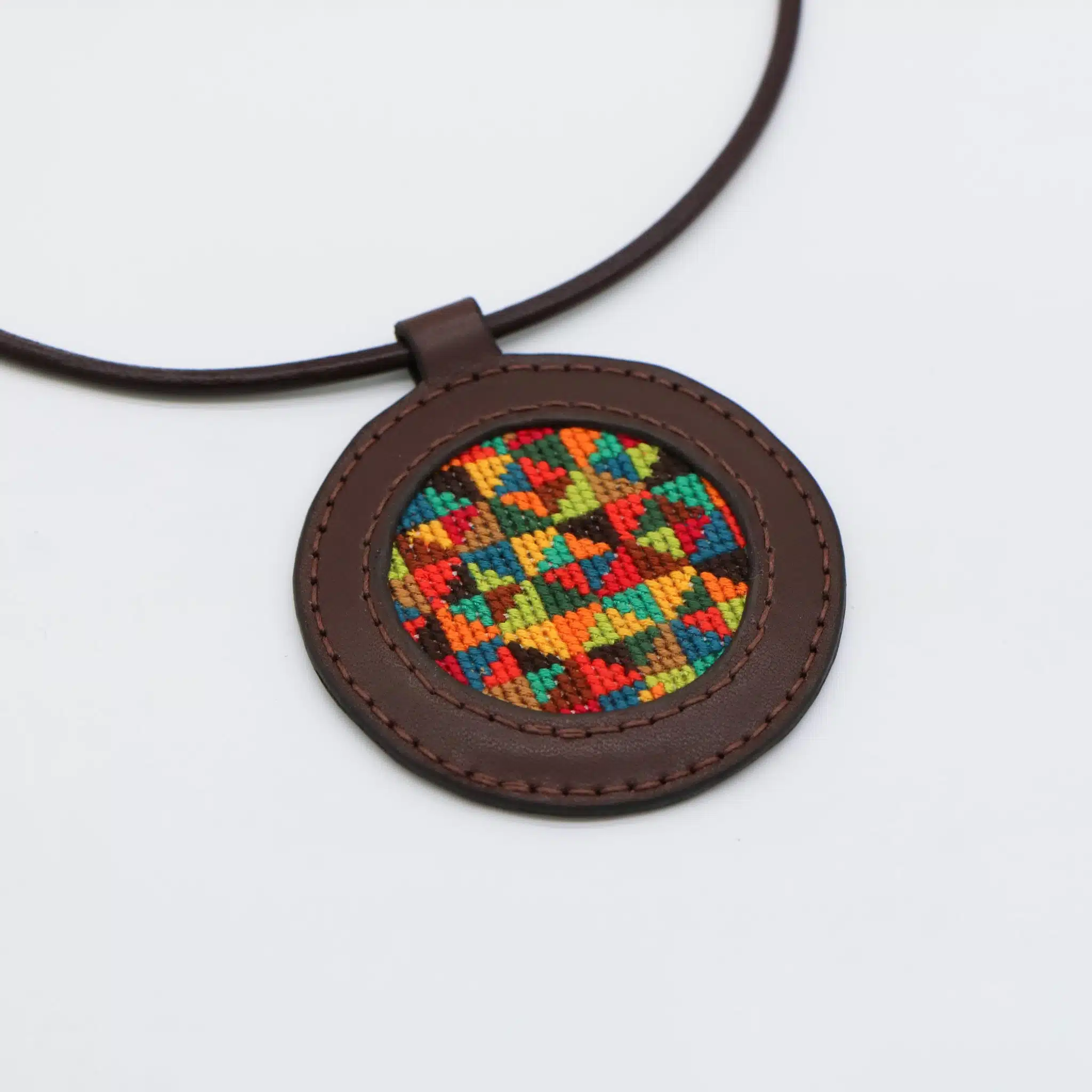 - Handmade Genuine leather necklace with colorful Cross-stitching.