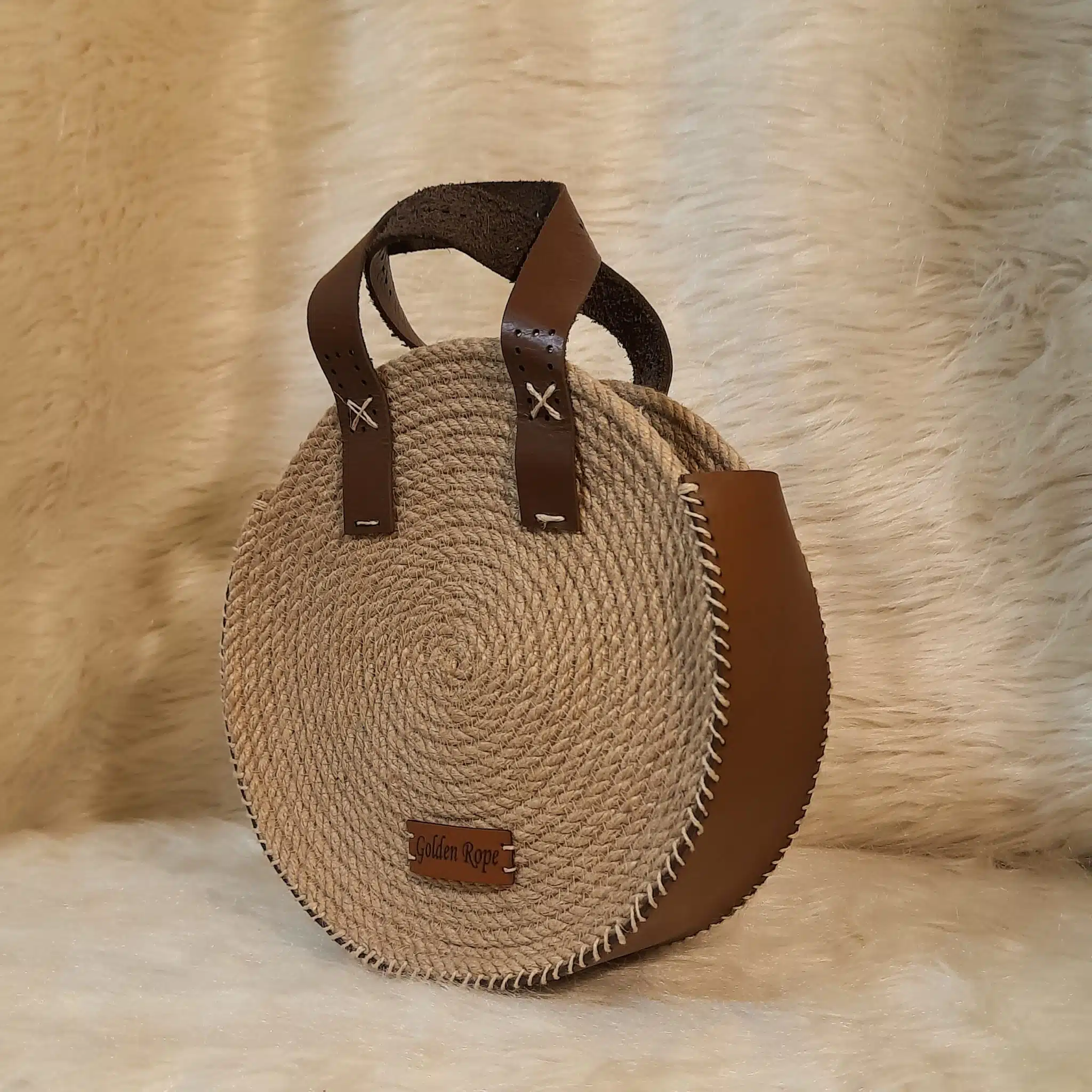 An elegant and unique handmade Jute bag made with Genuine leather and natural jute rope.