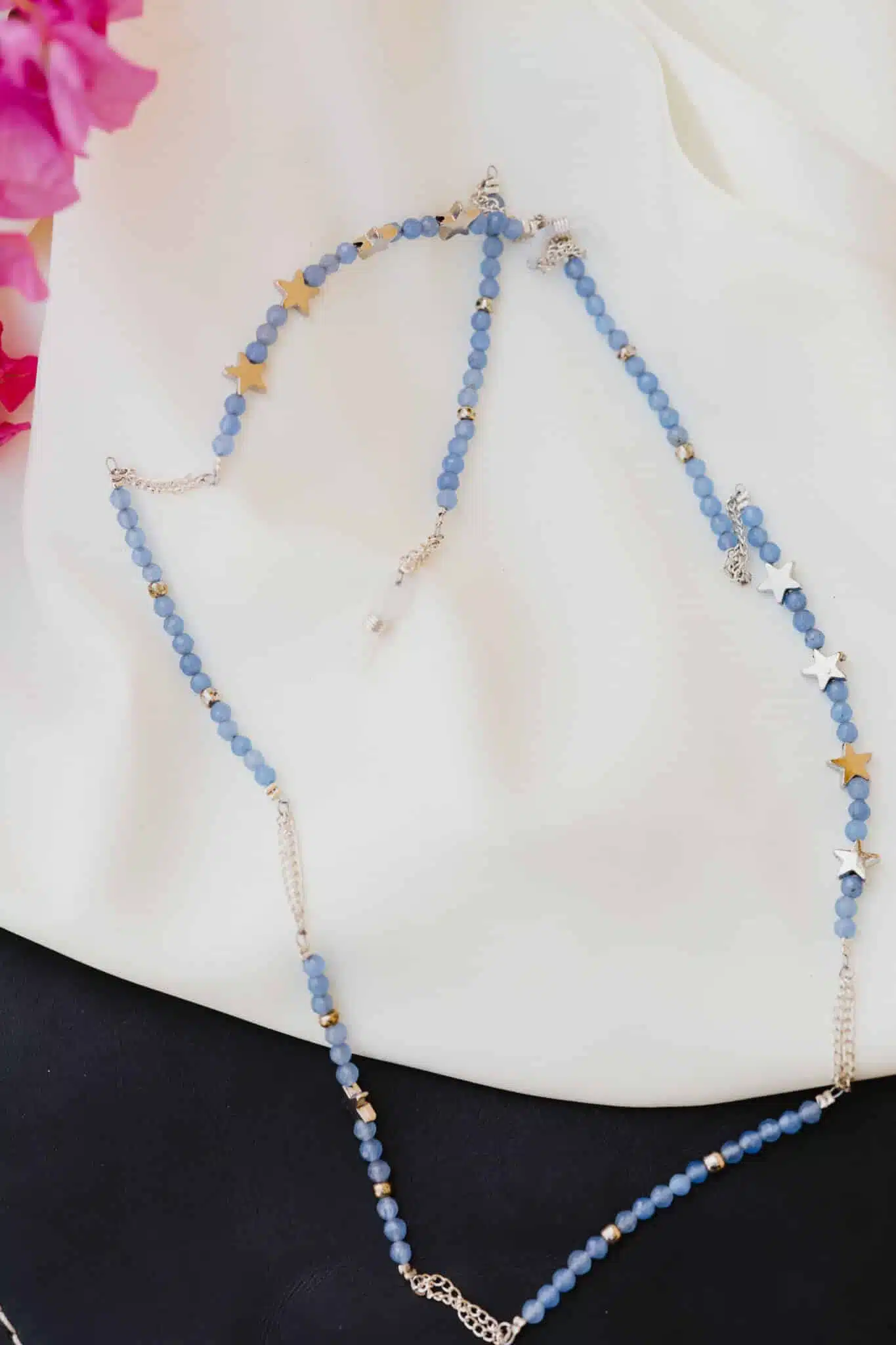 This glasses cord is made of Agate Hematite Stainless steel
