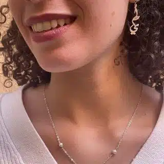 A randomly hexagonal shaped earrings, teal color with a silver glow