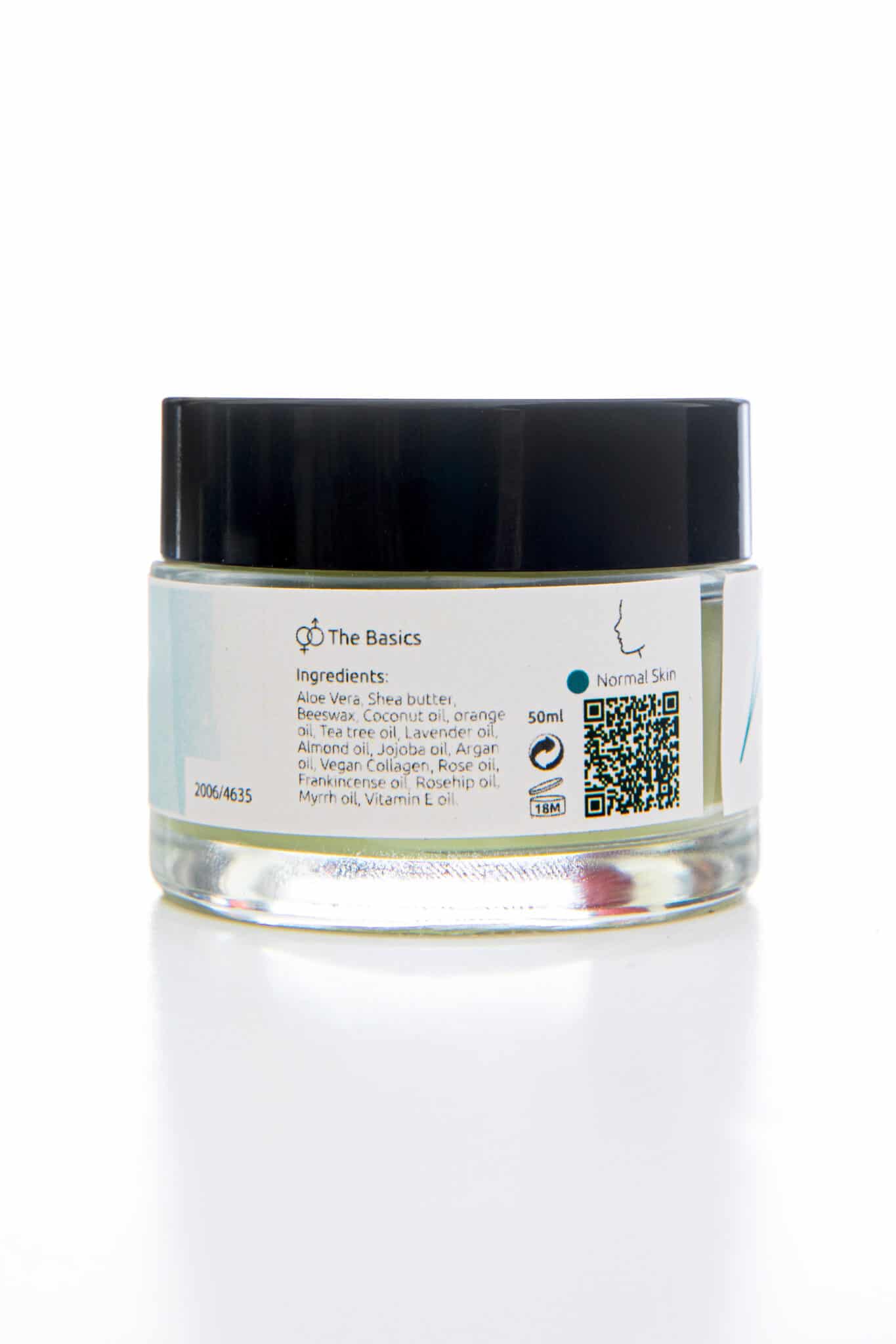 Aloe Vera, Shea butter, Beeswax, Coconut oil, Orange oil, Tea tree oil, Lavender oil, Almond oil, Jojoba oil, Argan oil, Vegan Collagen ,Rose oil,Frankincense oil, Rosehip oil, Myrrh oil, Vitamin E oil.
