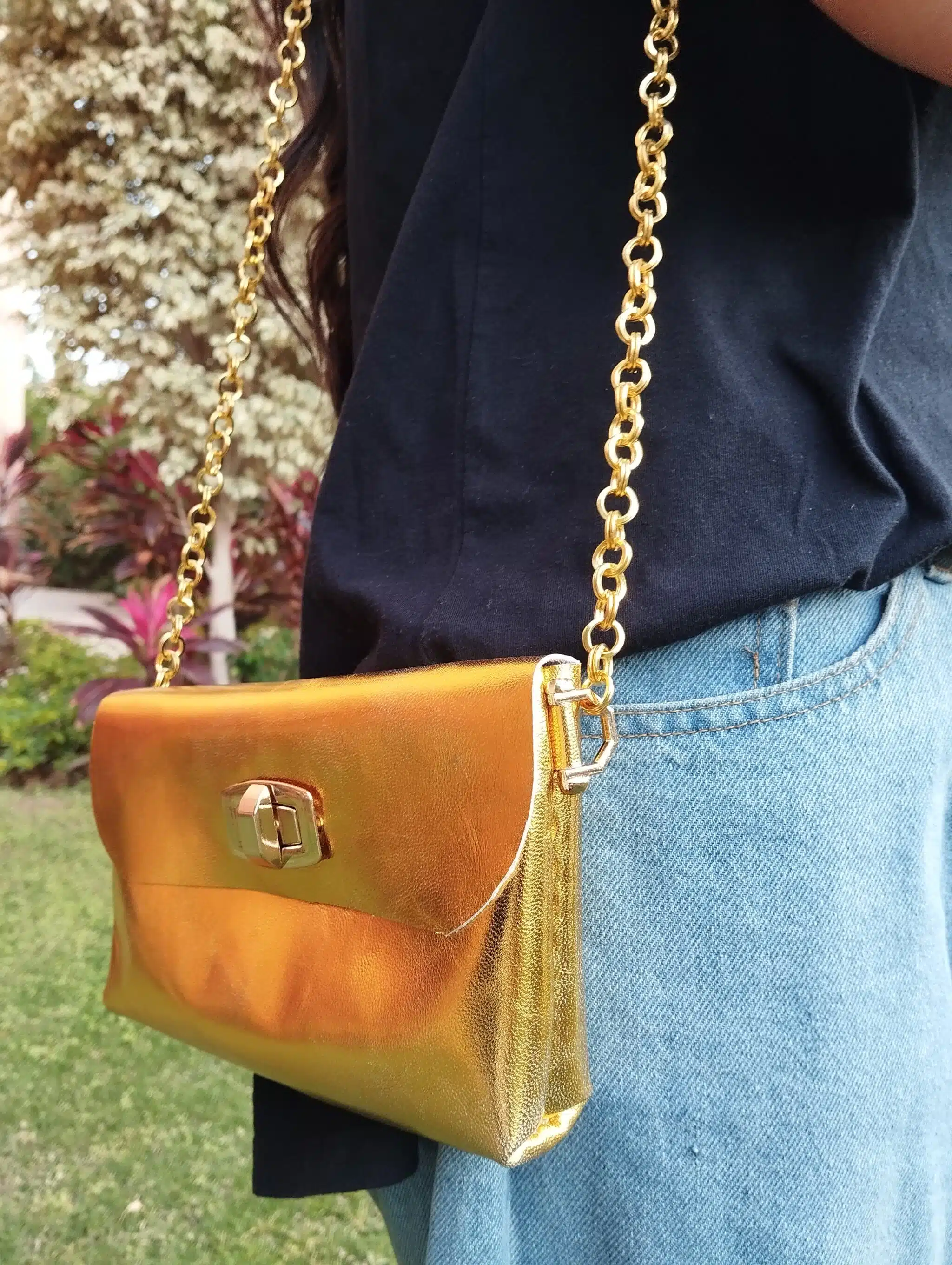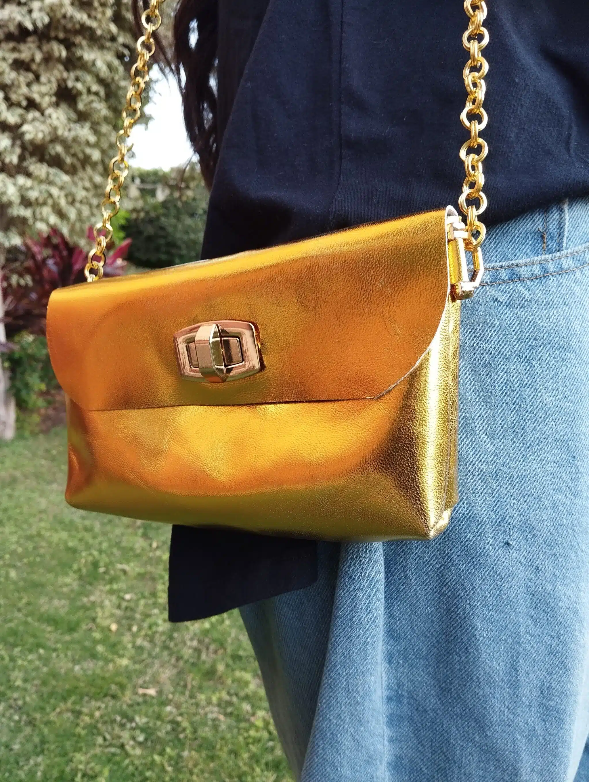 شنطه جلد طبيعي هاند ميد لون ذهبي